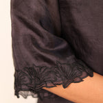 - Floral embroidery on the hemline and sleeves