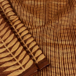 Brown block printed supernet saree