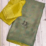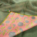 - Flip concept saree with plain outer layer and hidden floral print inside, revealed beautifully when the pallu is flipped.