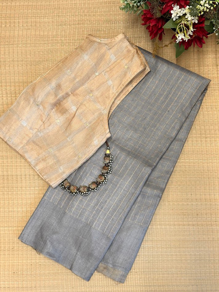 Maya Zari Checks Tussar Saree
