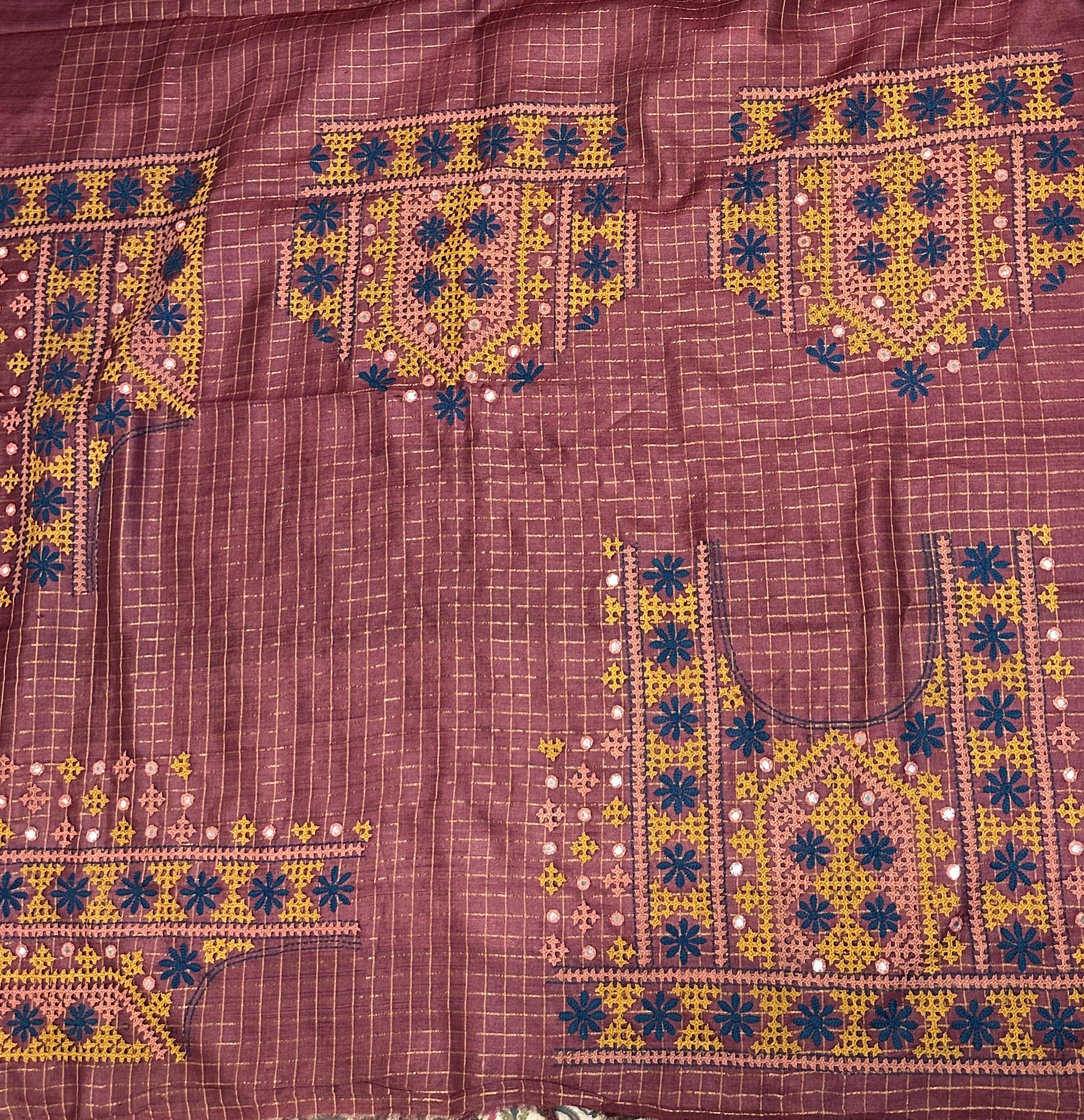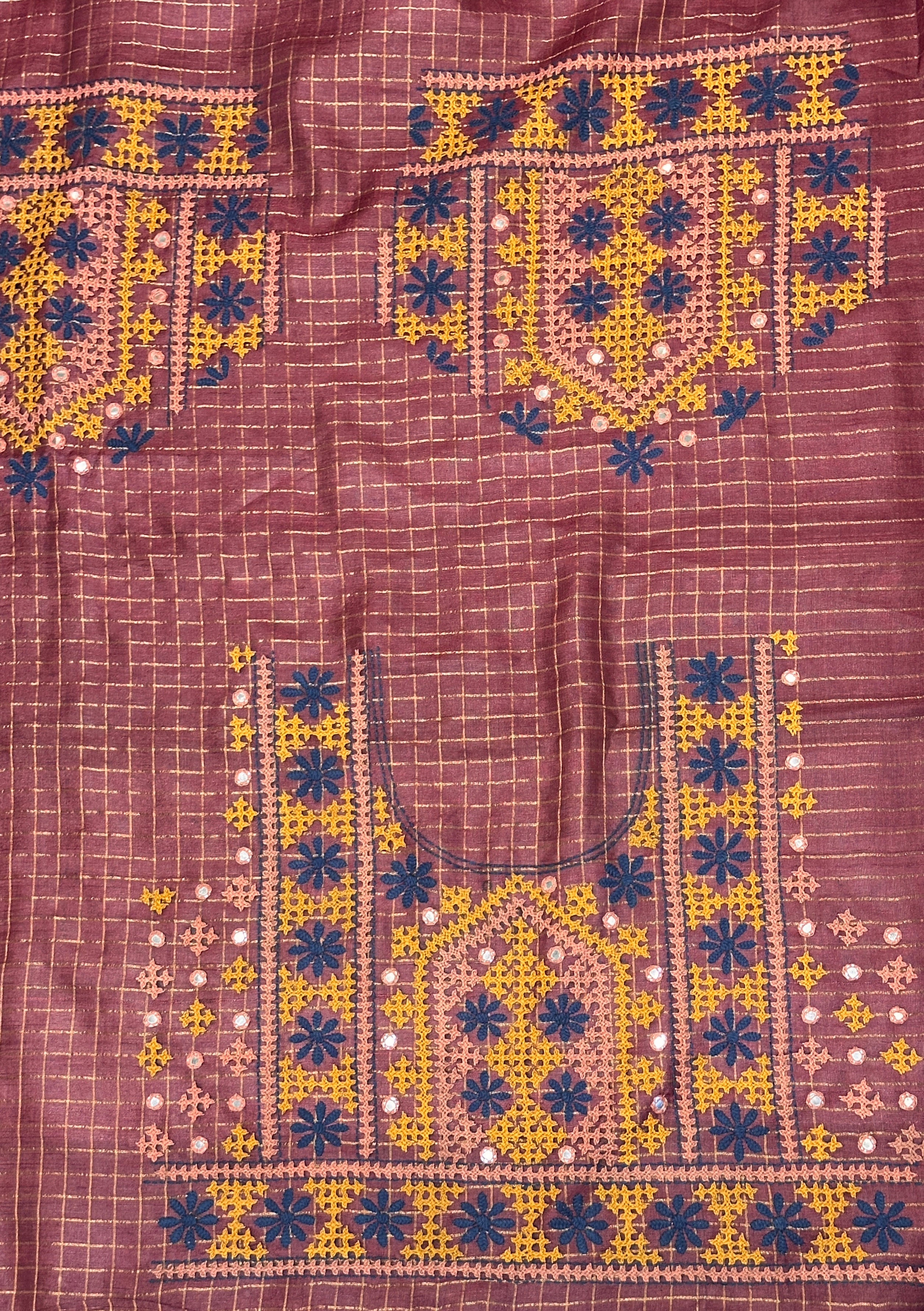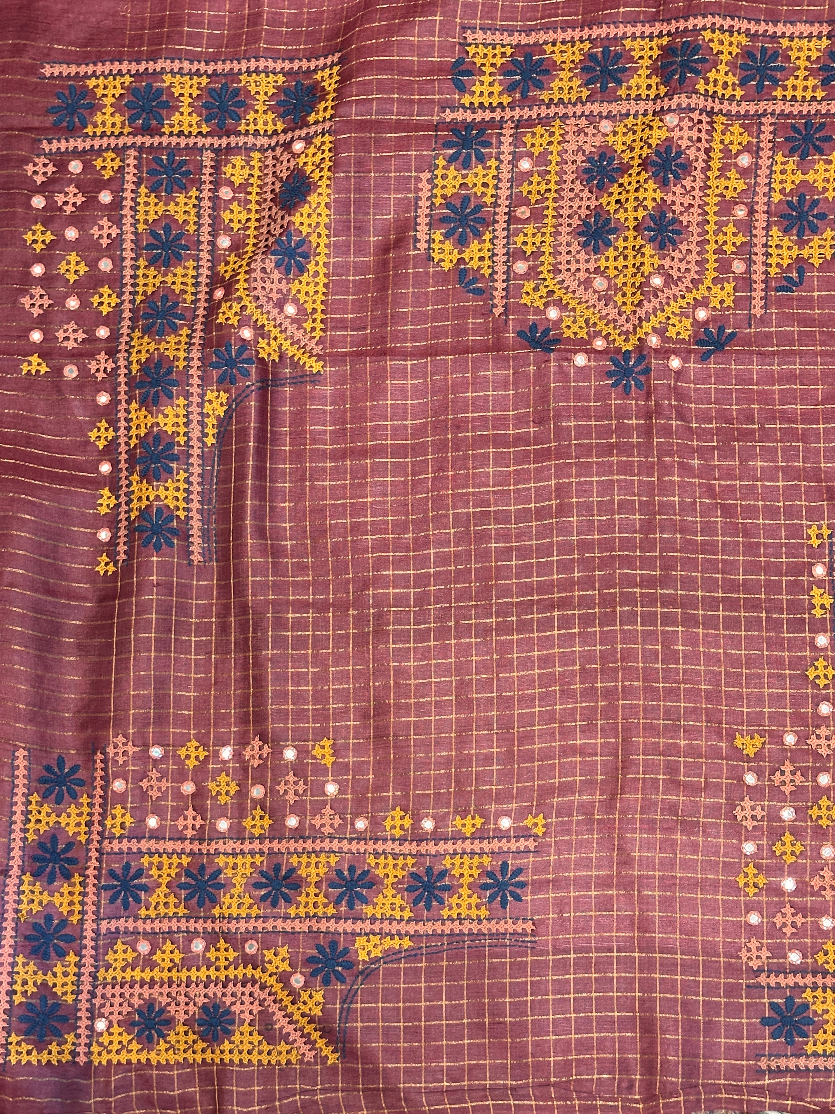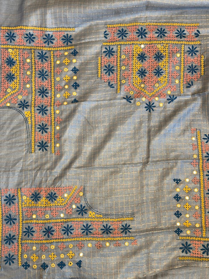 • Blouse: Matching blouse with intricate Kutch embroidery.