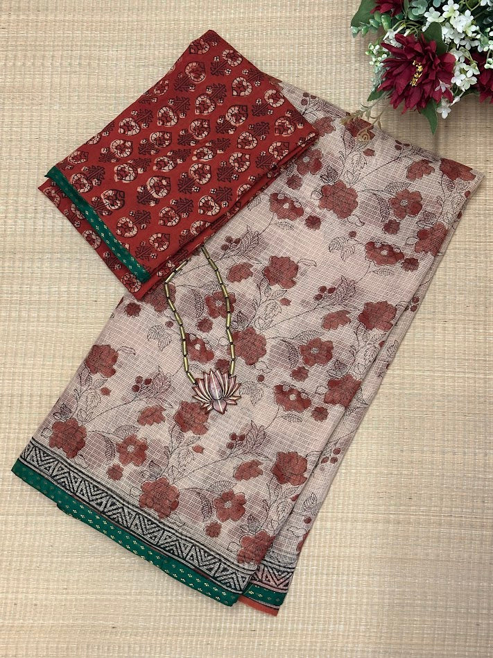 Mishrita Terracotta Floral Kota Saree
