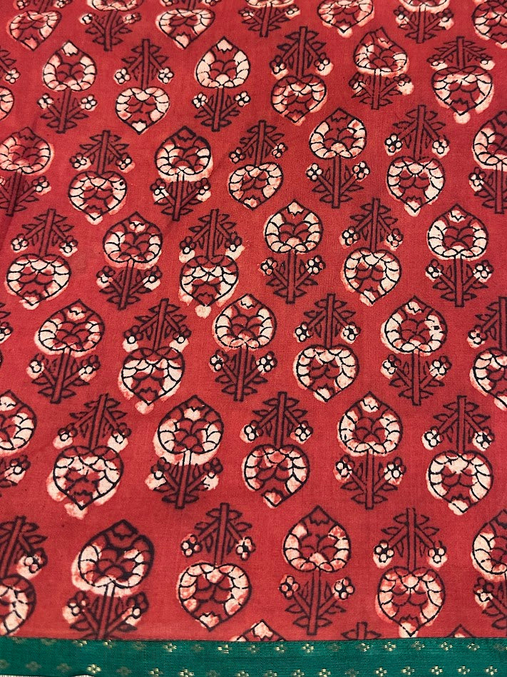 Comes with a matching printed cotton blouse, detailed with the same pure Kanchipuram silk border for a cohesive look.