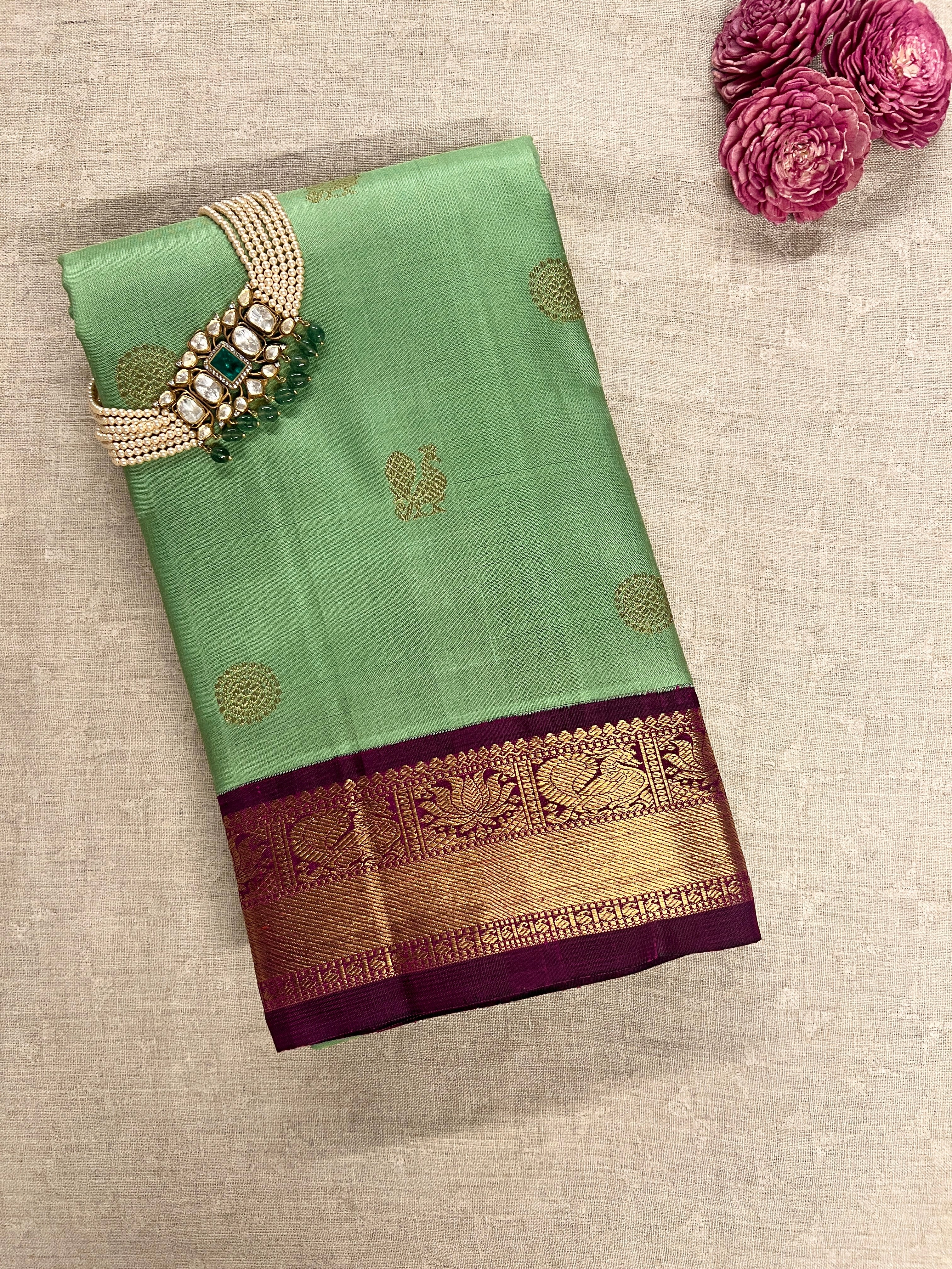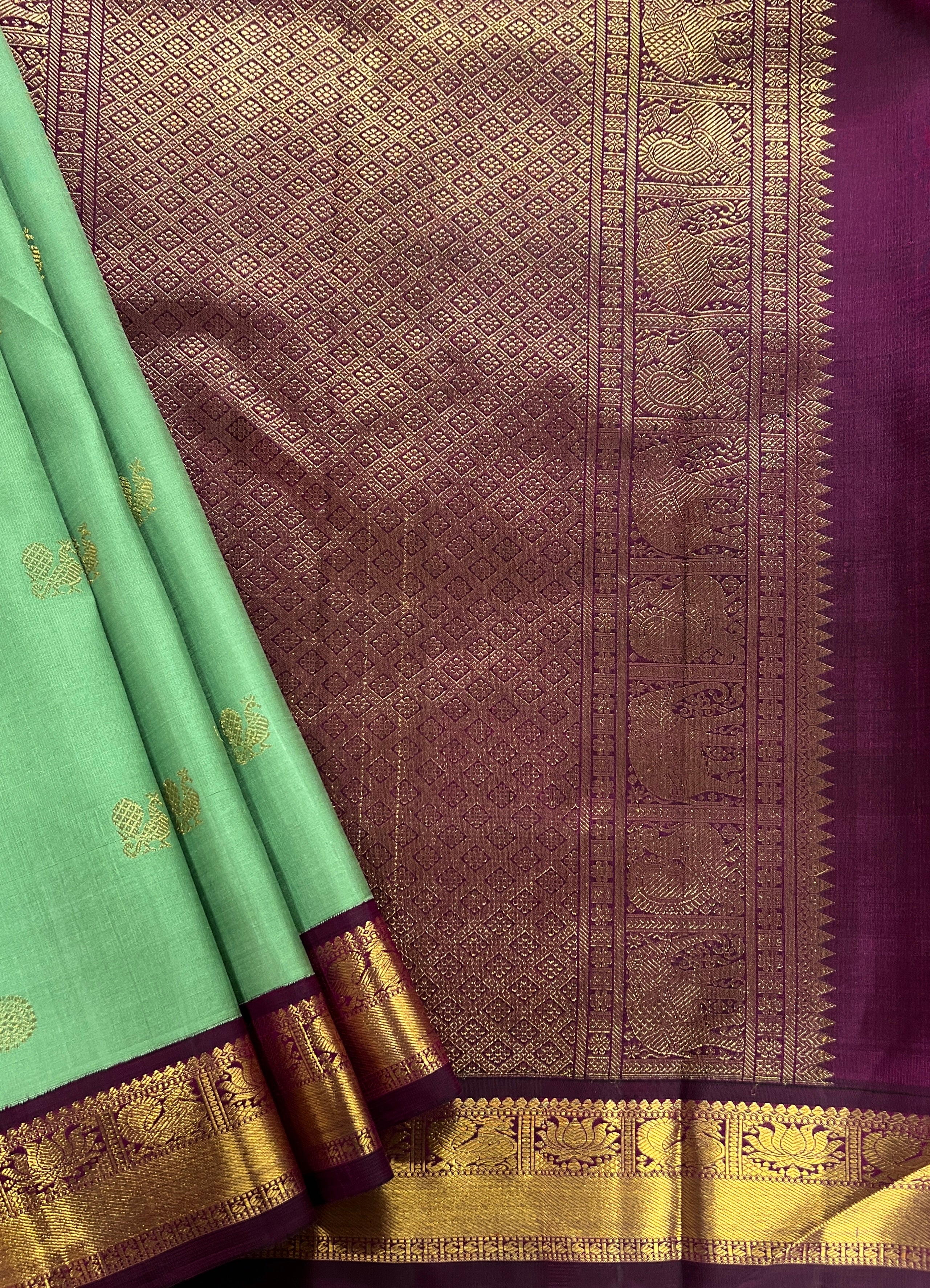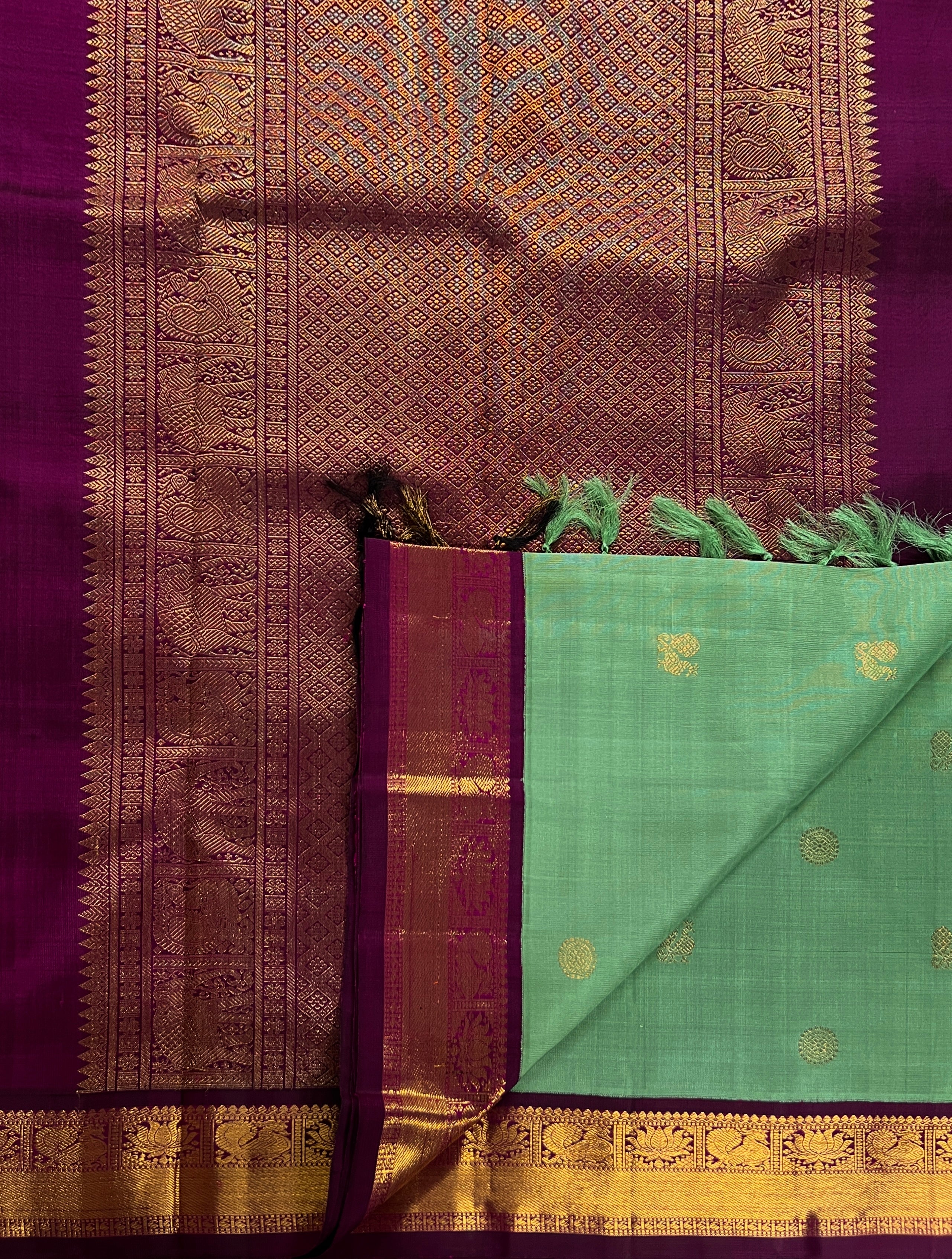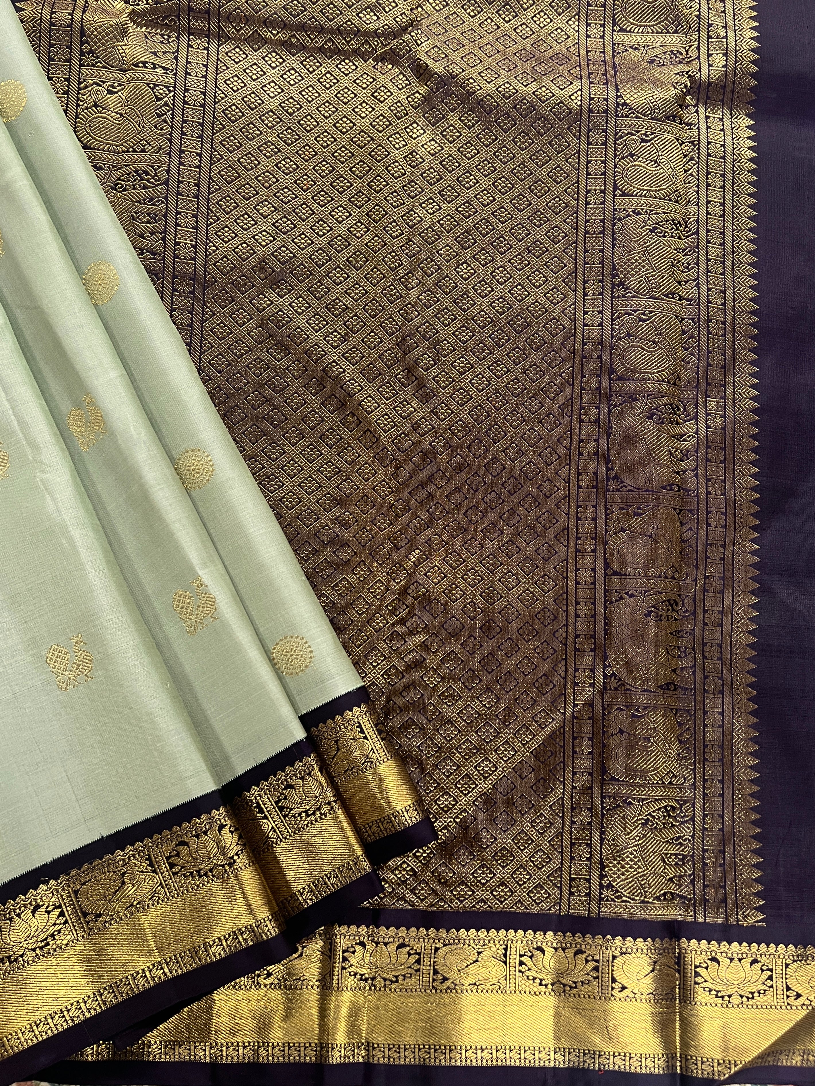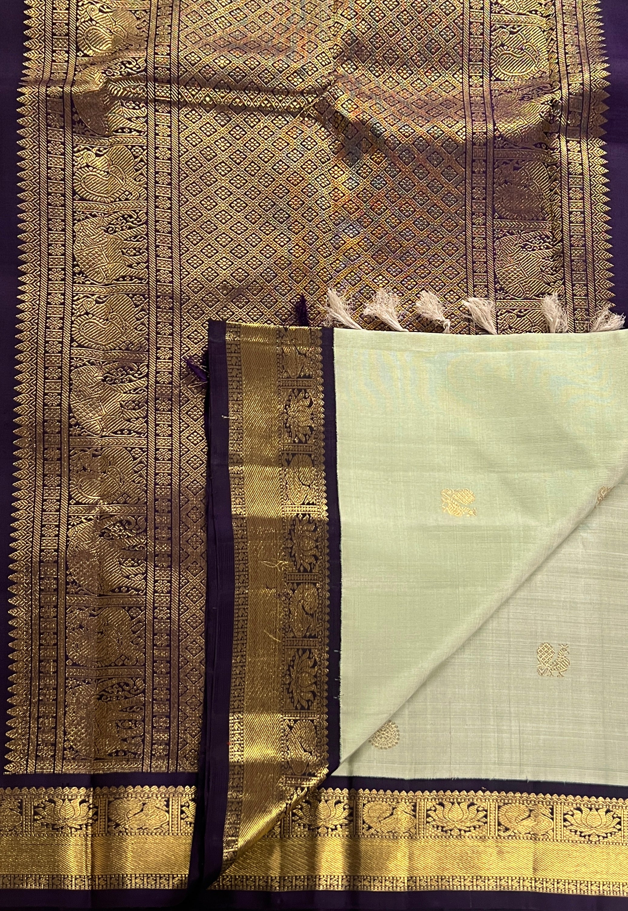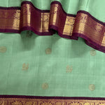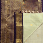 - Features a richly woven border and is paired with a contrasting pallu and blouse.