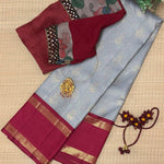 Sumangala Zari Checks Kanchi Silk Saree - Grey