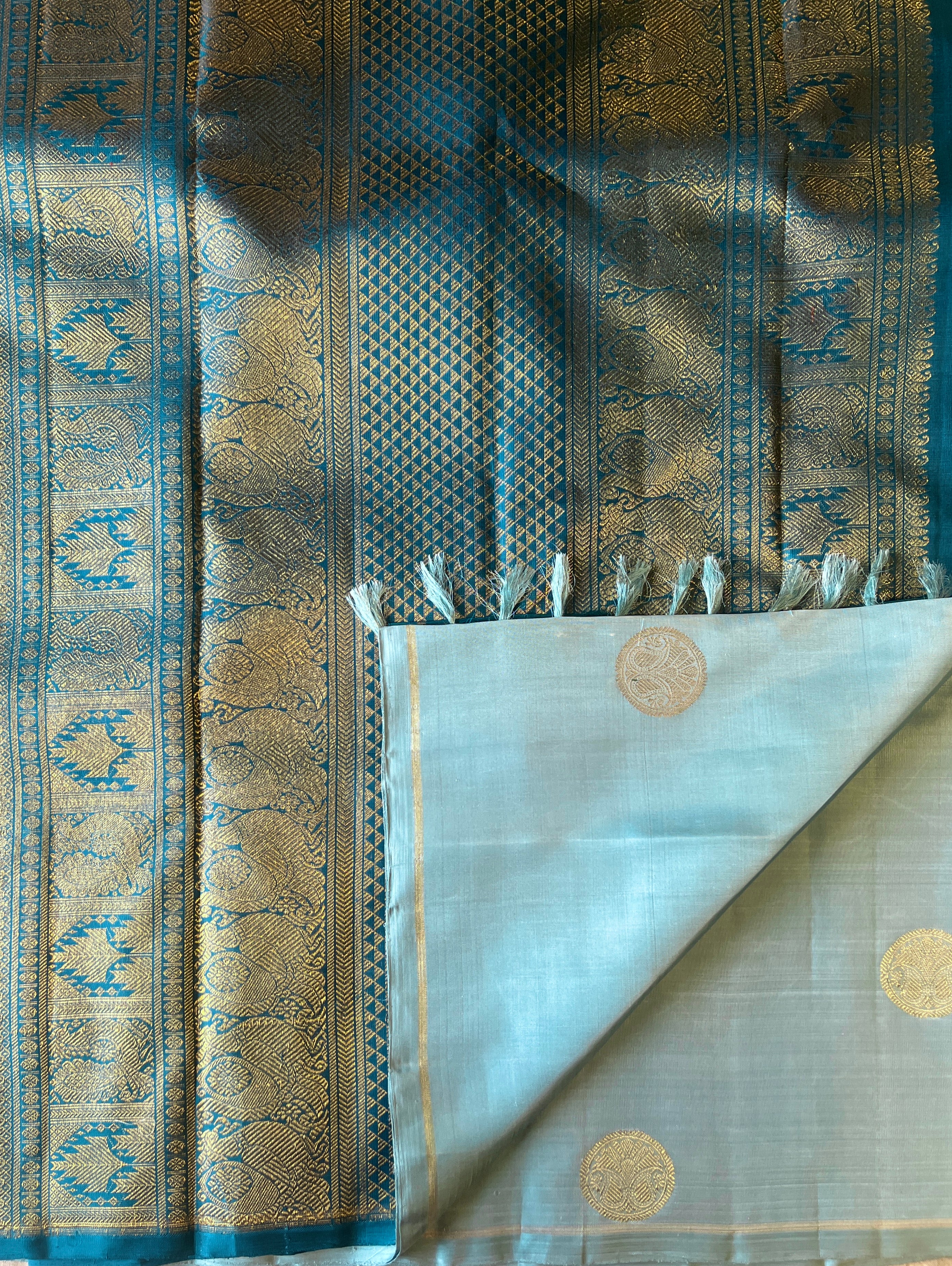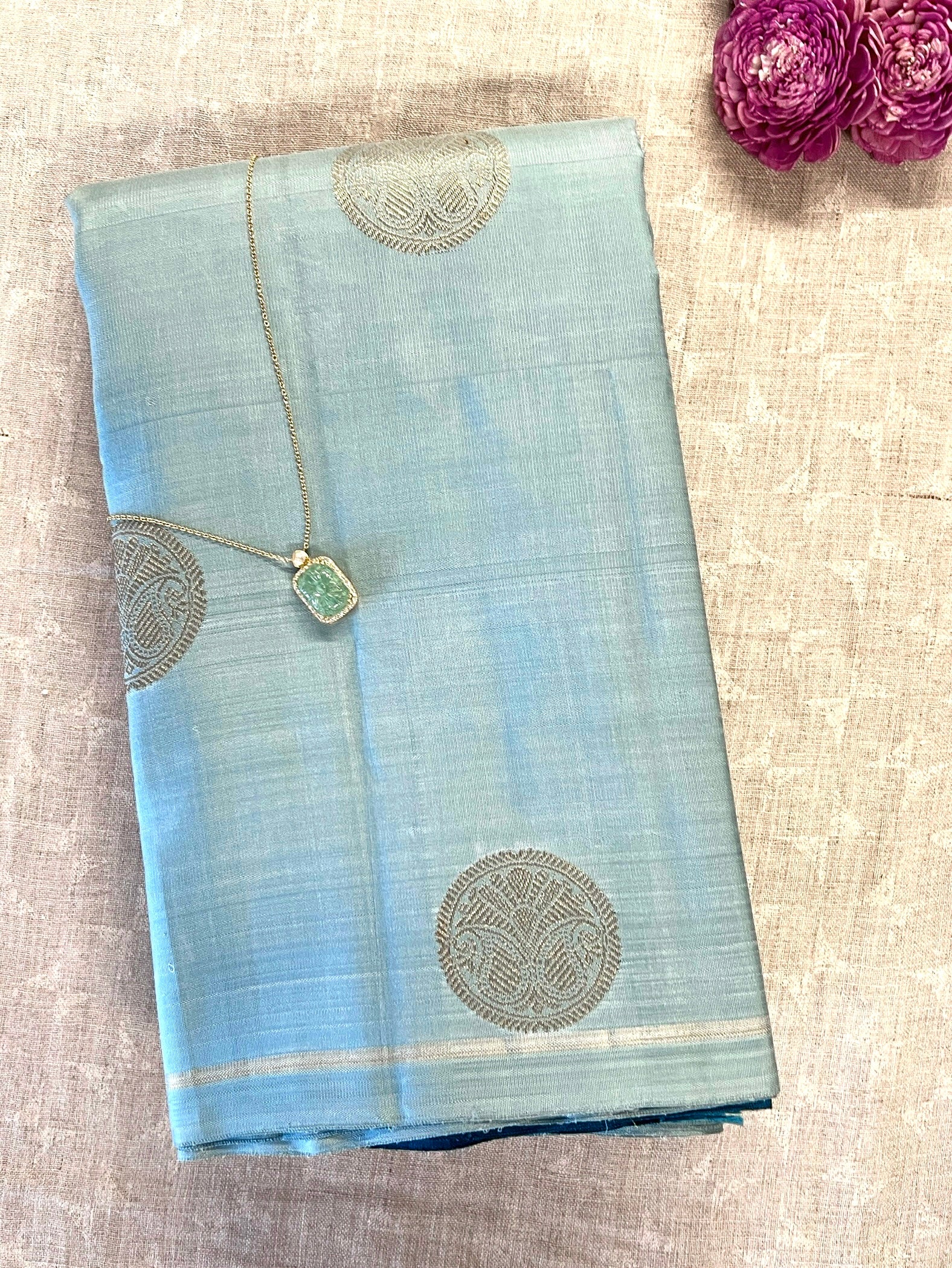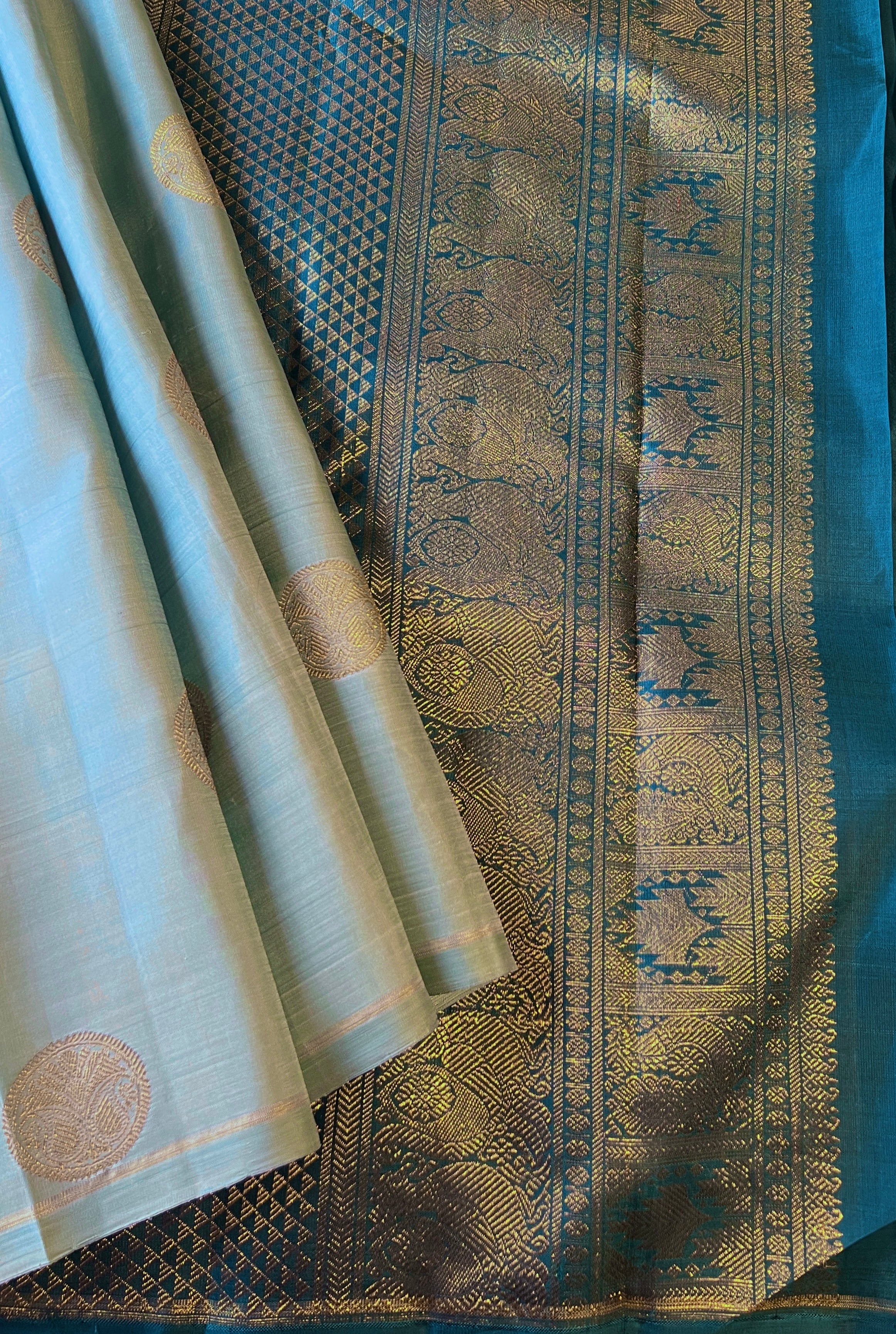 - Pallu and Blouse in contrasting colours to the saree, creating a striking and elegant look.