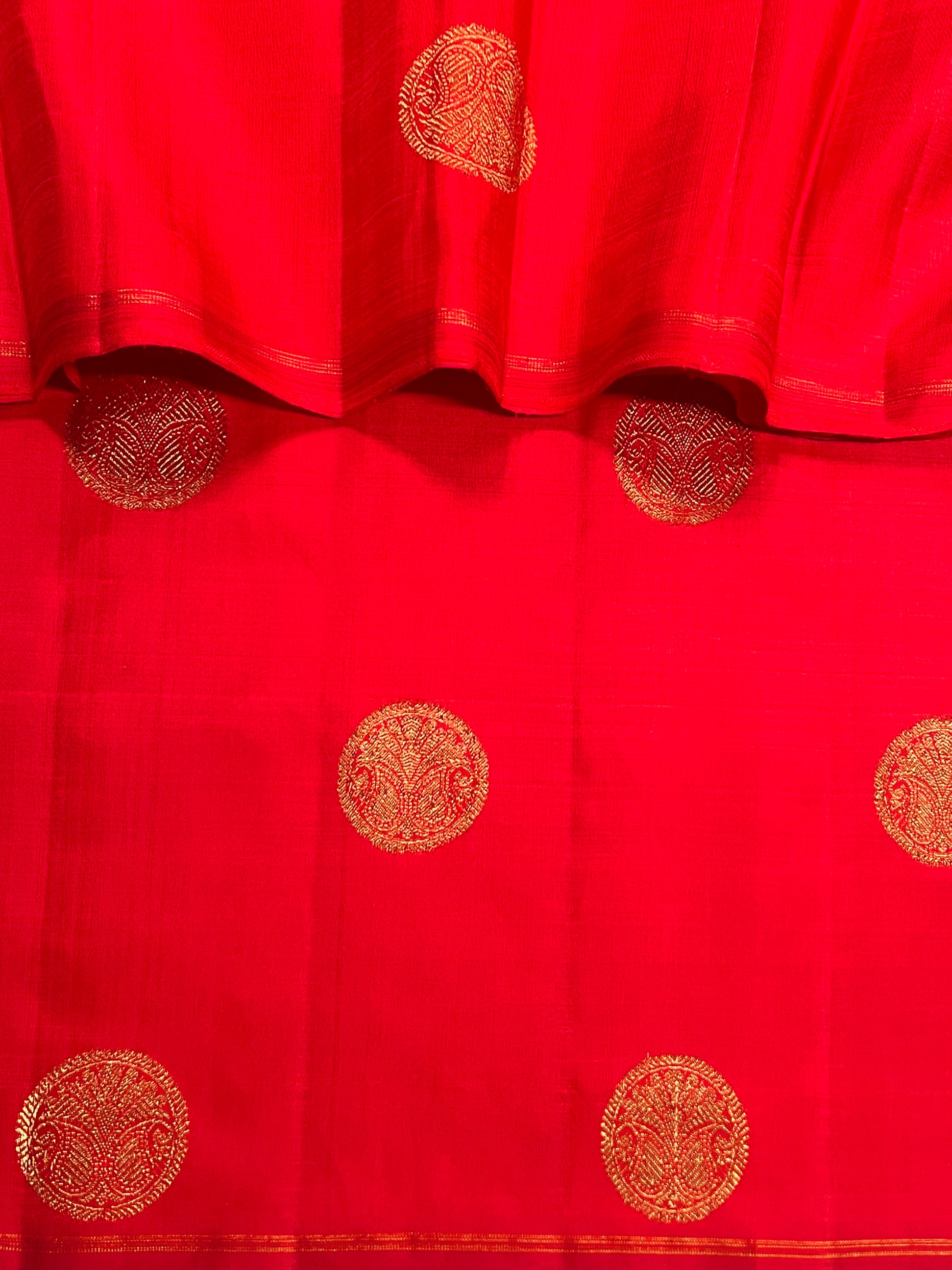 - Intricate and classical Vattam Butta Saree with Intricate Mango and Poo Design on the body.