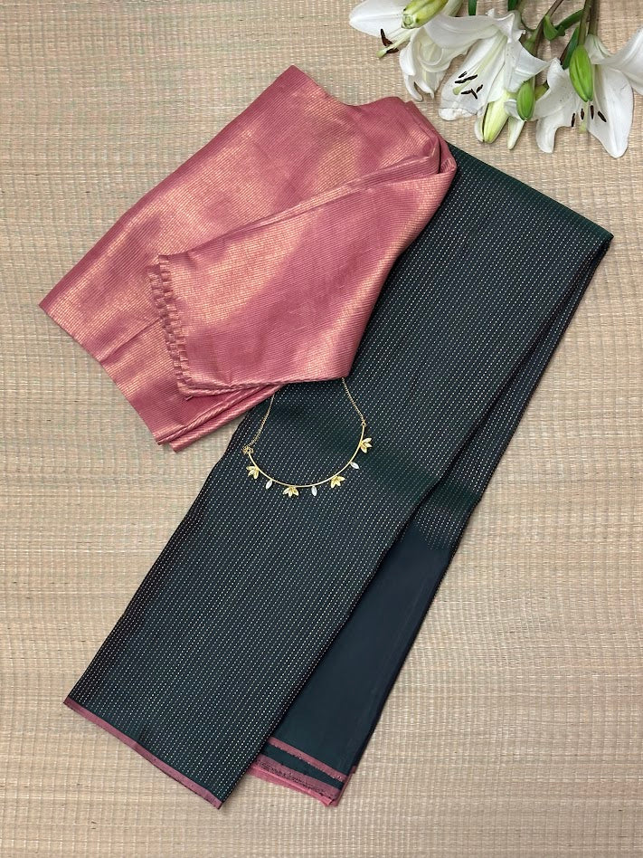 Nihira Temple Kanchipuram Silk Saree - Dark Green