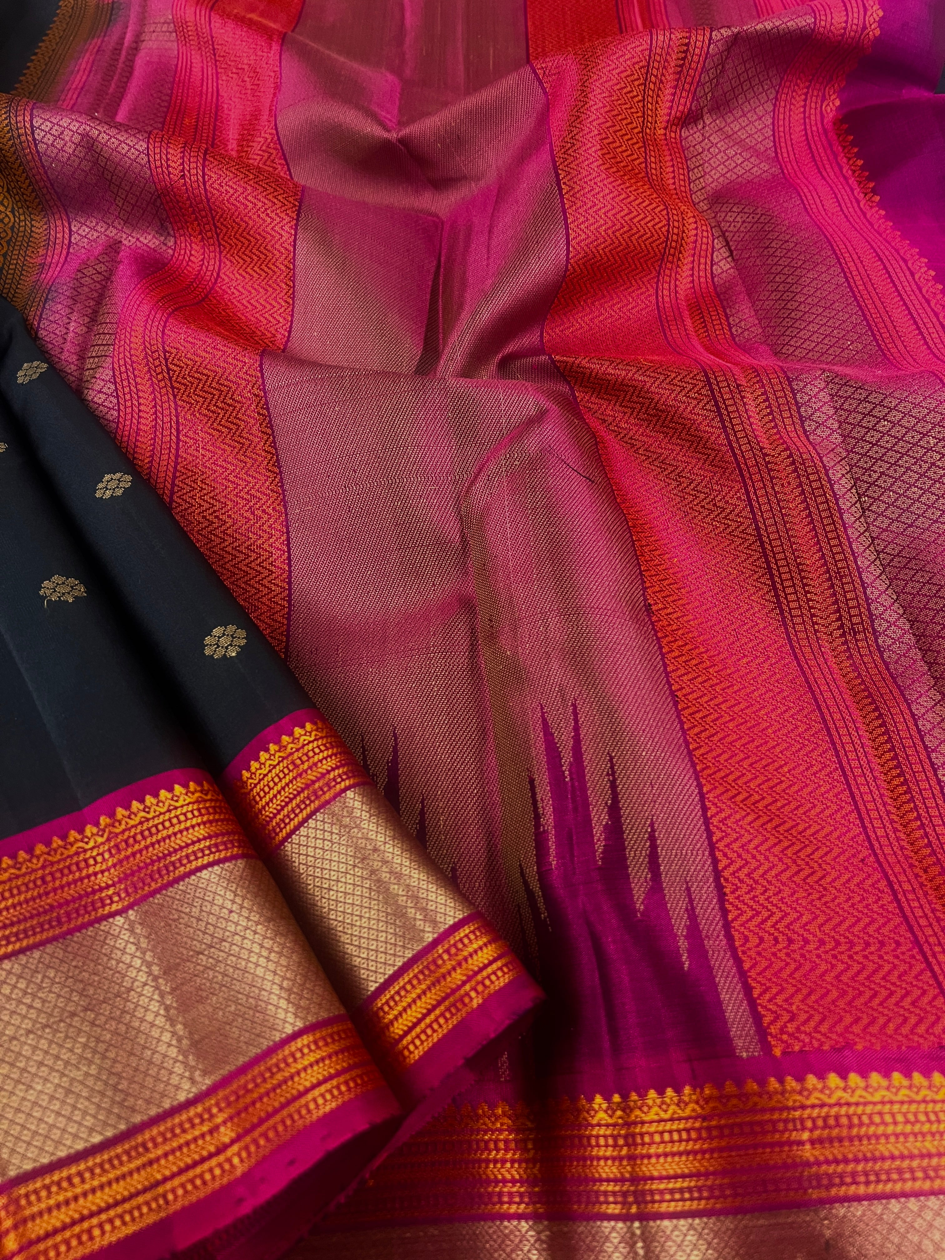 Mila triangles kanchipuram silk saree with gold border