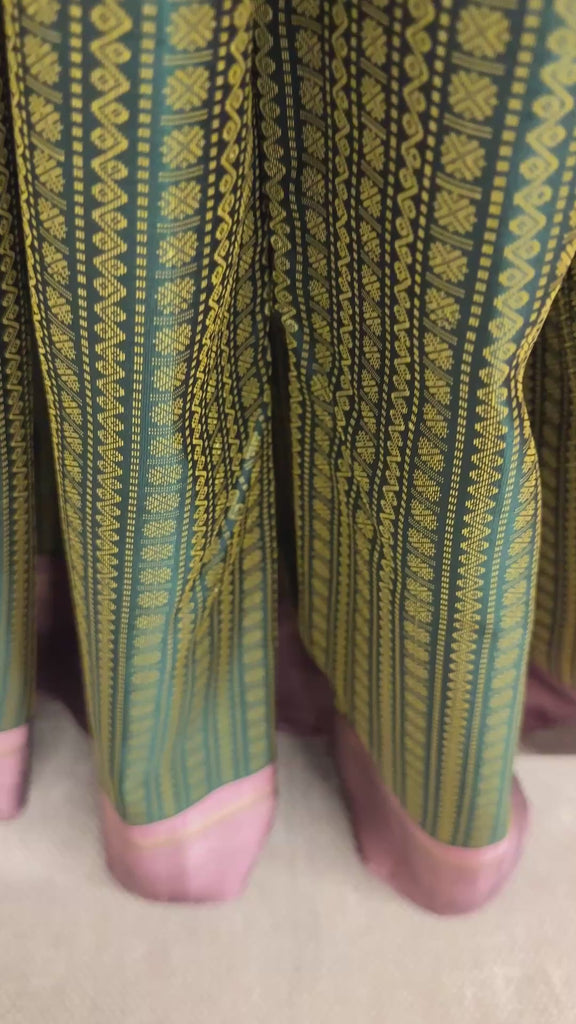 Tejasvi green dusty pink thread woven Kanchipuram silk saree