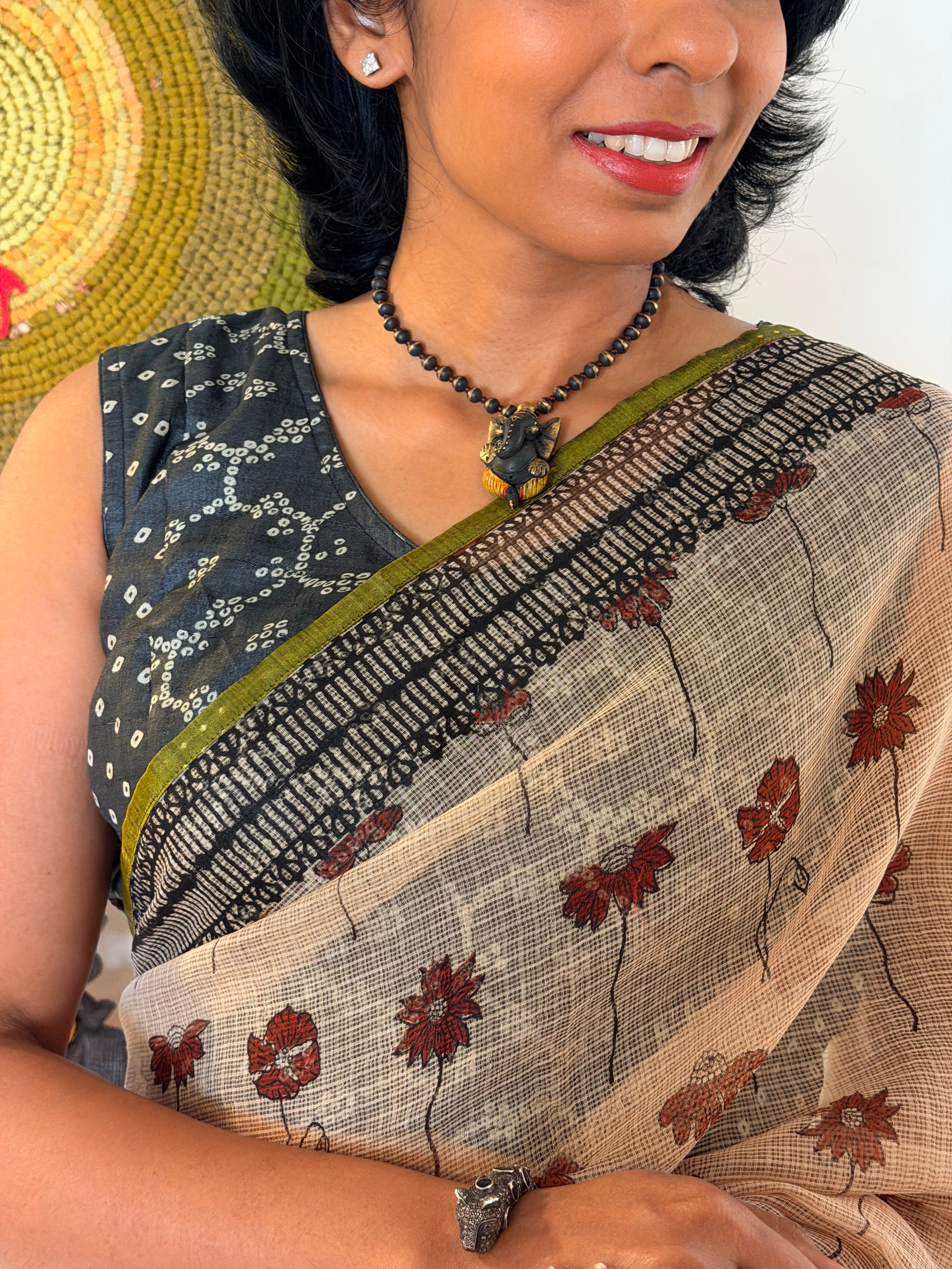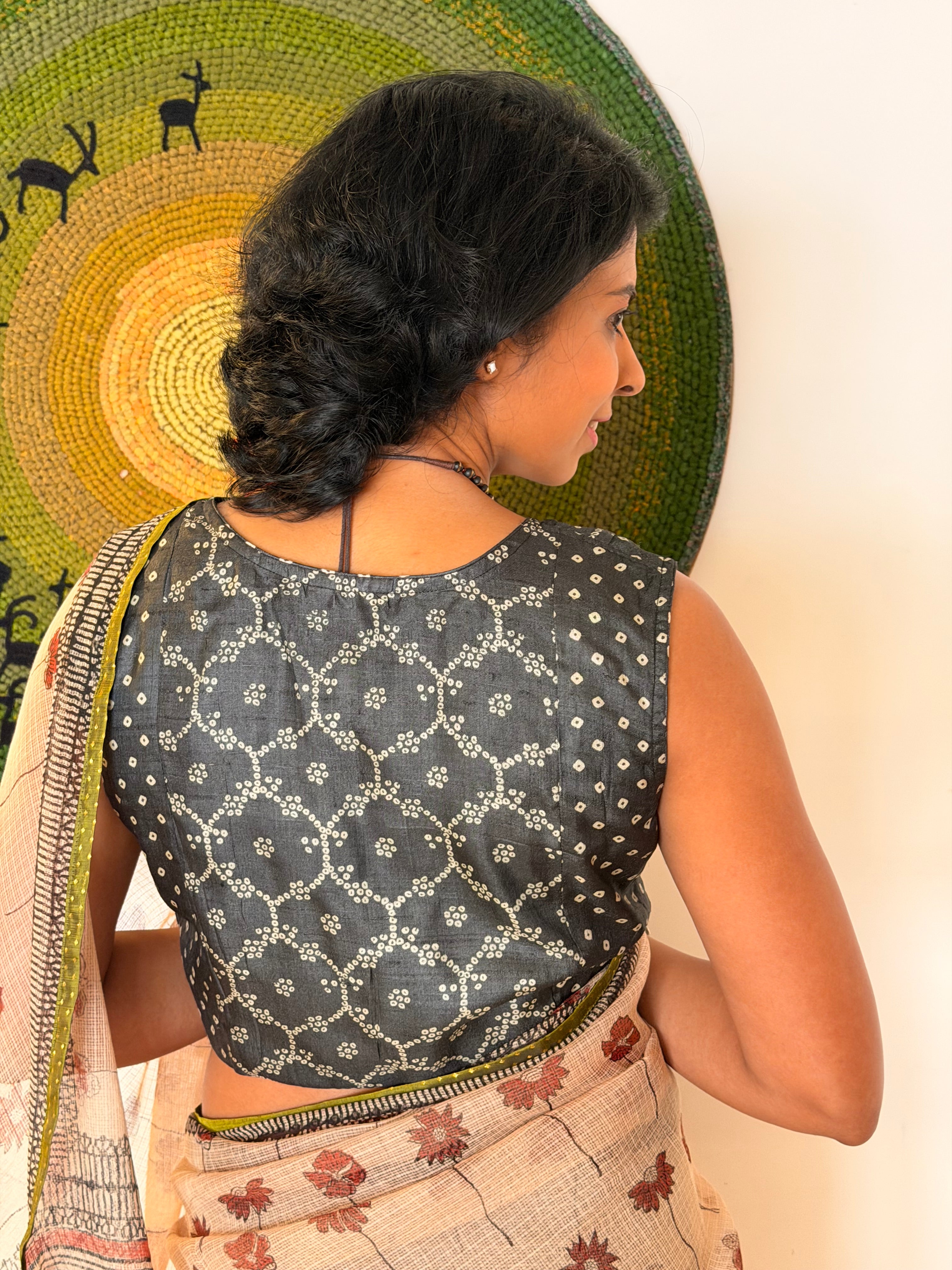 Tussar Bandhani Sleeveless Blouse - Black