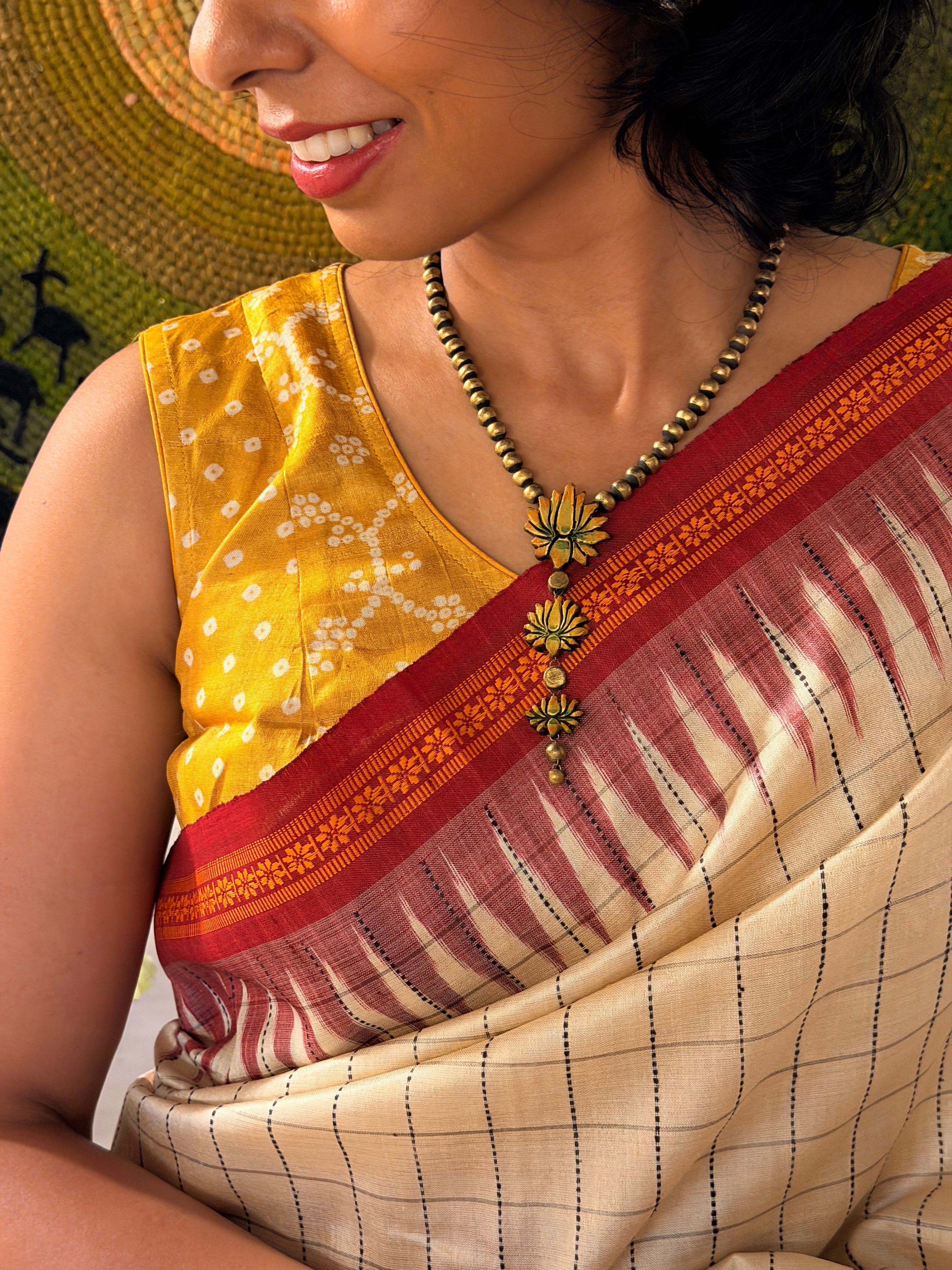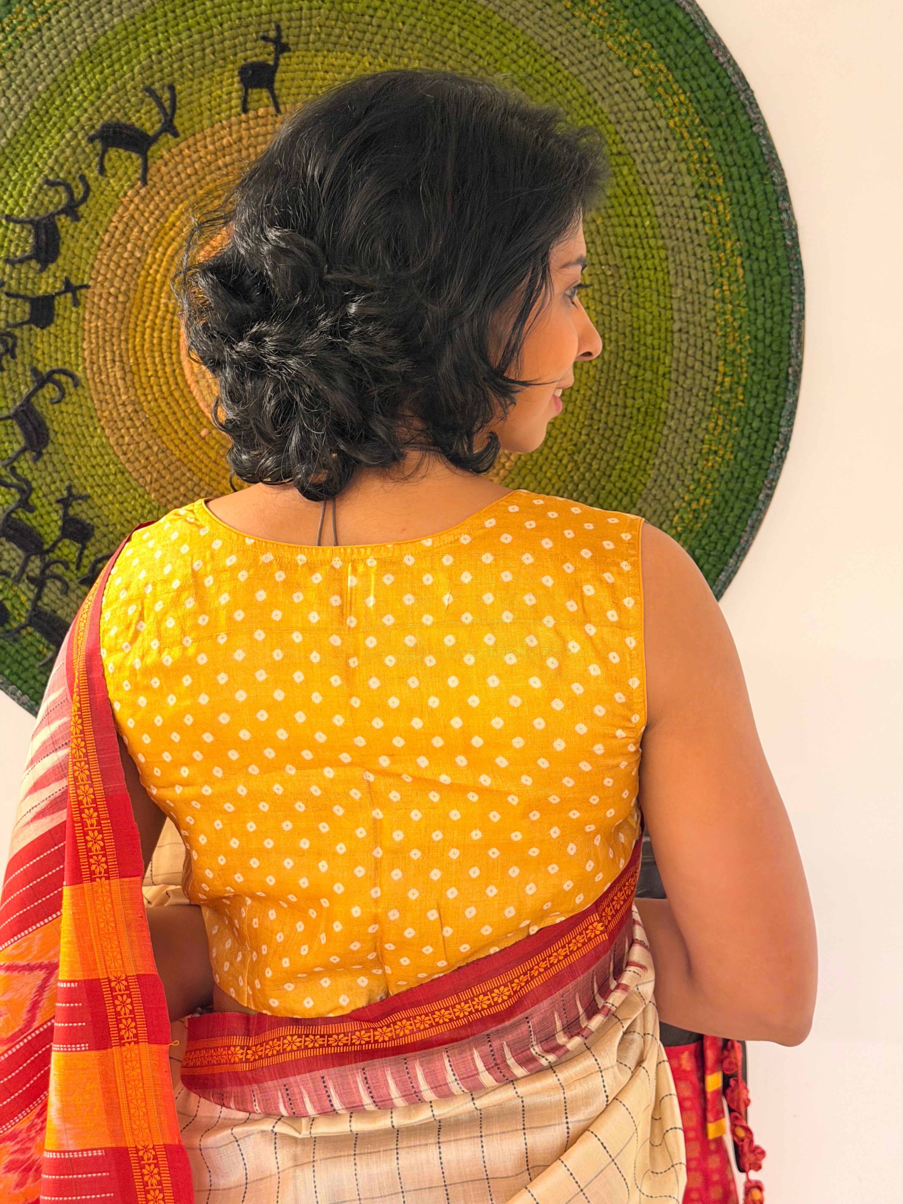 Tussar Bandhani Sleeveless Blouse - Yellow