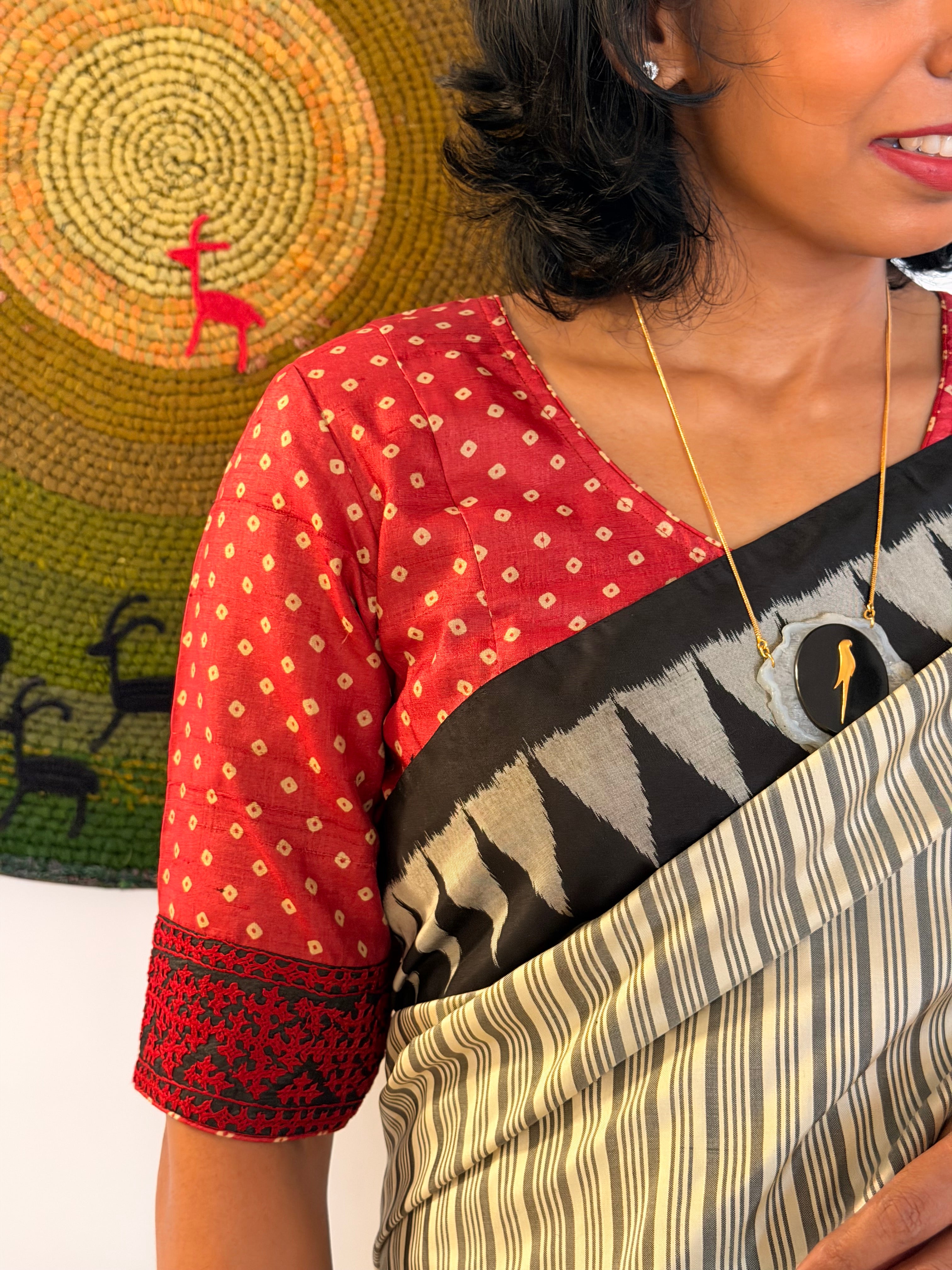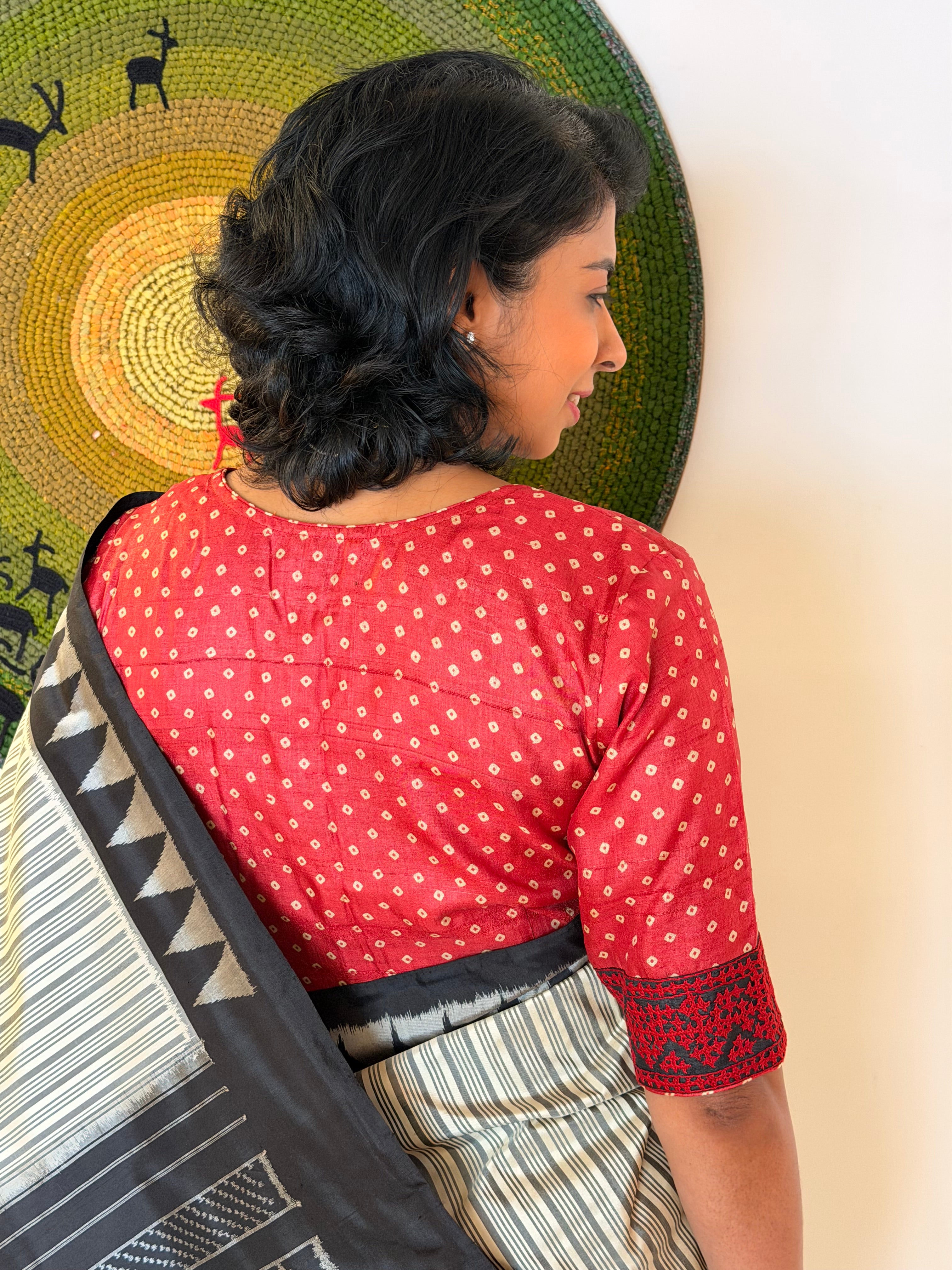 Tussar Bandhani Blouse - Red