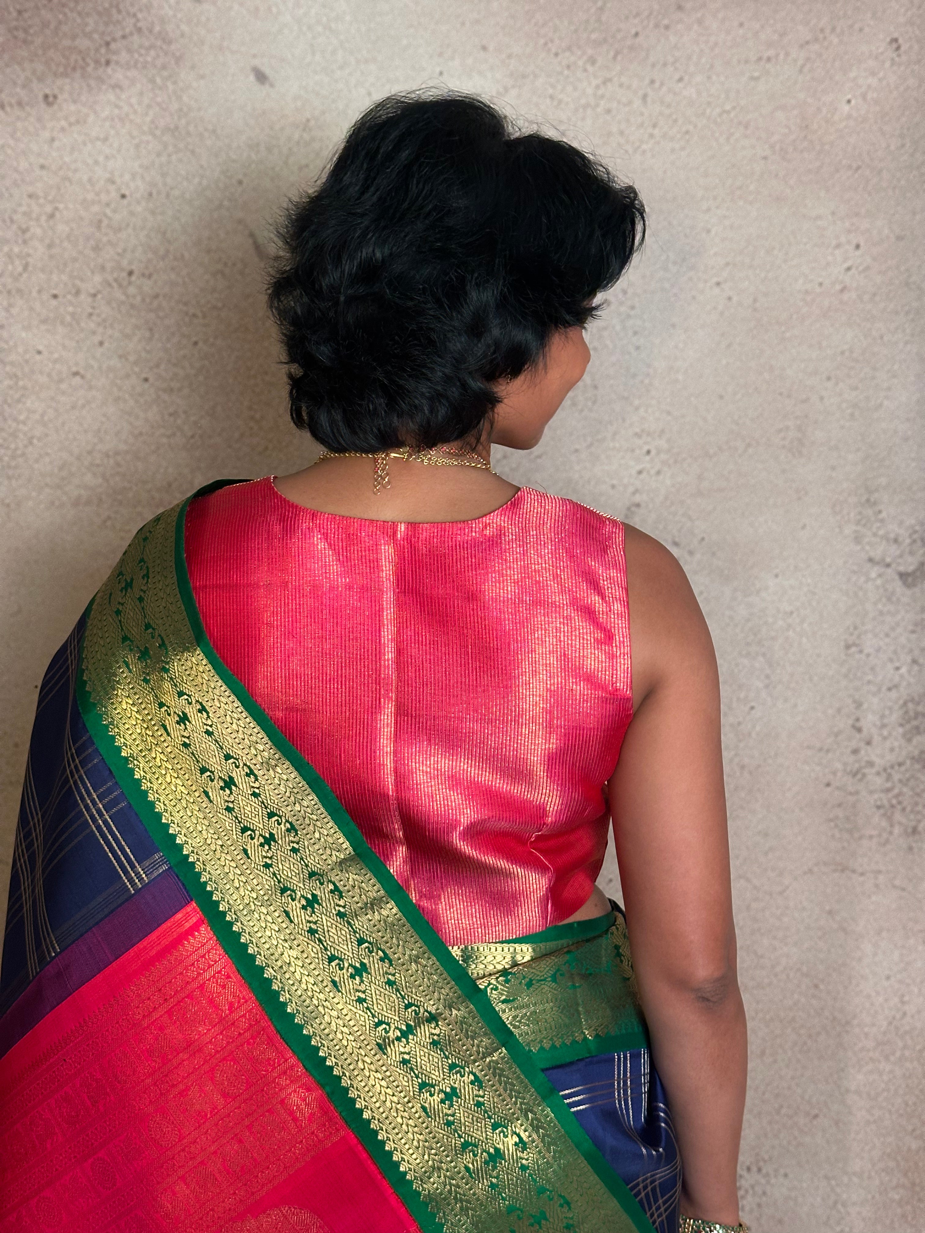• Handwoven Kanchipuram silk.