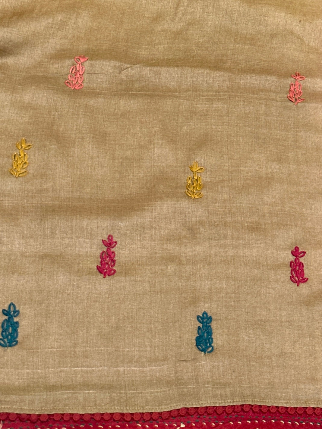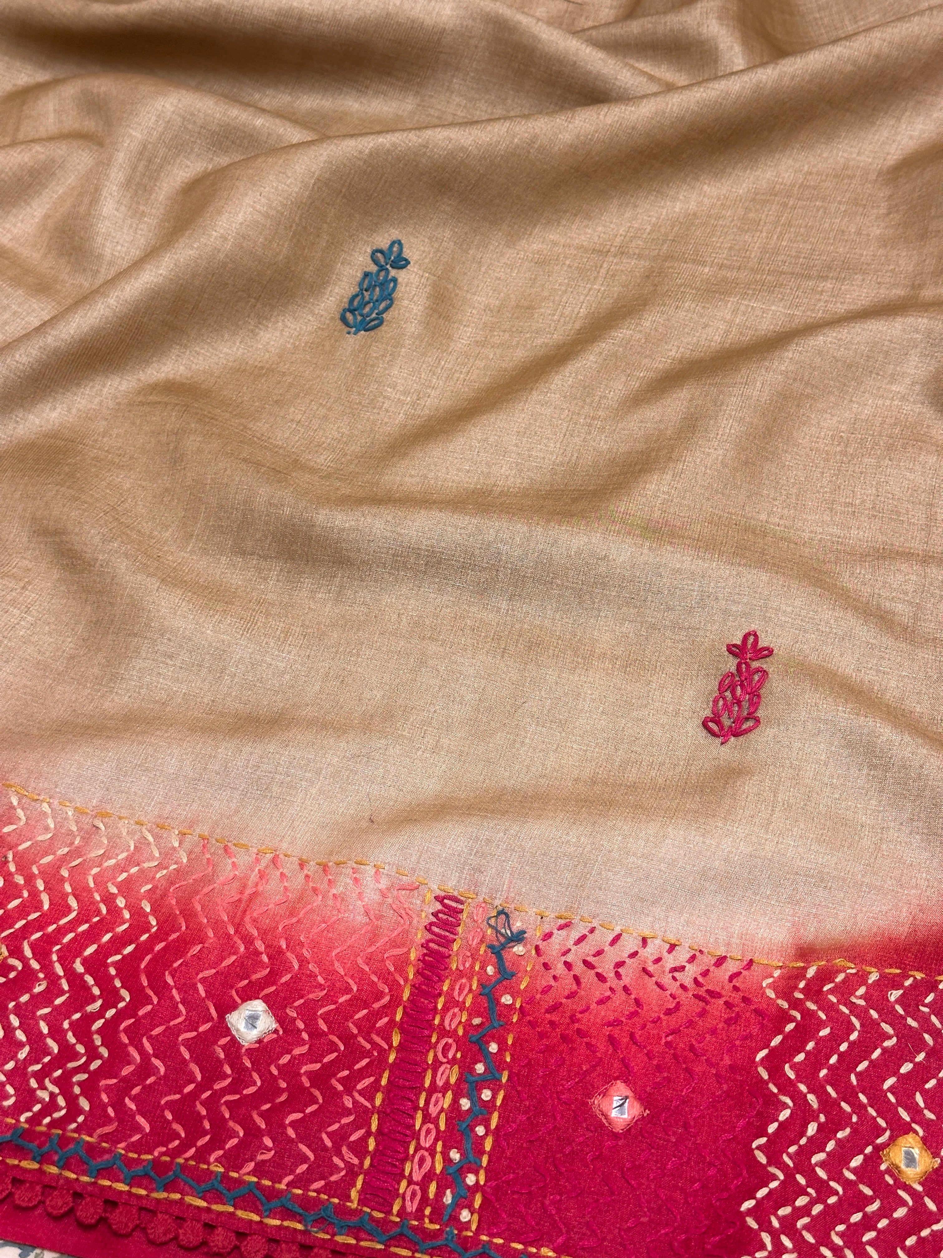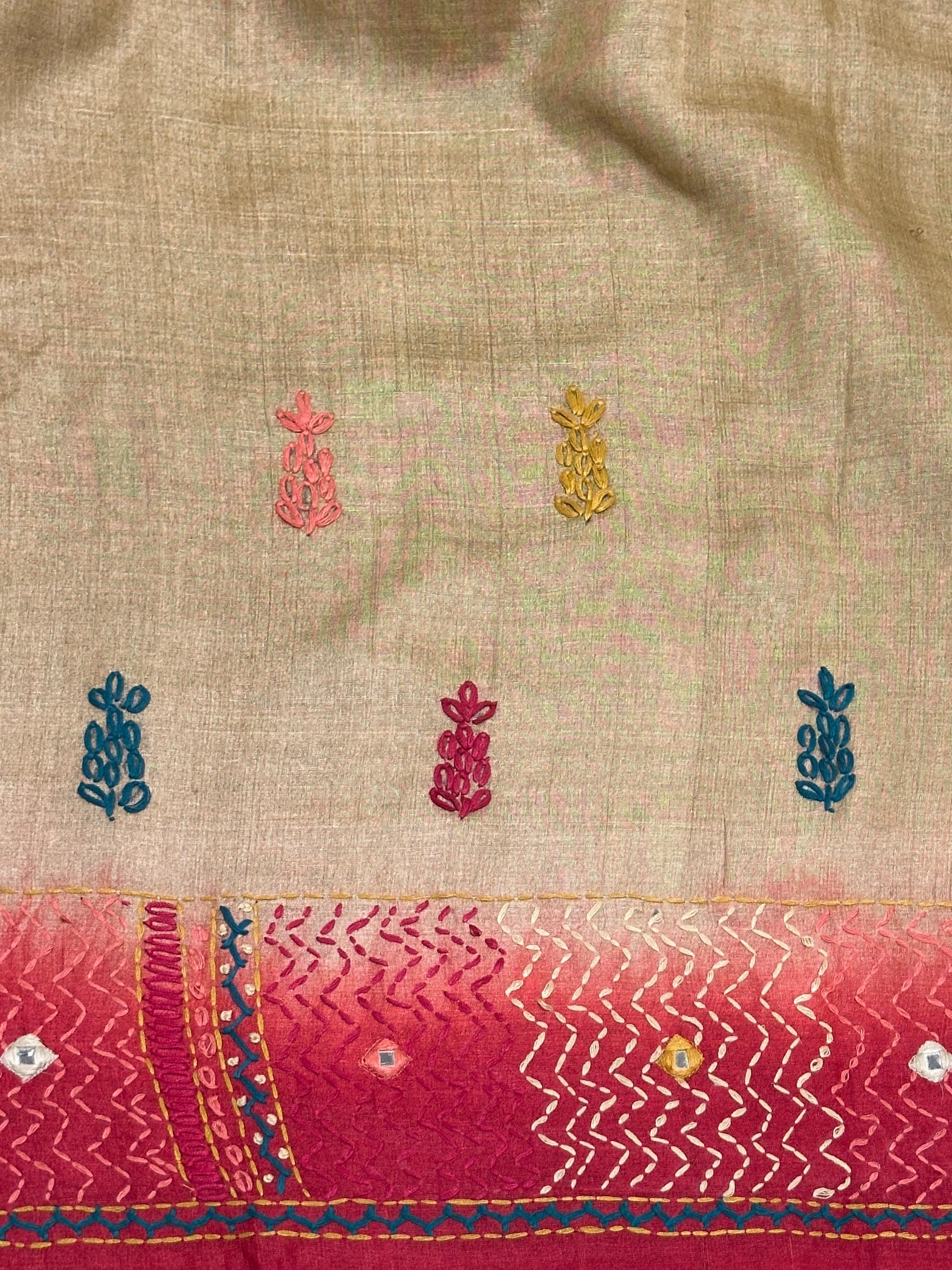 • Border detailed with traditional Kantha work using fine running stitches in heritage style.
