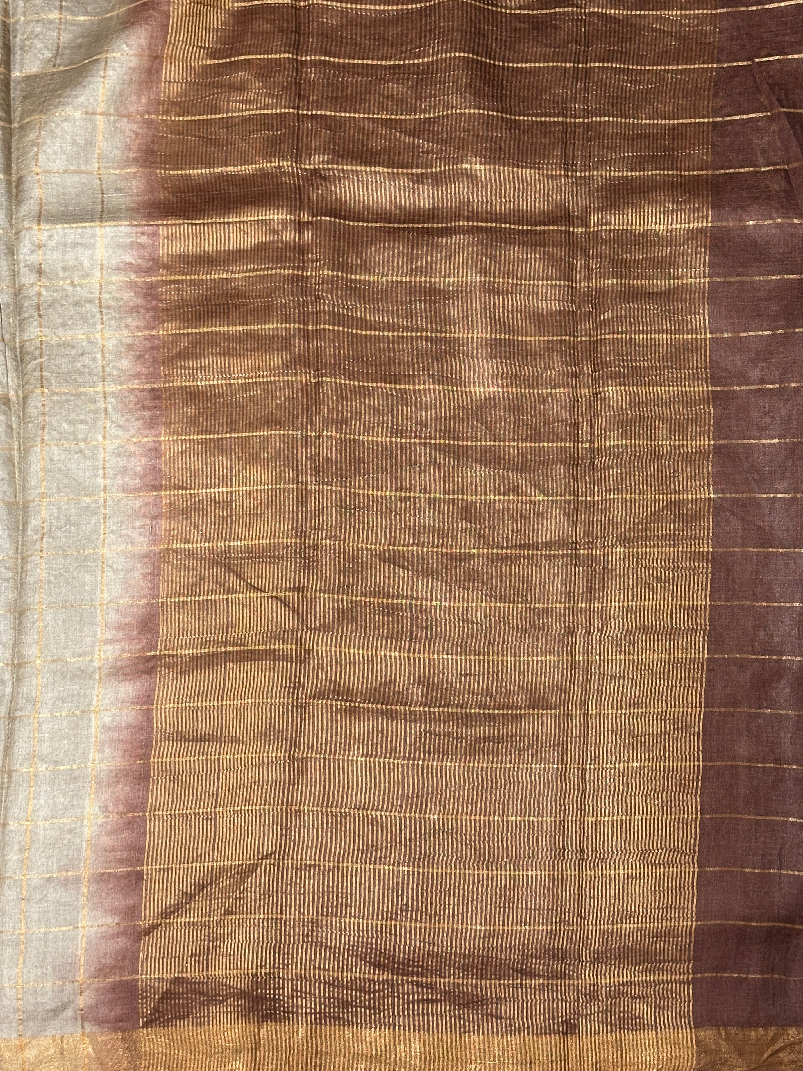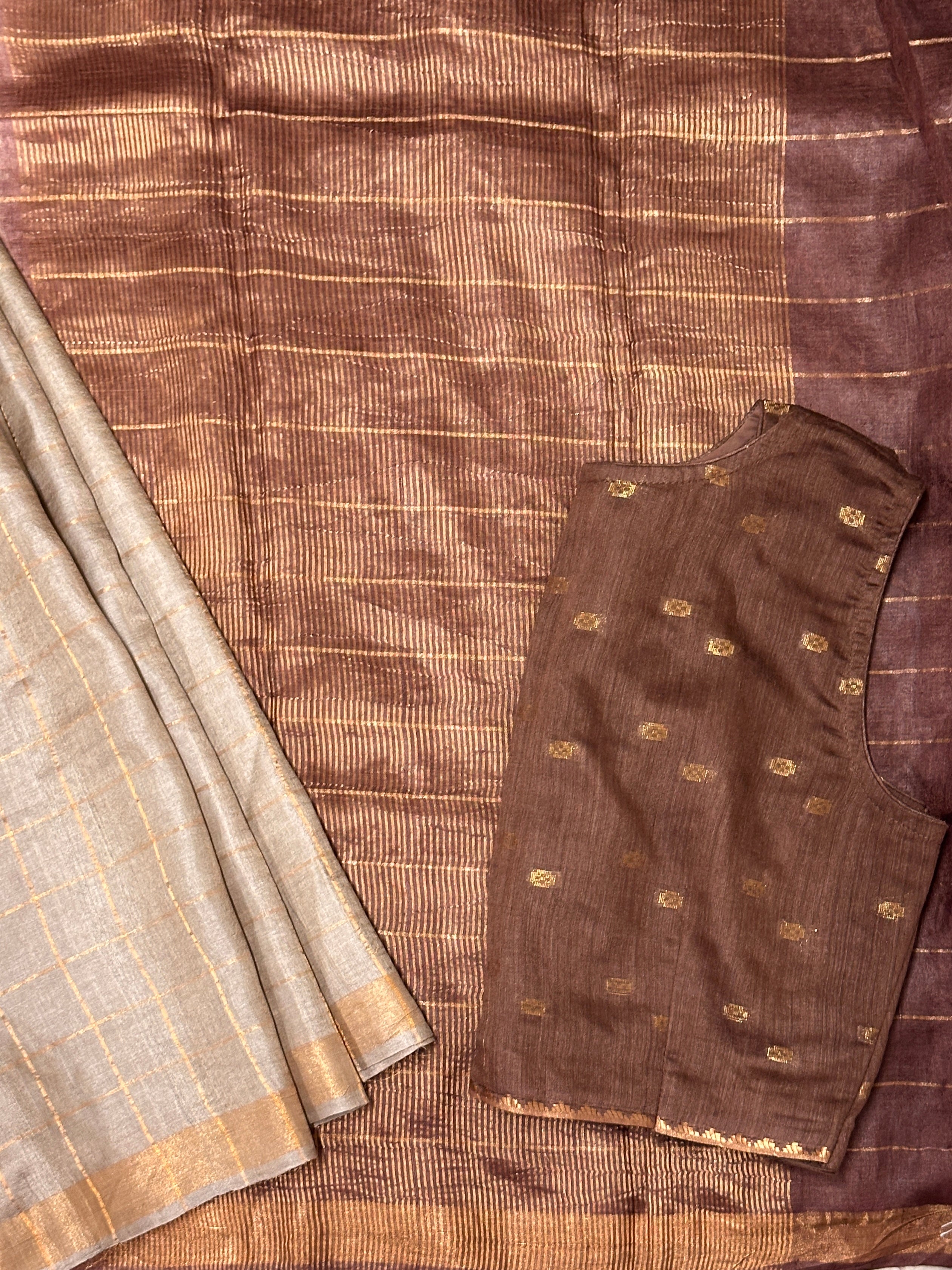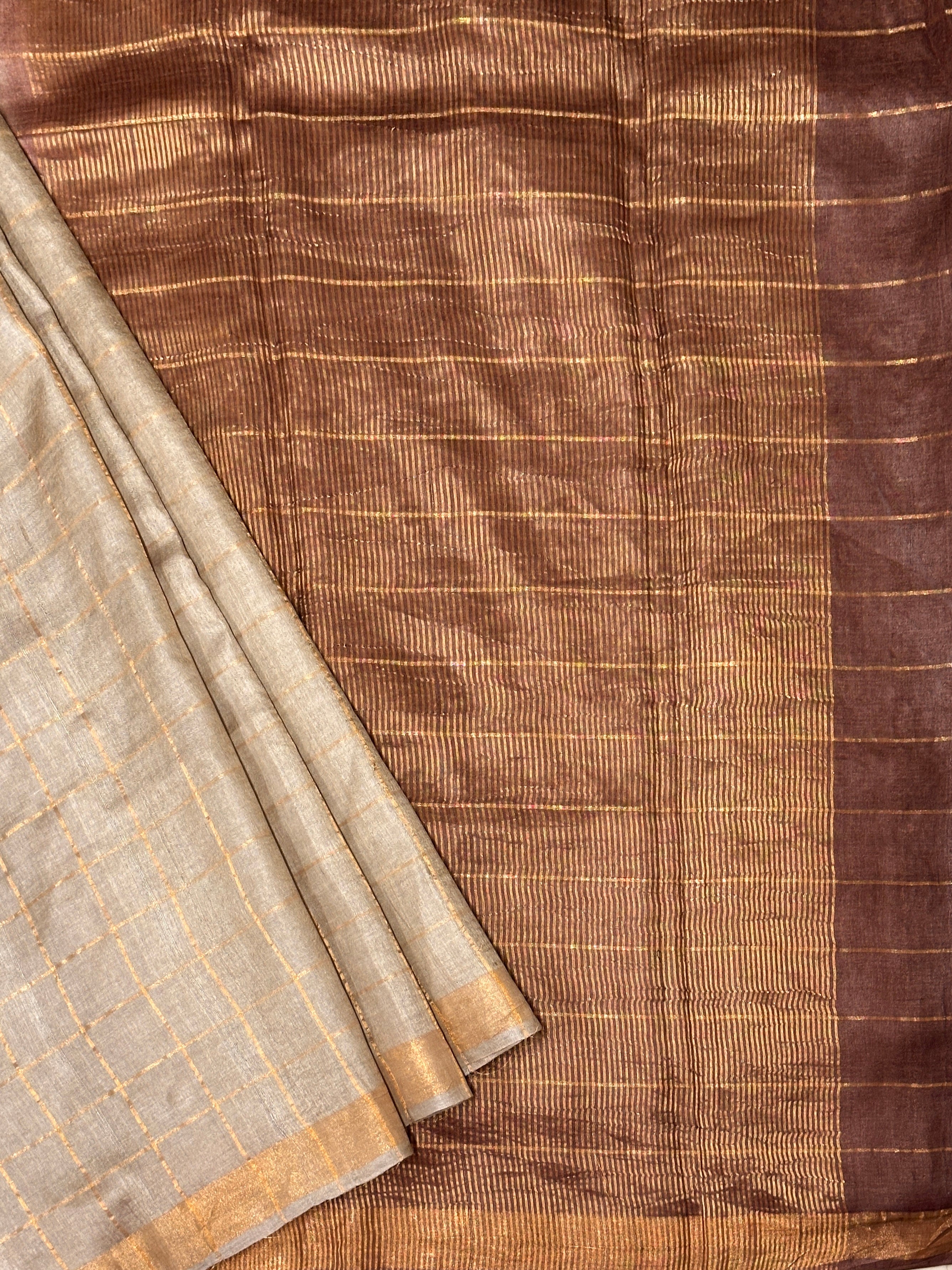 • Elegant Tussar Saree featuring medium-sized checks for a timeless, classic appeal.