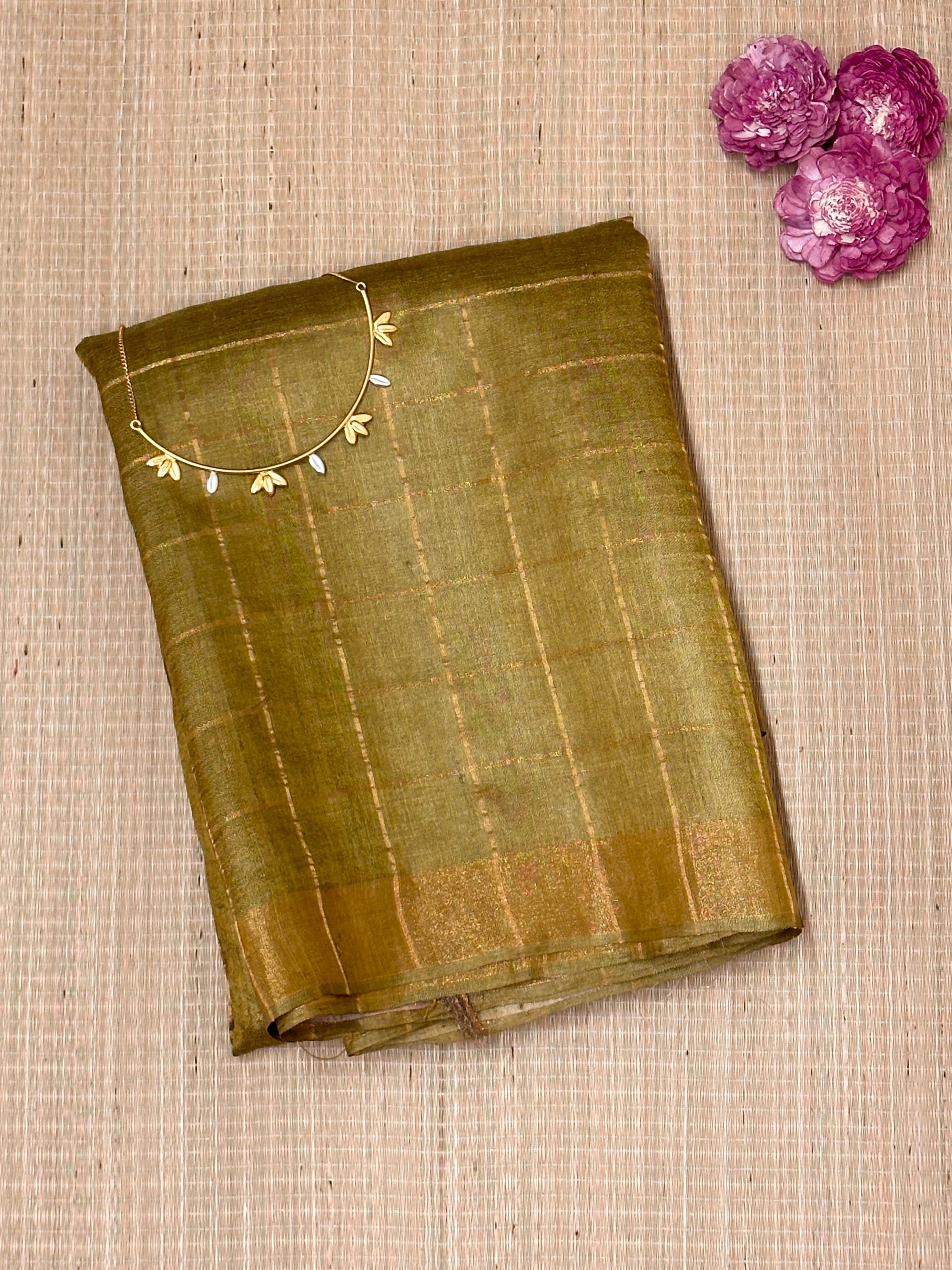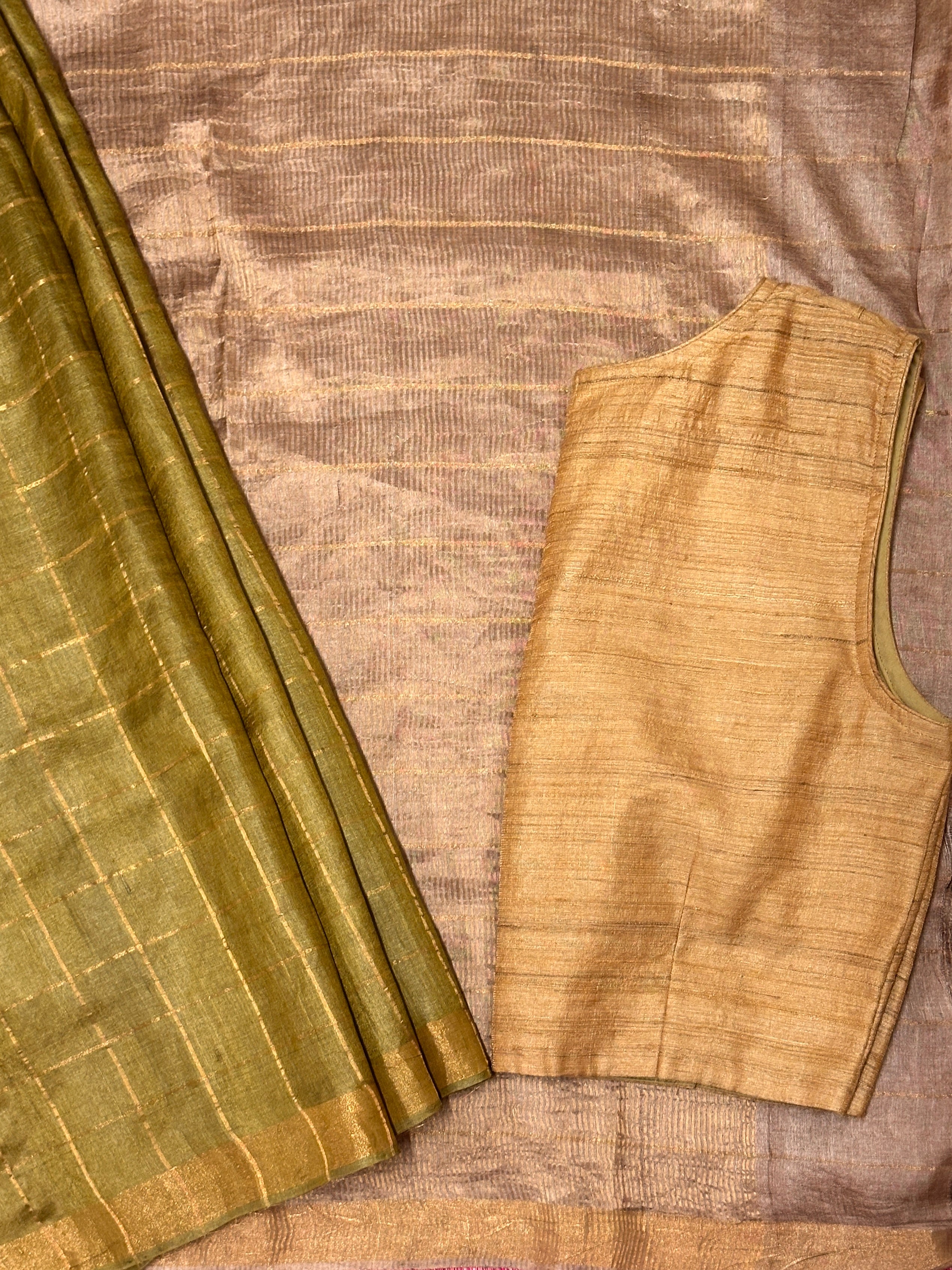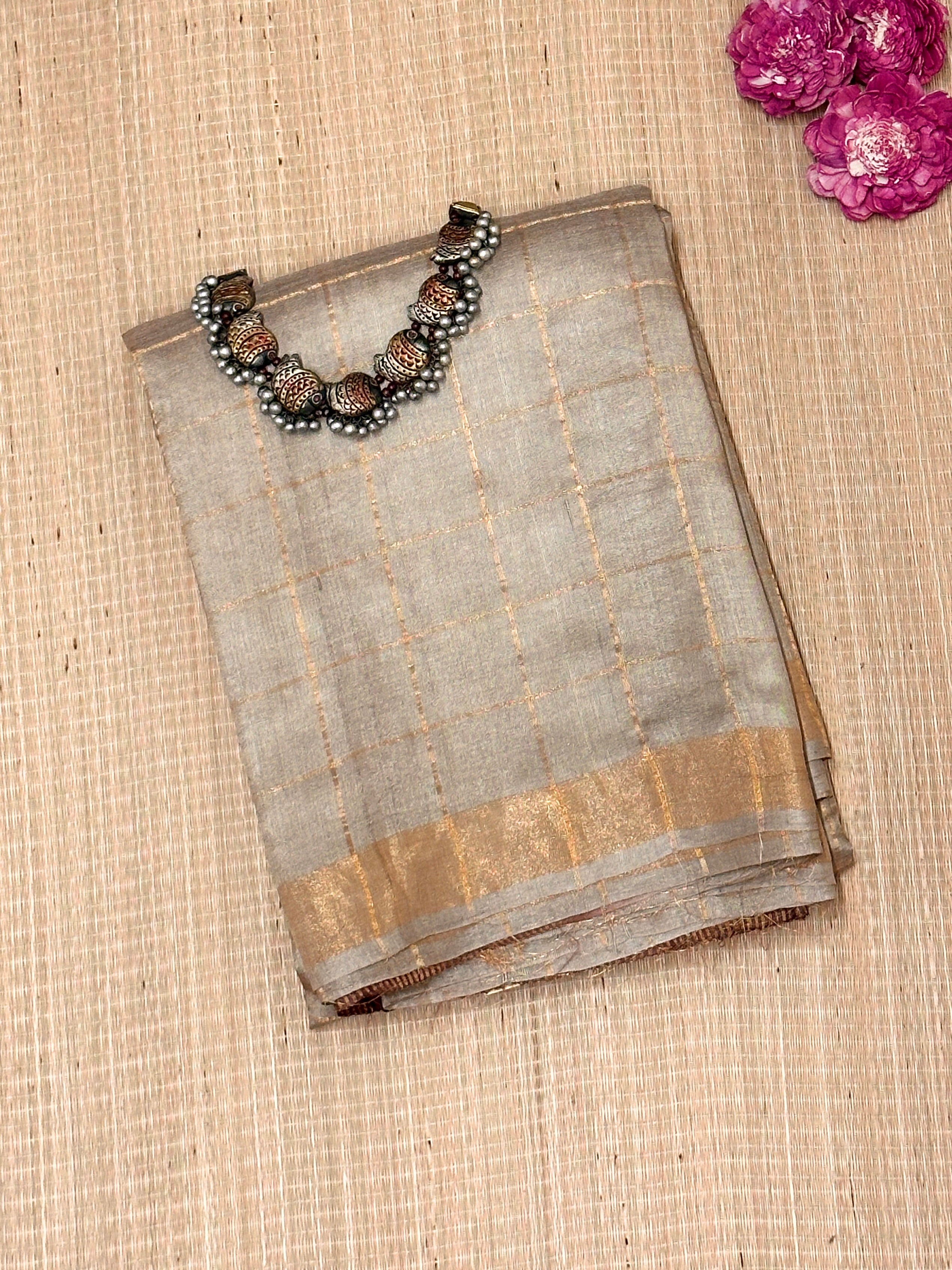 • Elegant Tussar Saree featuring medium-sized checks for a timeless, classic appeal.