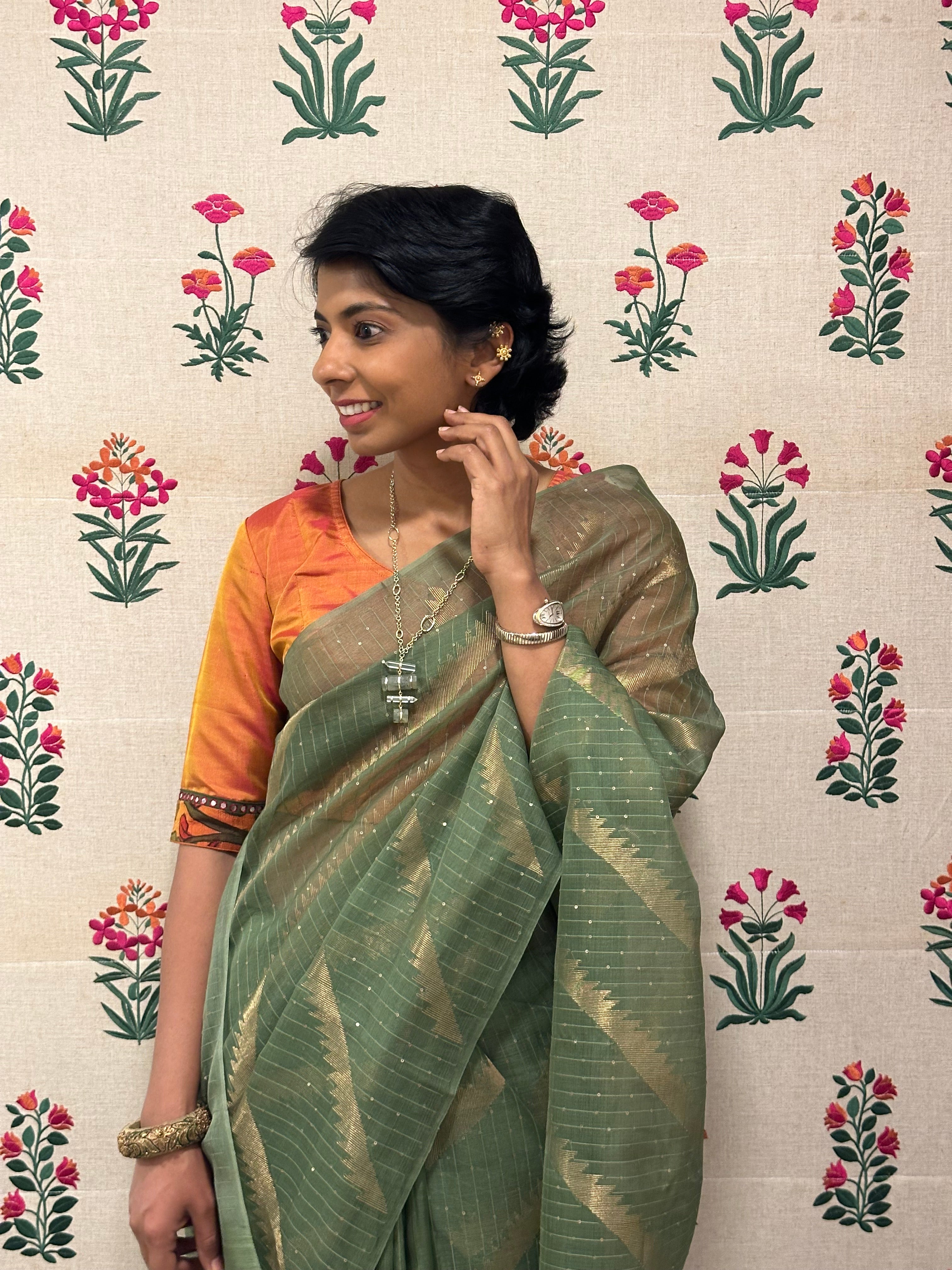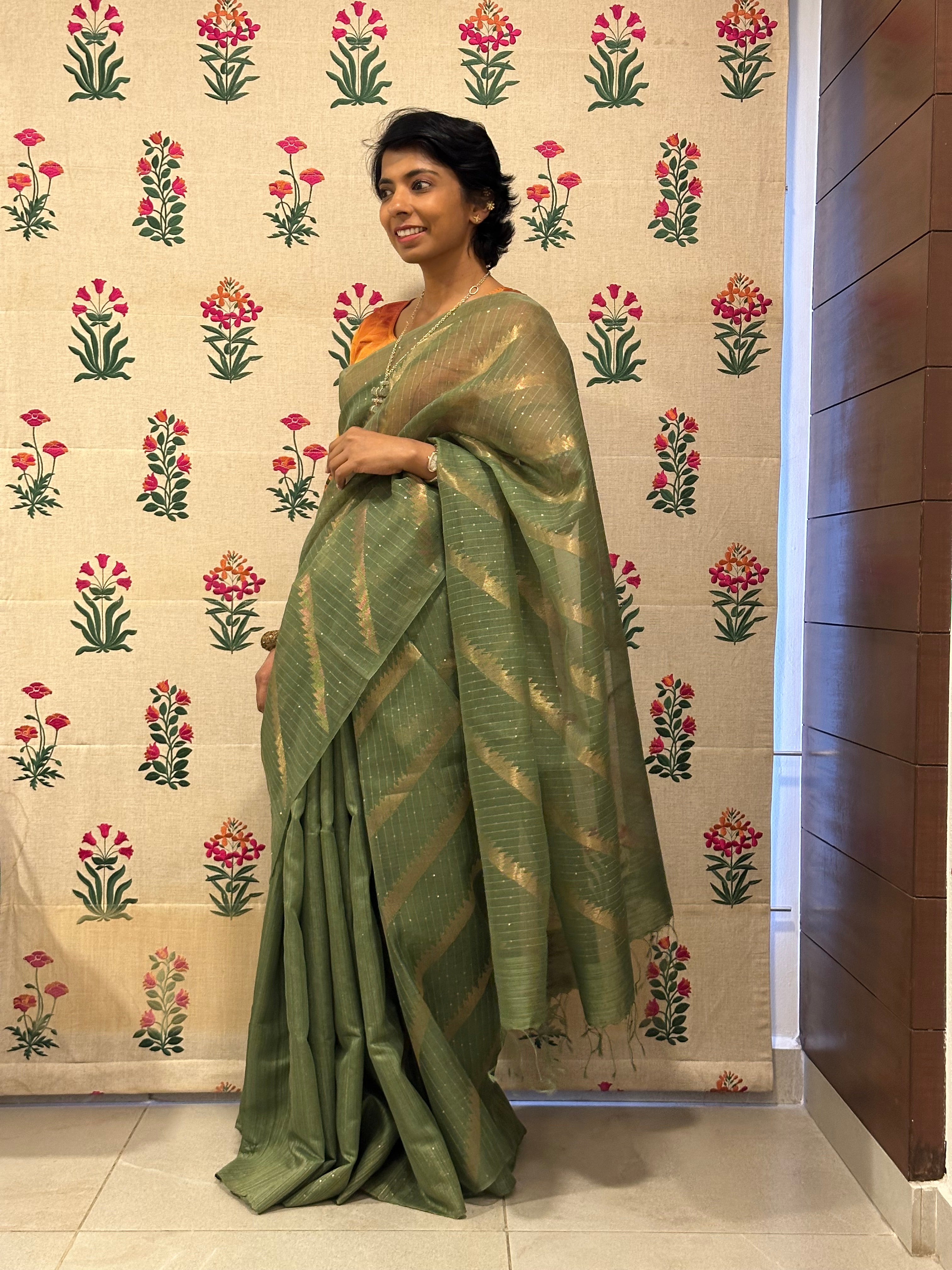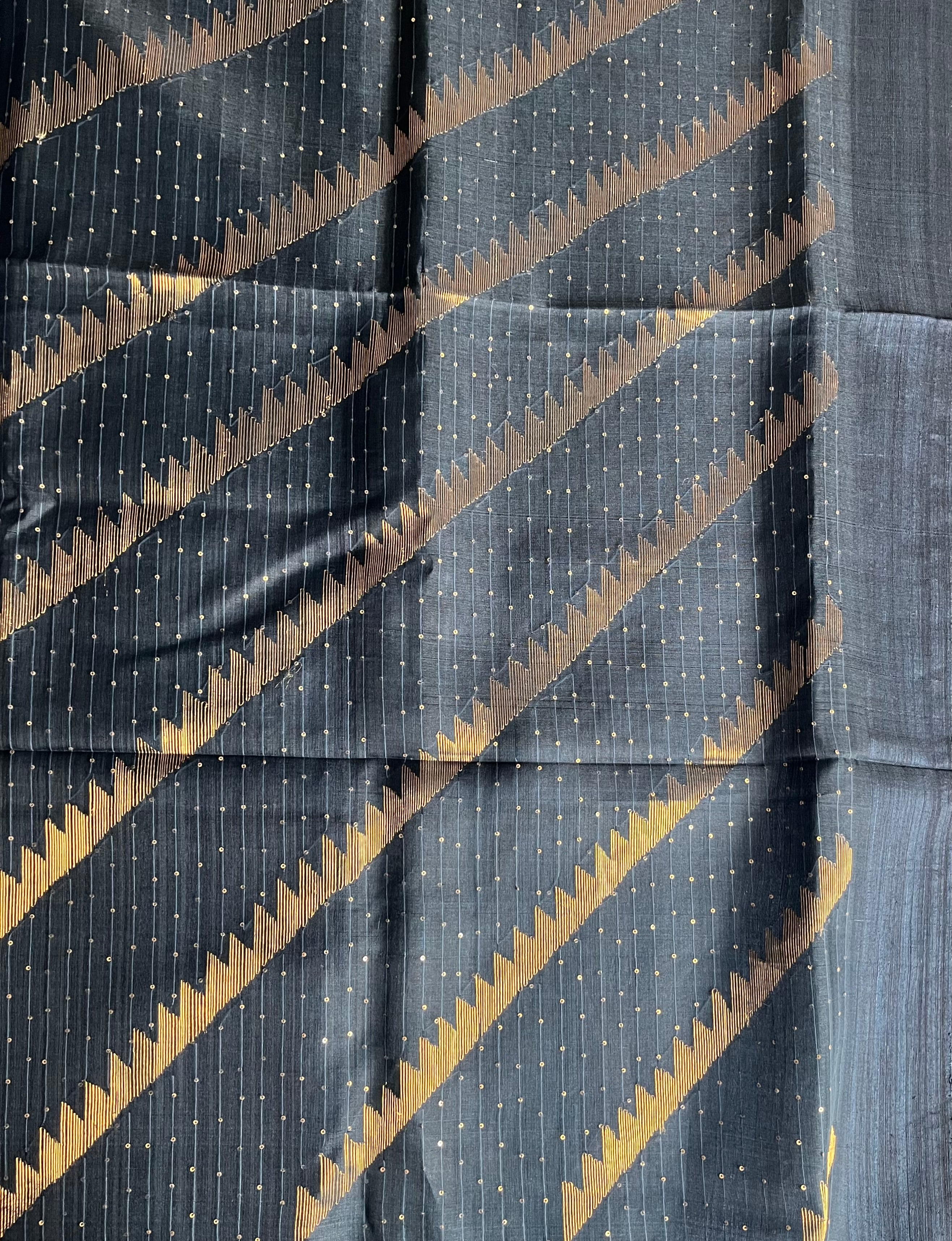 • Zari stripes woven in a diagonal fashion