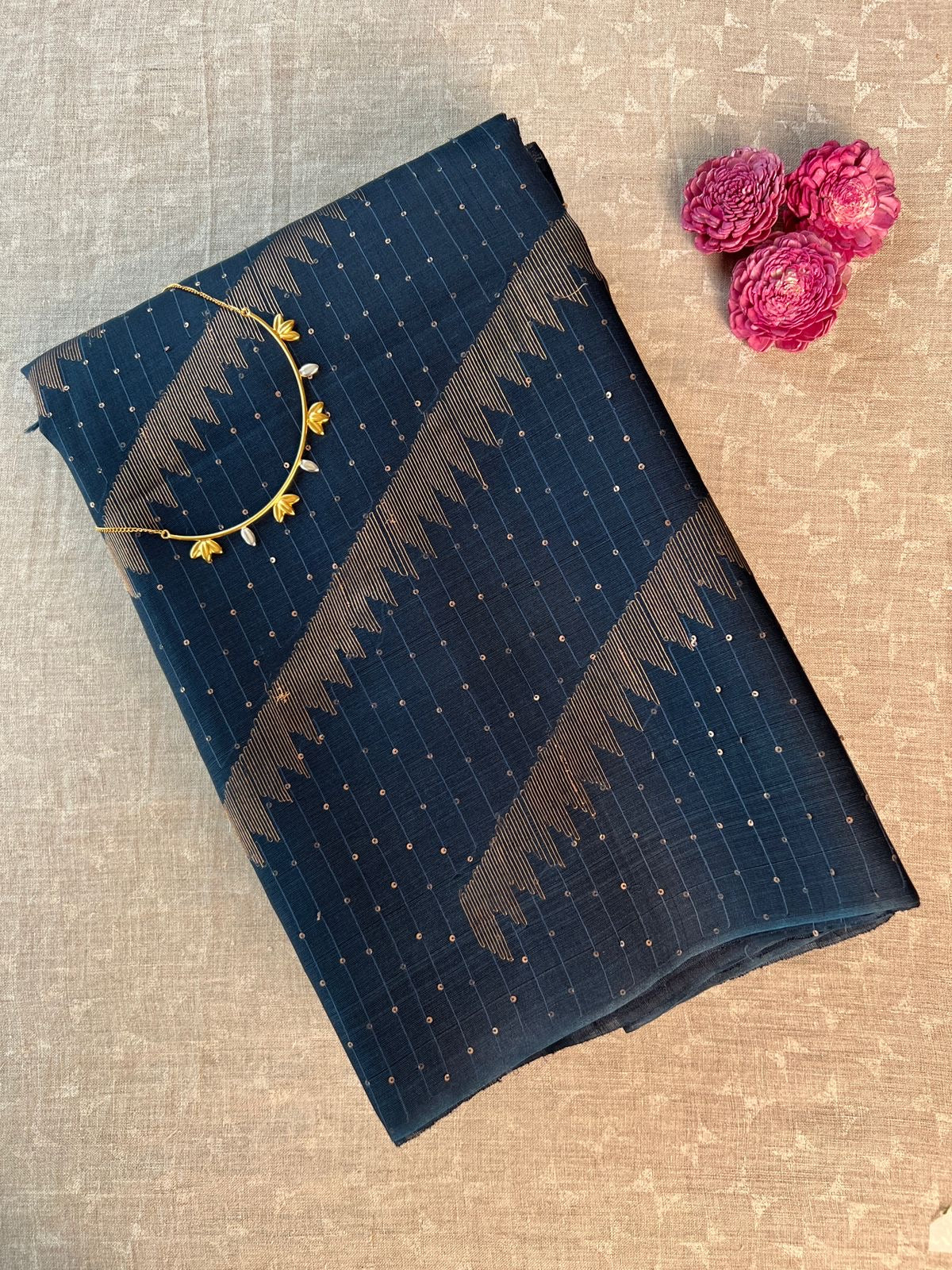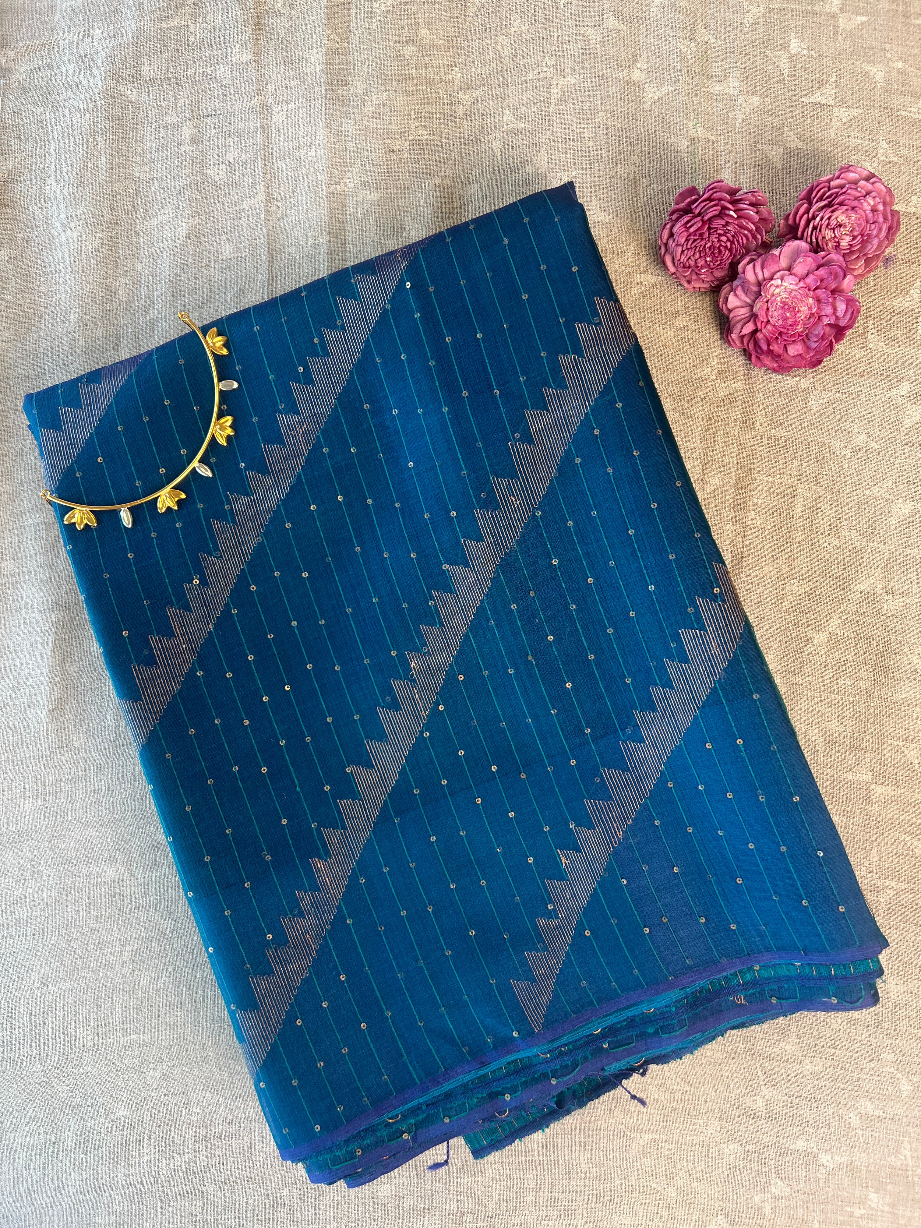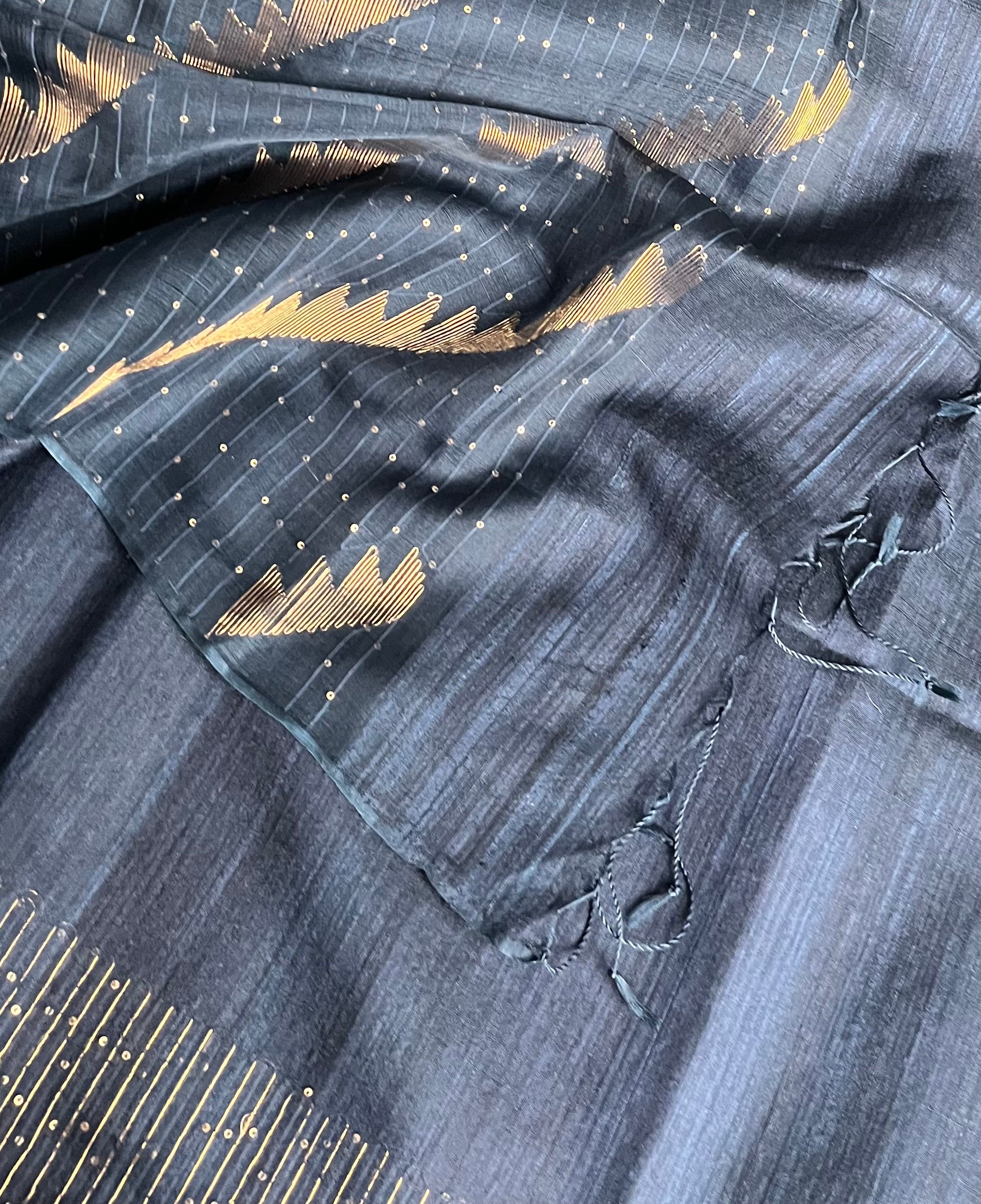 • Zari stripes woven in a diagonal fashion