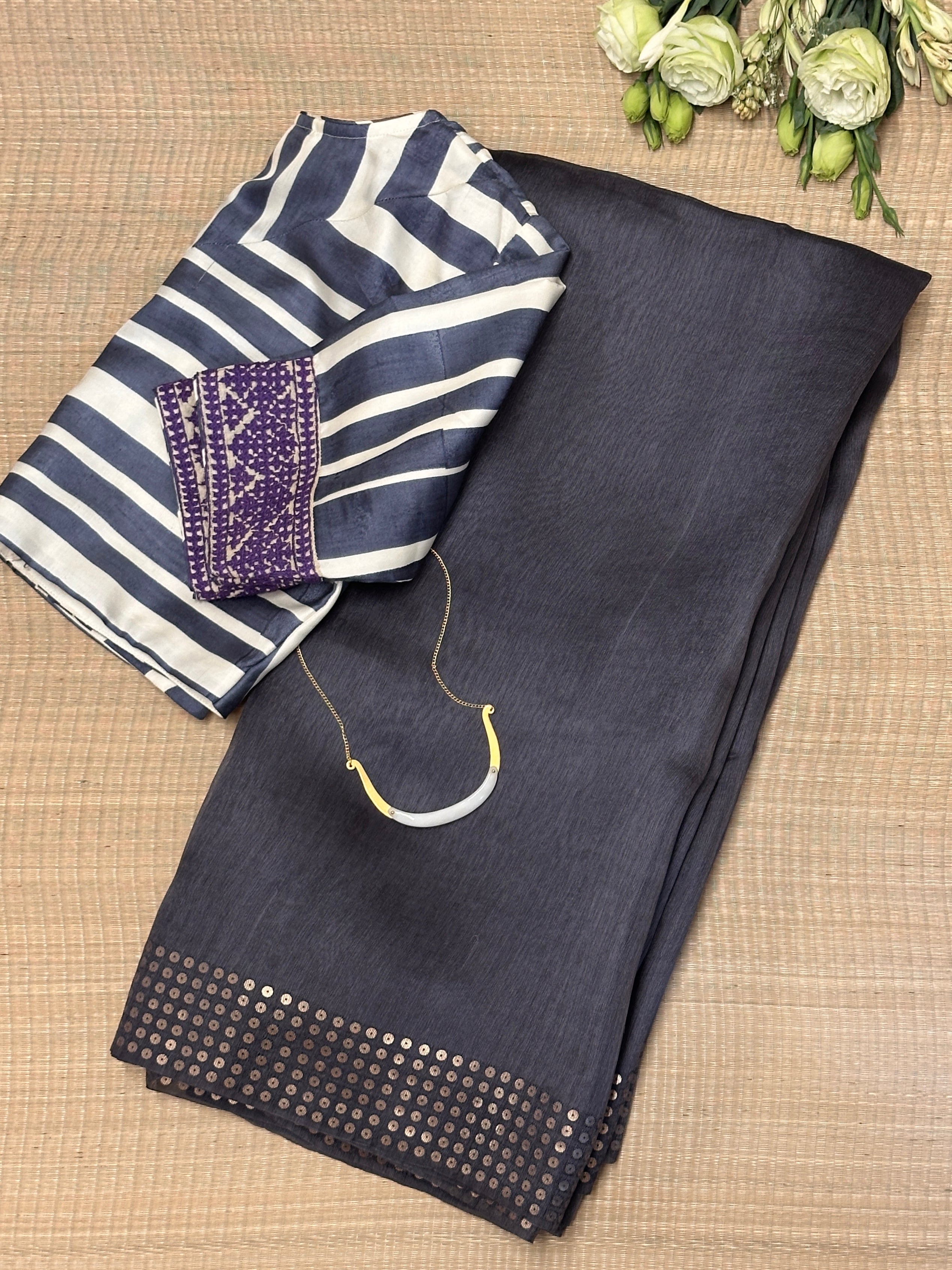 - Sequins woven on the border and pallu