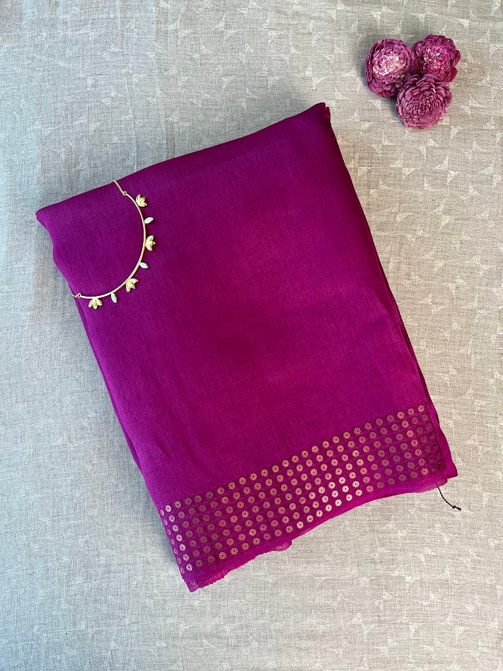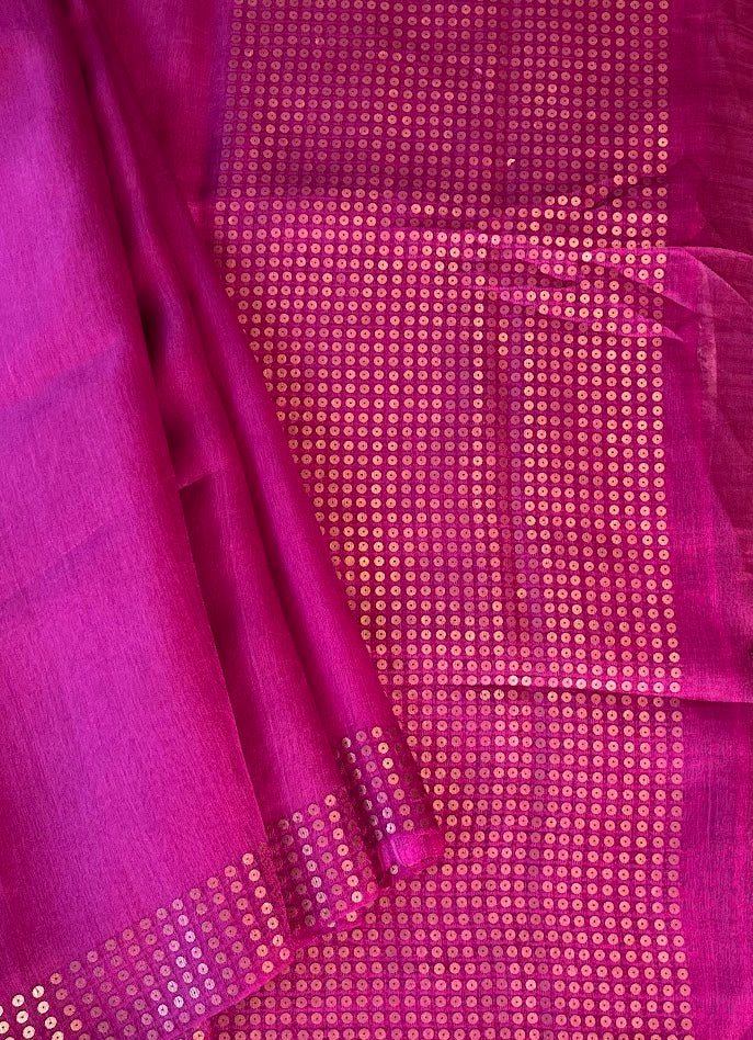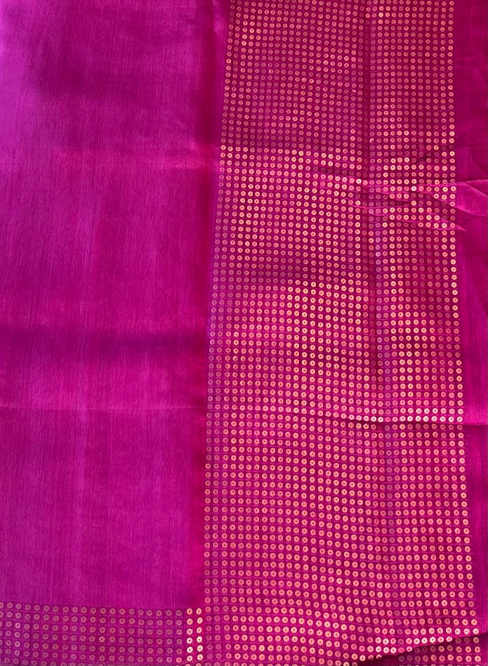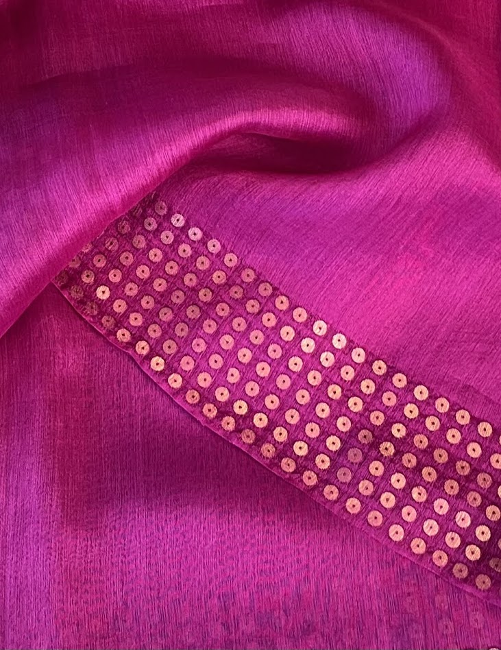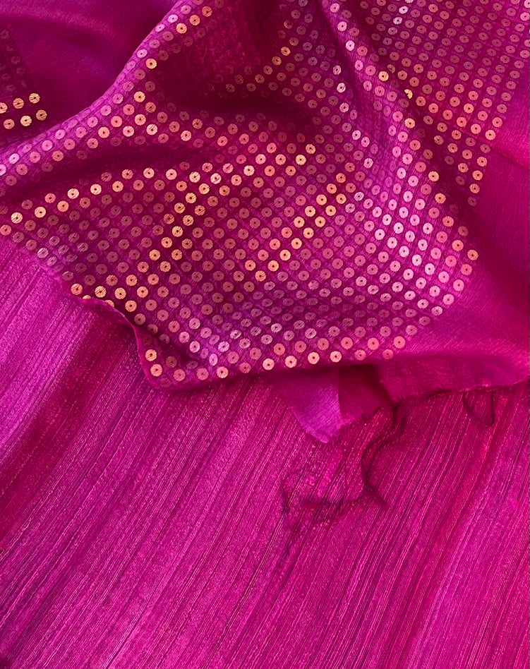 Sequinned Matka Silk Saree - Magenta
