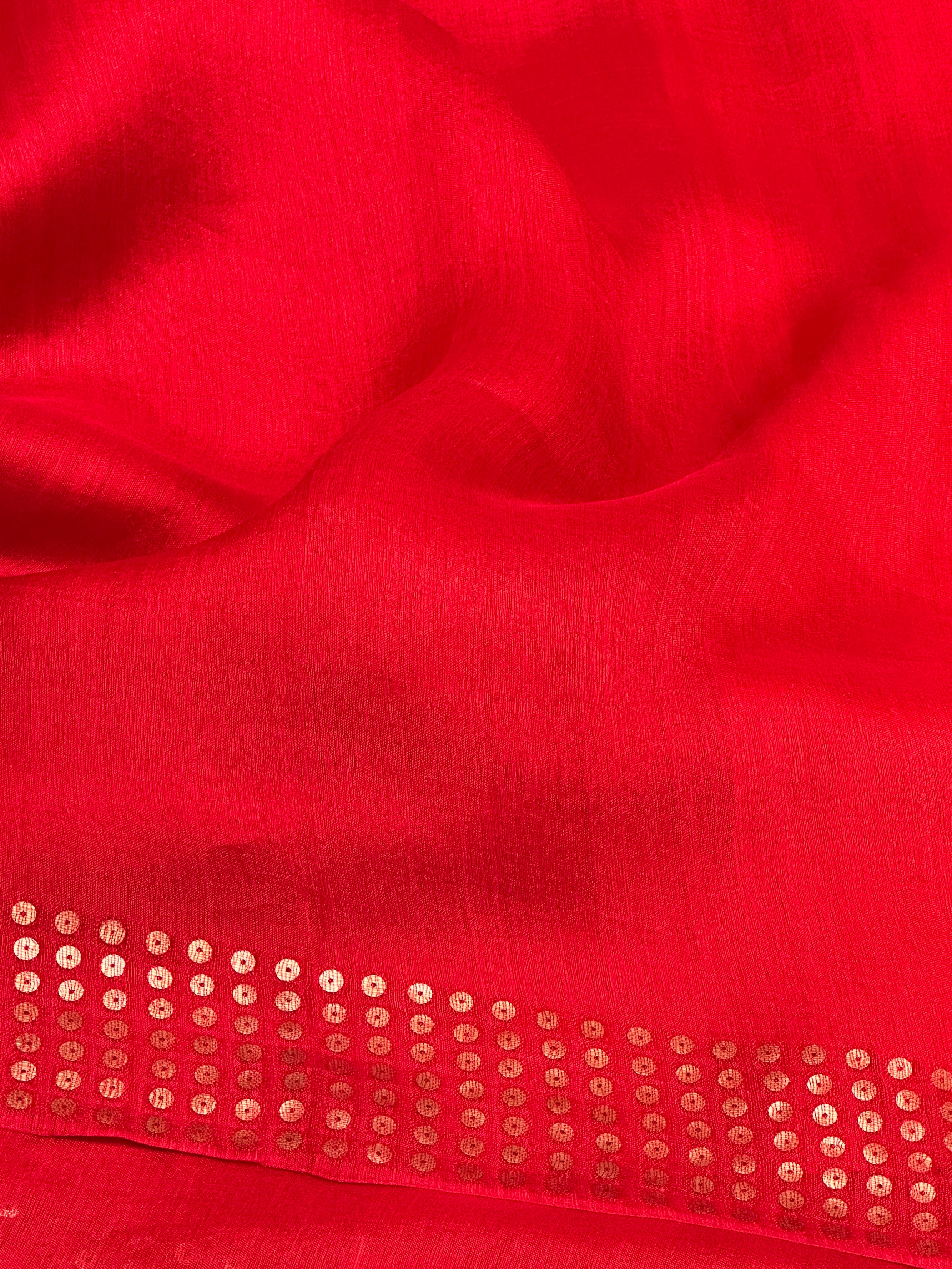 Sequinned Matka Silk Saree - Red