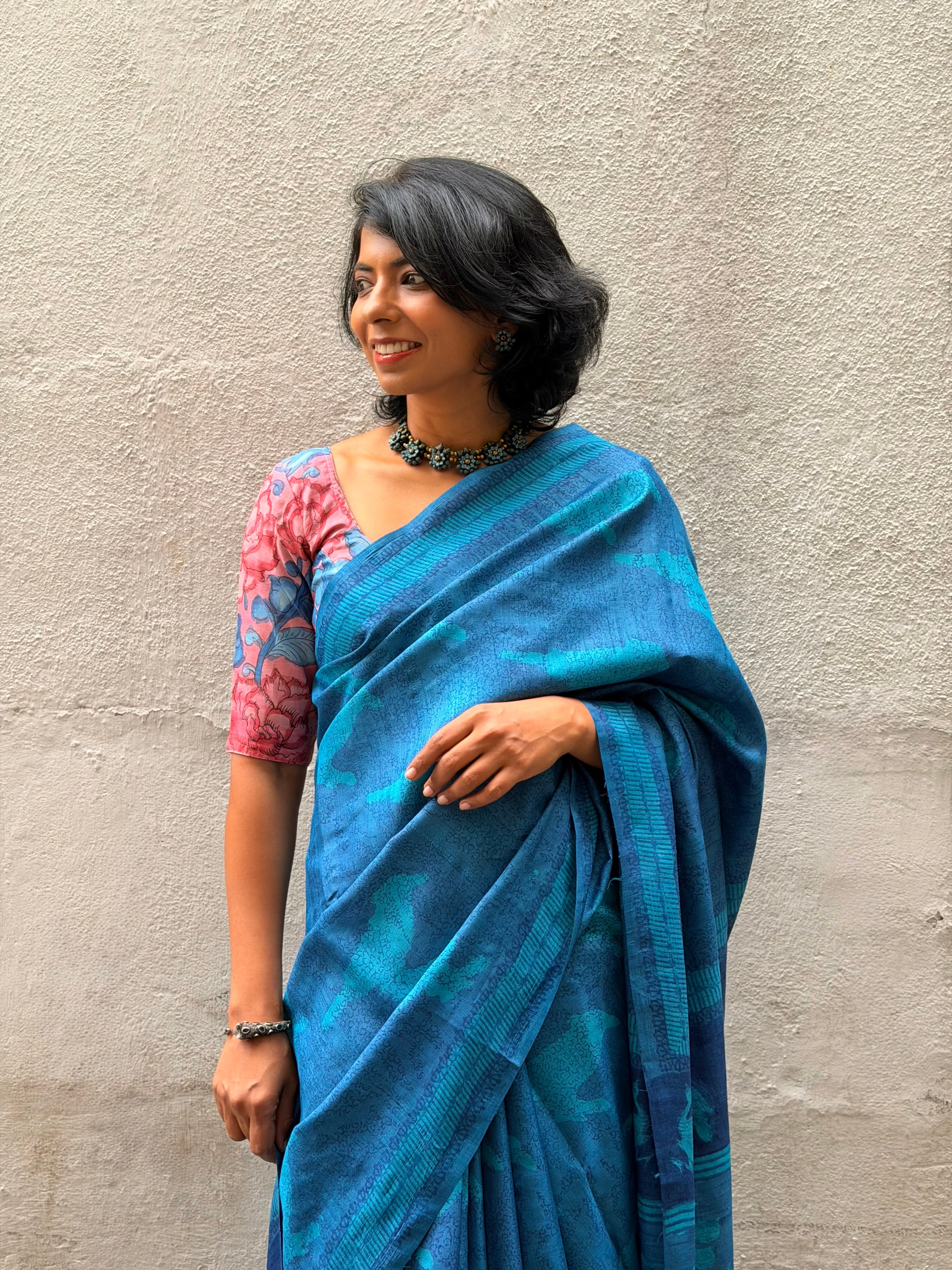 Comes with a matching blouse piece in the same saree print for a coordinated look