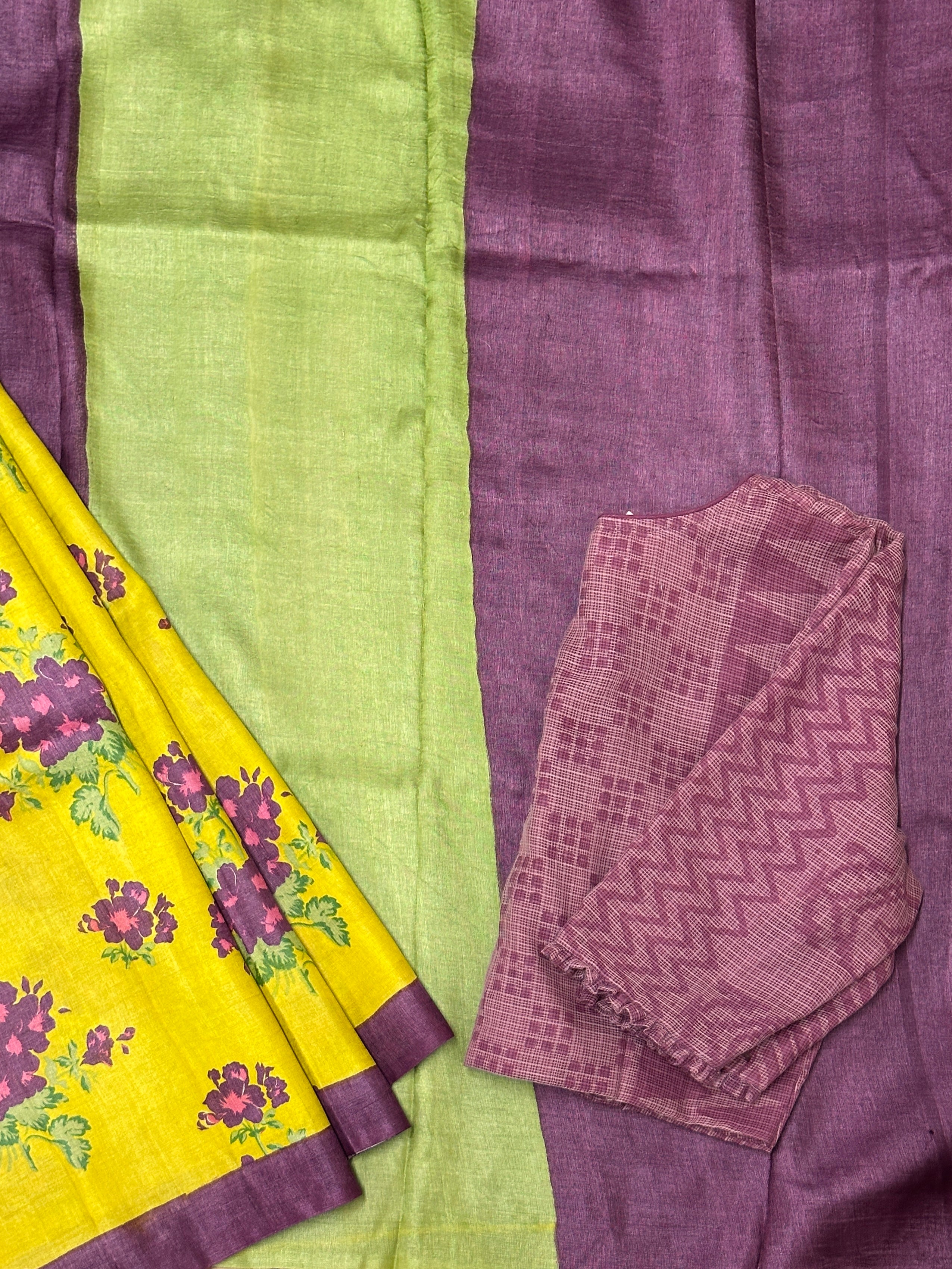• Crafted from pure tussar silk with exquisite hand block floral prints.