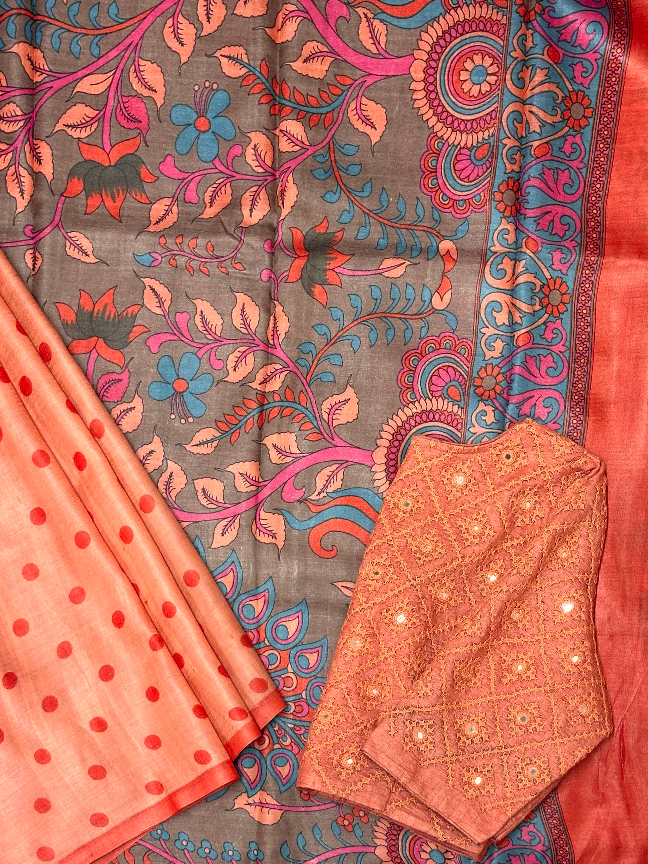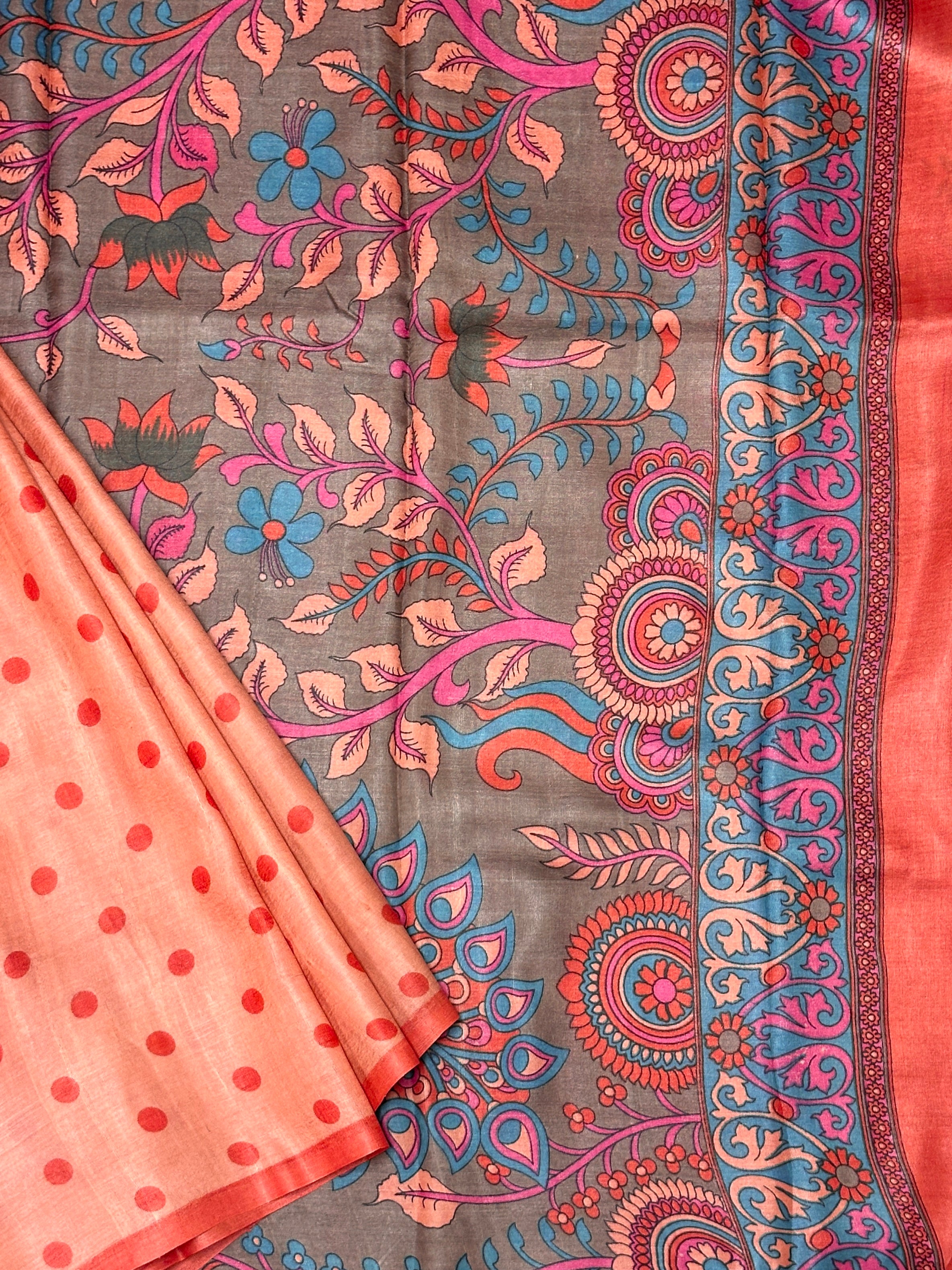 • Plain and subtle body with polka printed and a selvage.