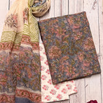 - 4 piece set, comes with a paired lining, printed cotton bottom fabric and kota doriya dupatta