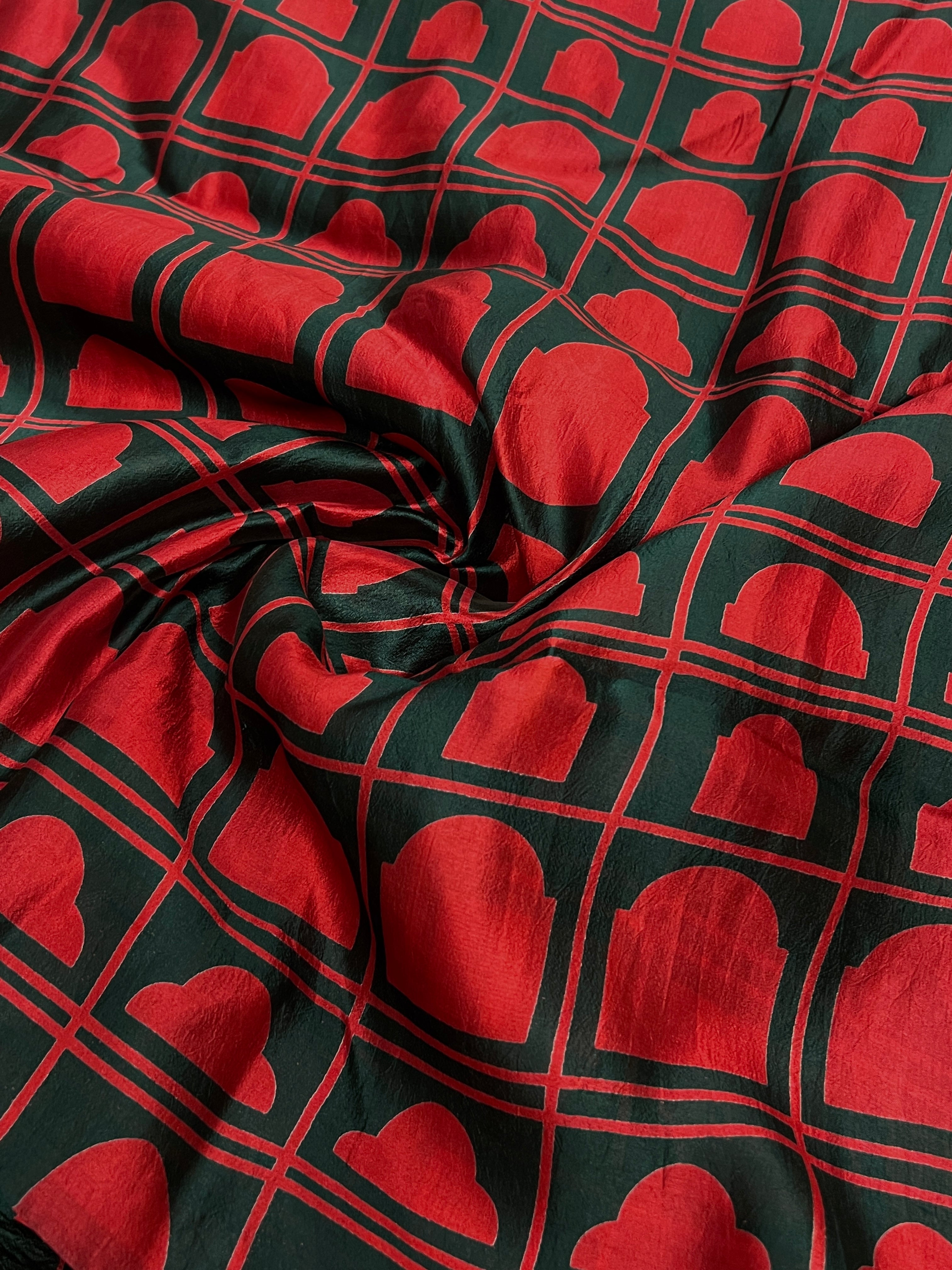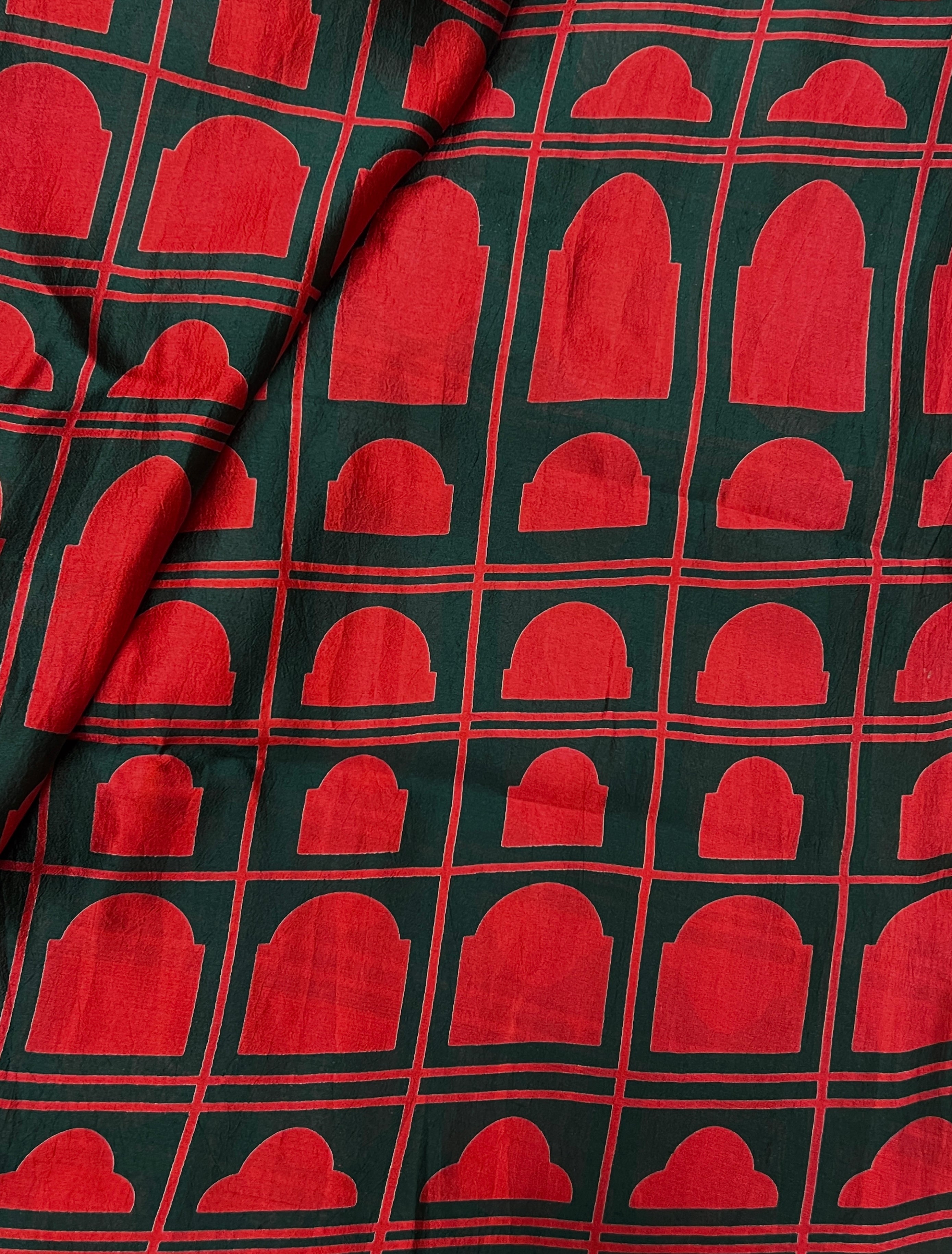 • Premium silk fabric featuring hand block printed palace gateway inspired motifs all over the body.