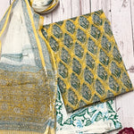 - 4 piece set, comes with a paired lining, printed cotton bottom fabric and kota doriya dupatta