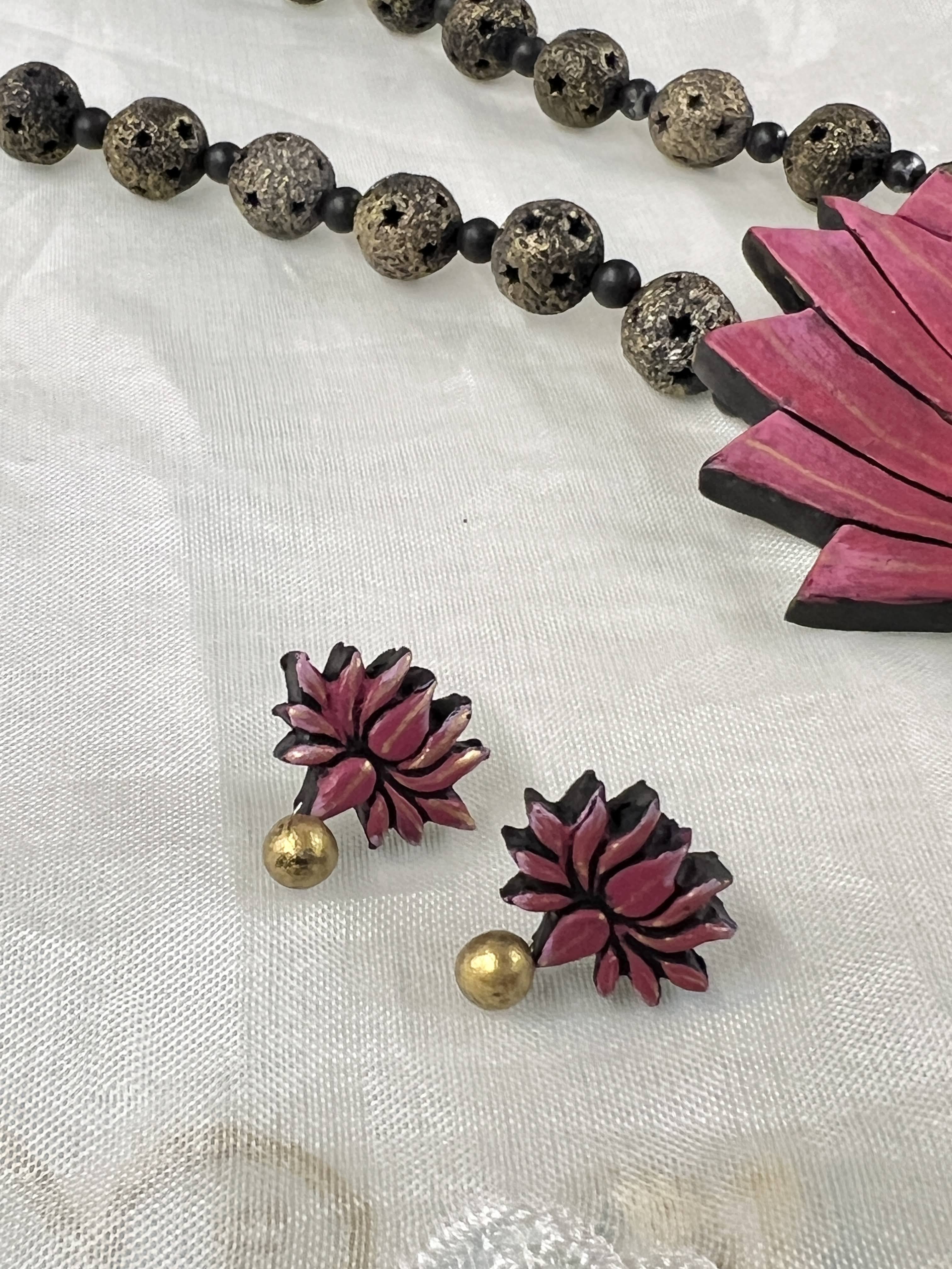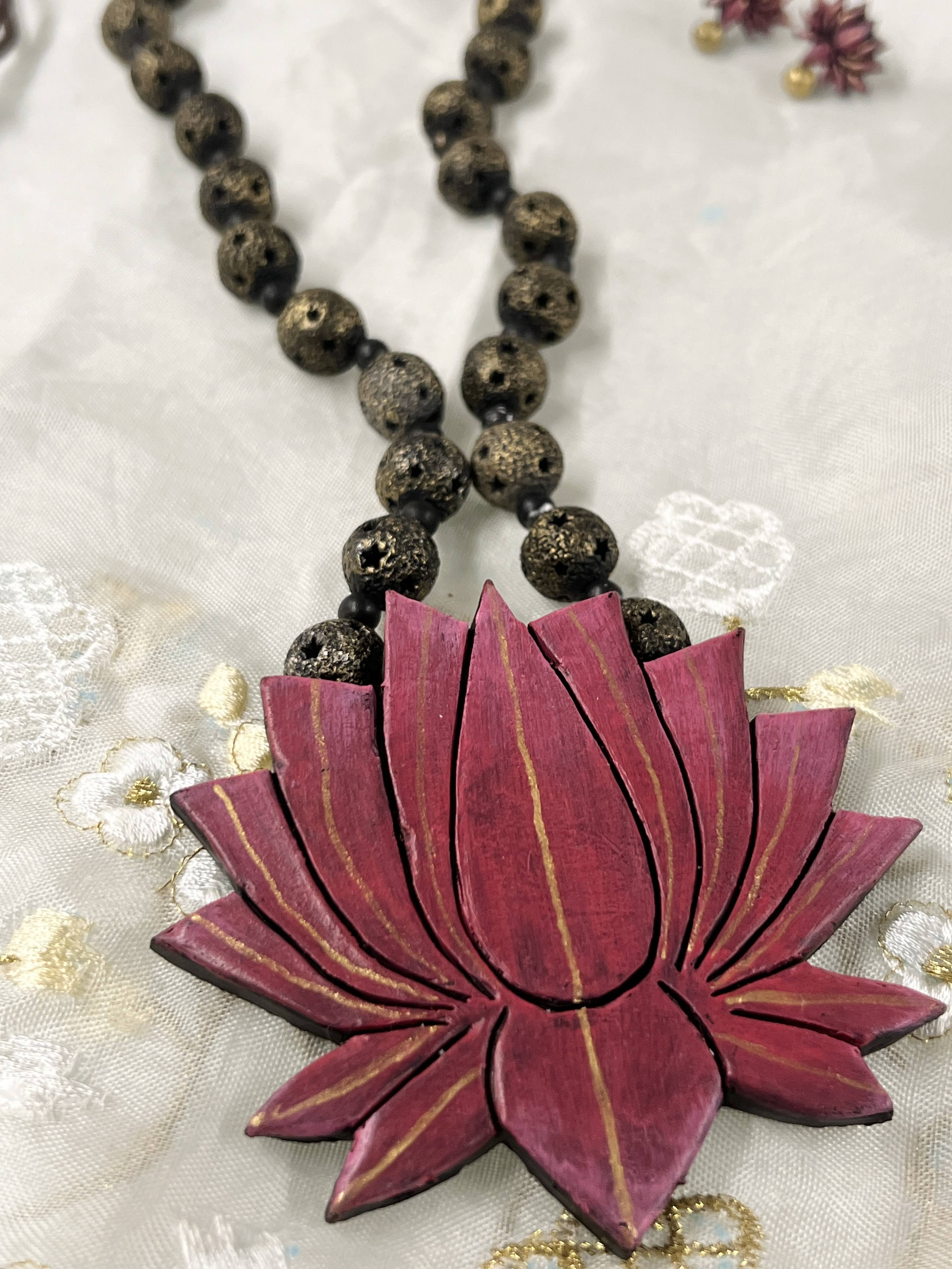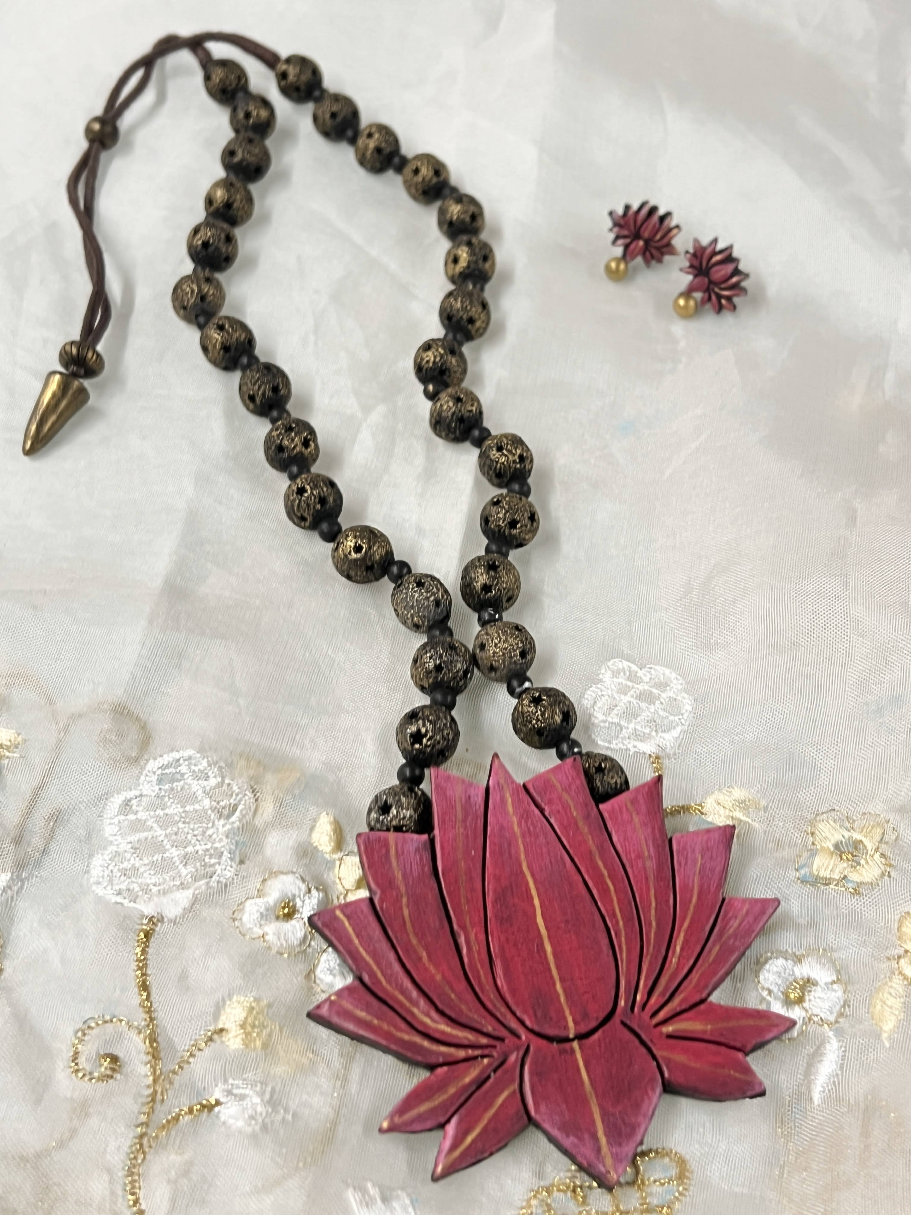 Beaded lotus terracotta necklace set