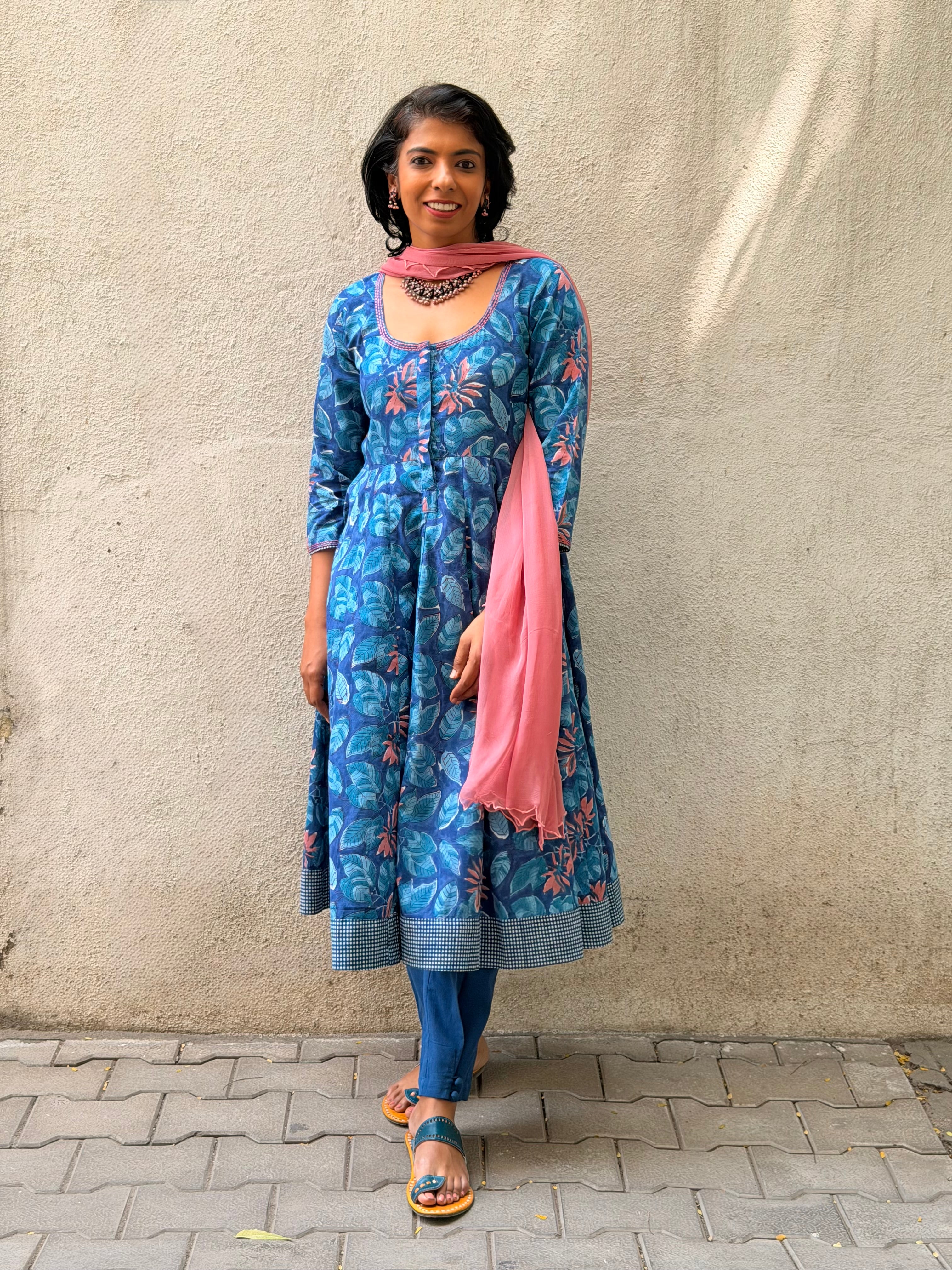 Paired with plain cotton pants, designed to balance the floral kalidar and ensure all-day comfort.