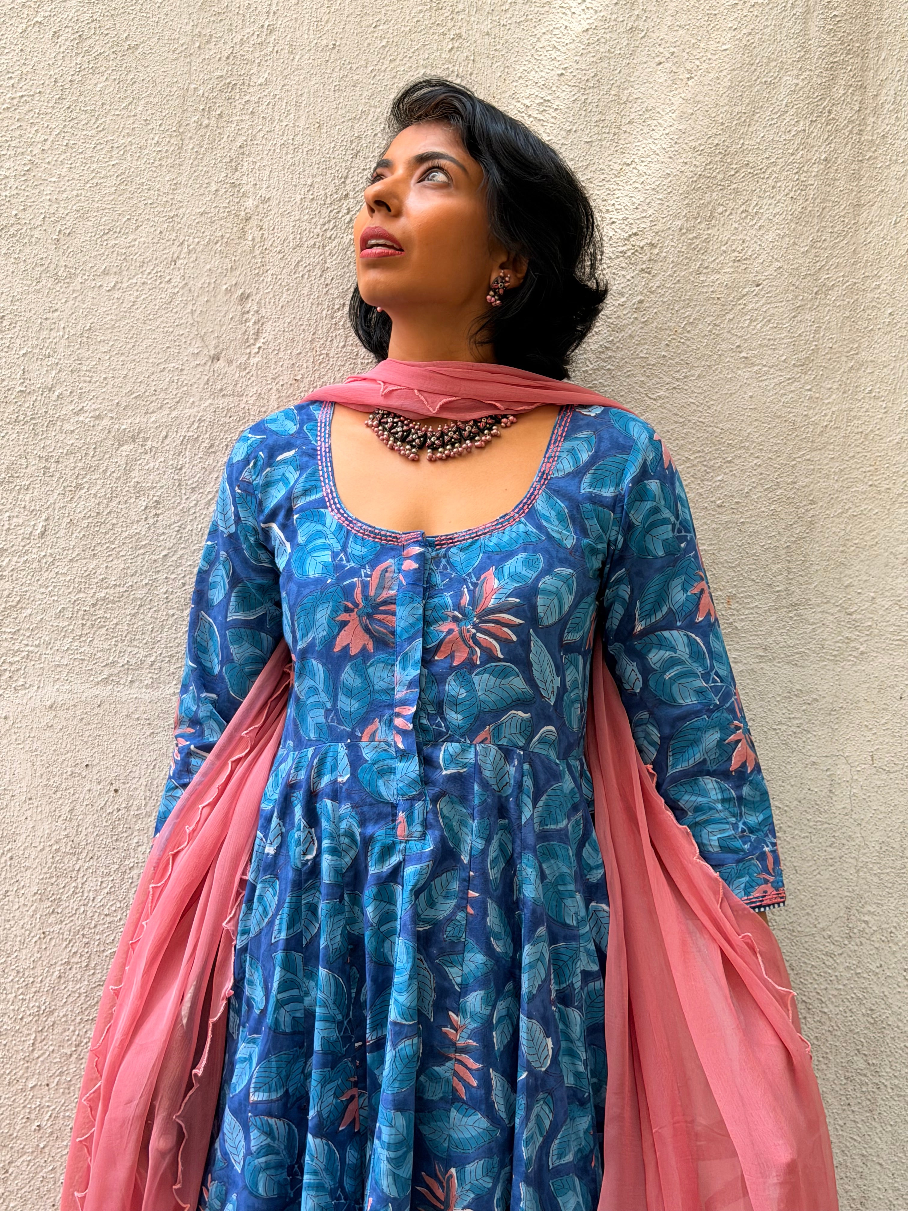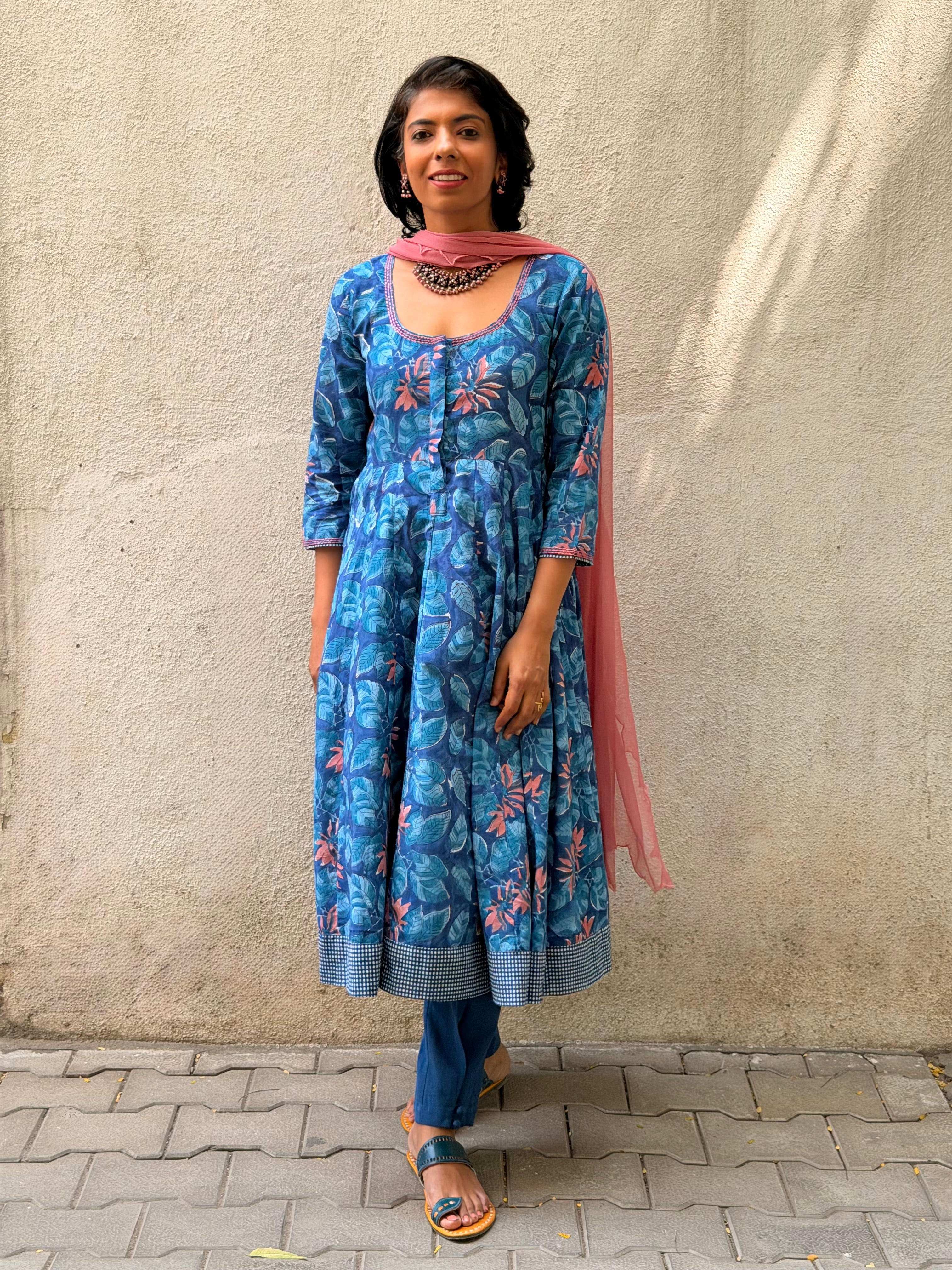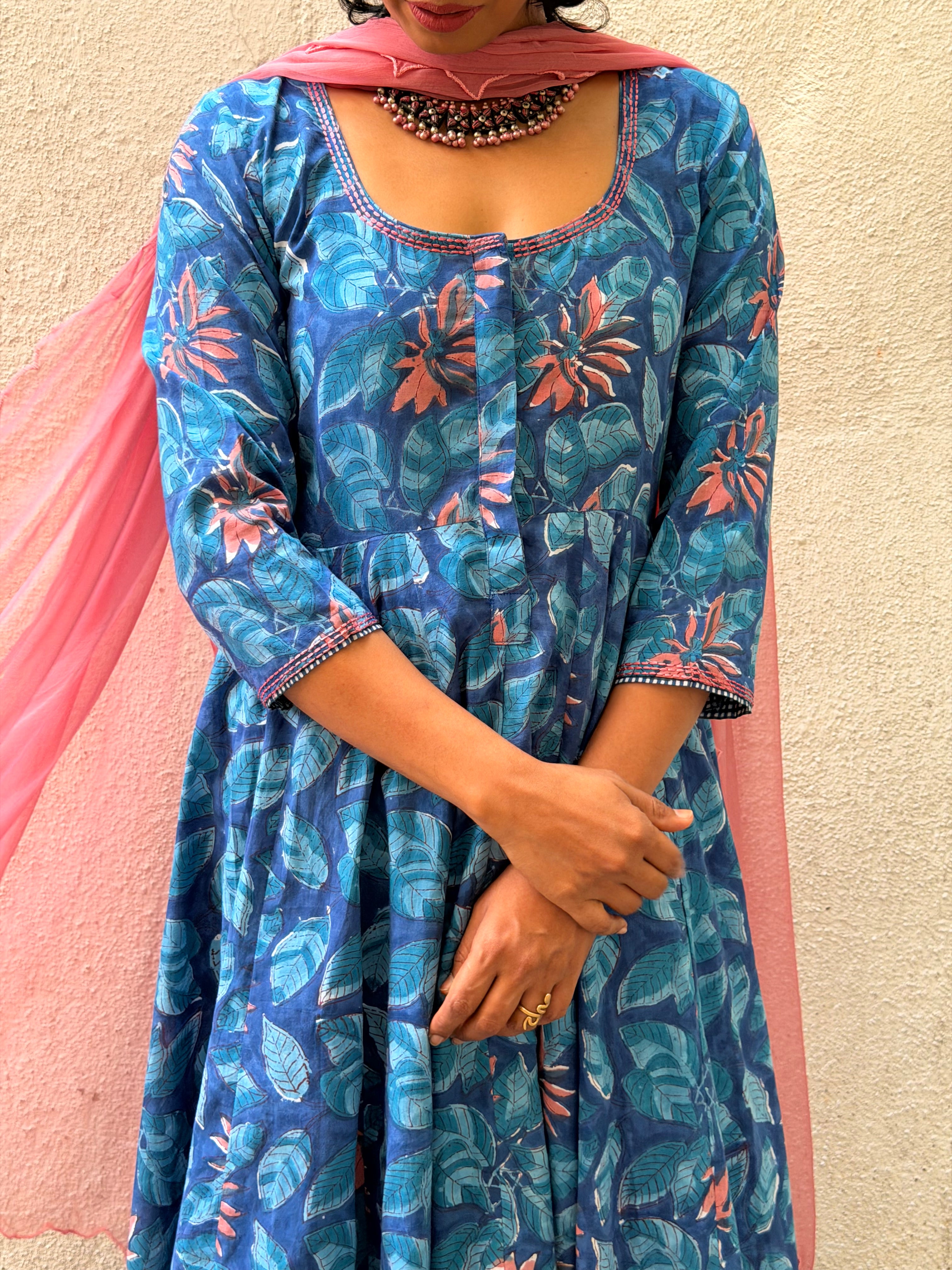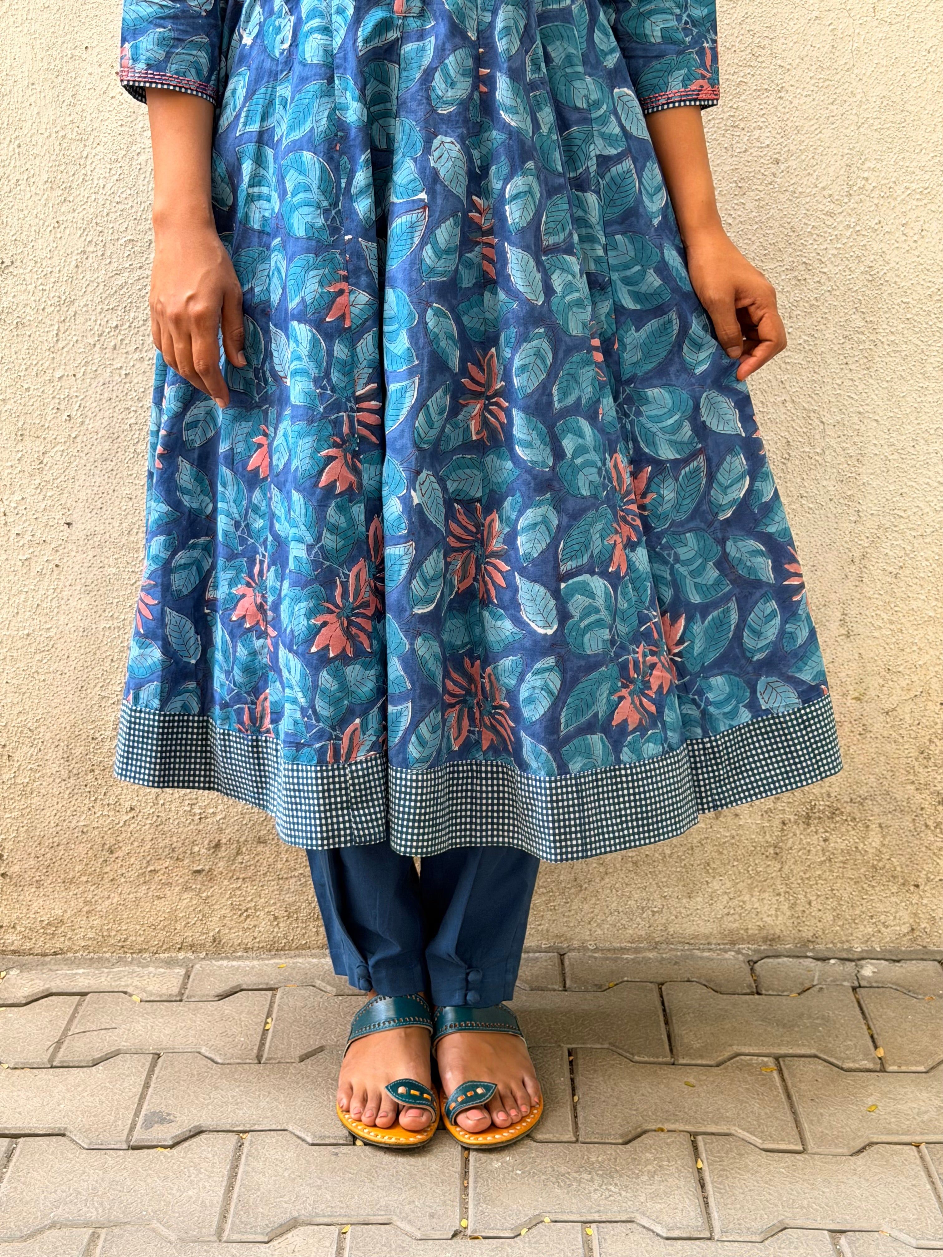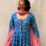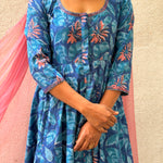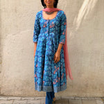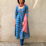 Blue Floral Cotton Kalidar Set