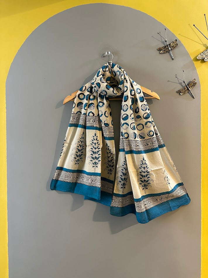 Hand block printed pure cotton stole made from soft, breathable fabric