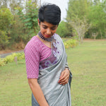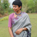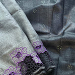 Grey tussar cutwork saree