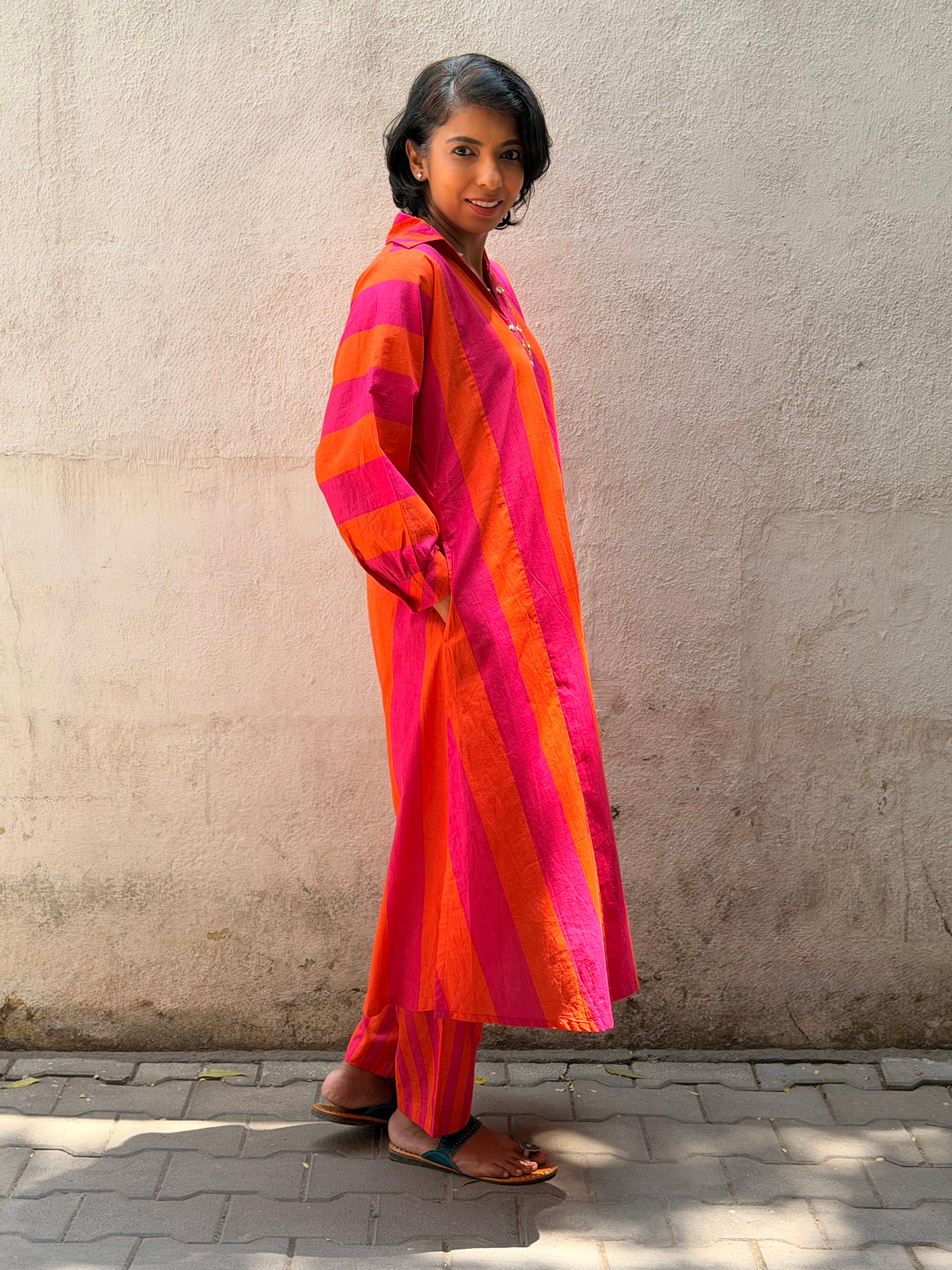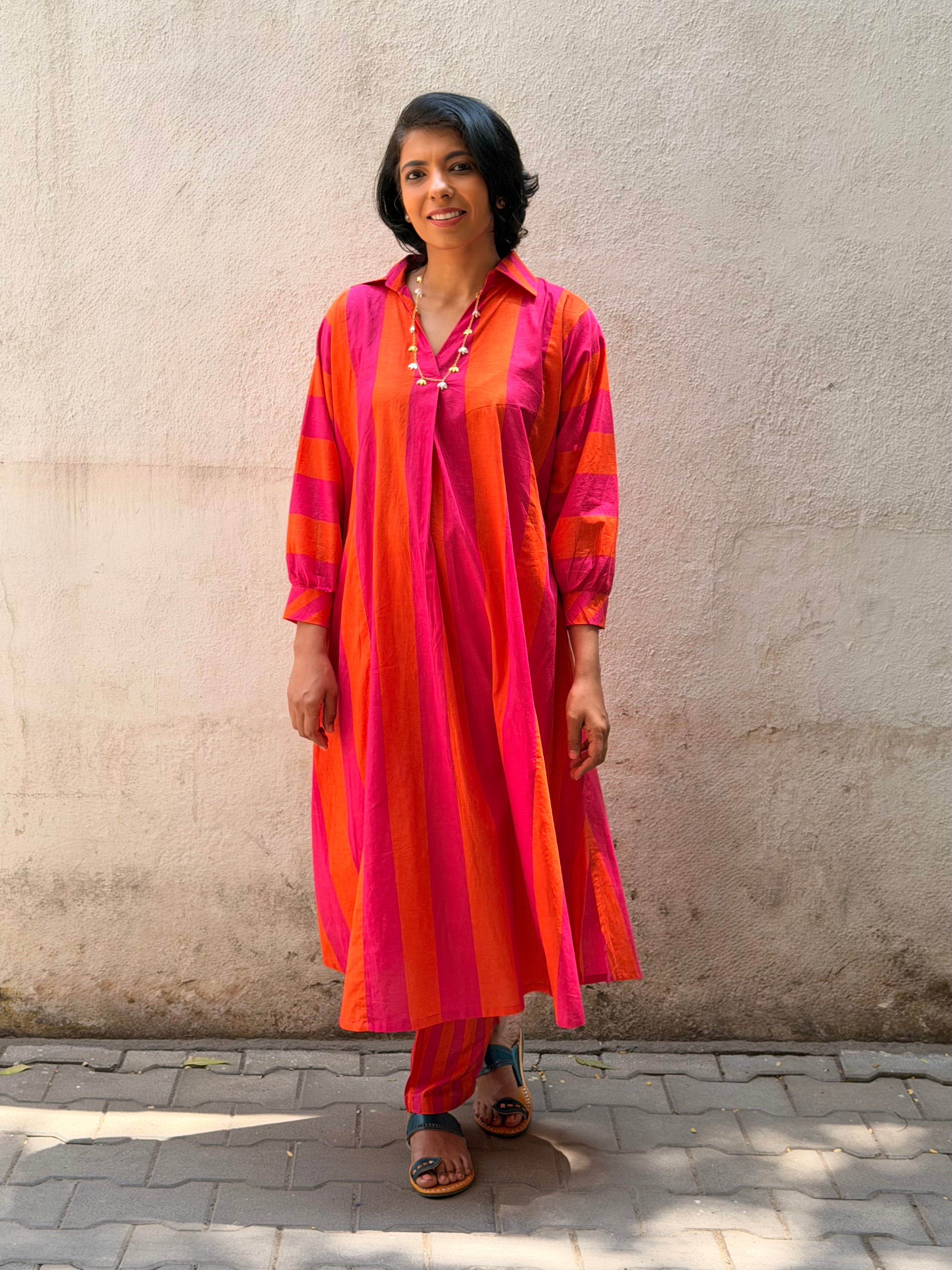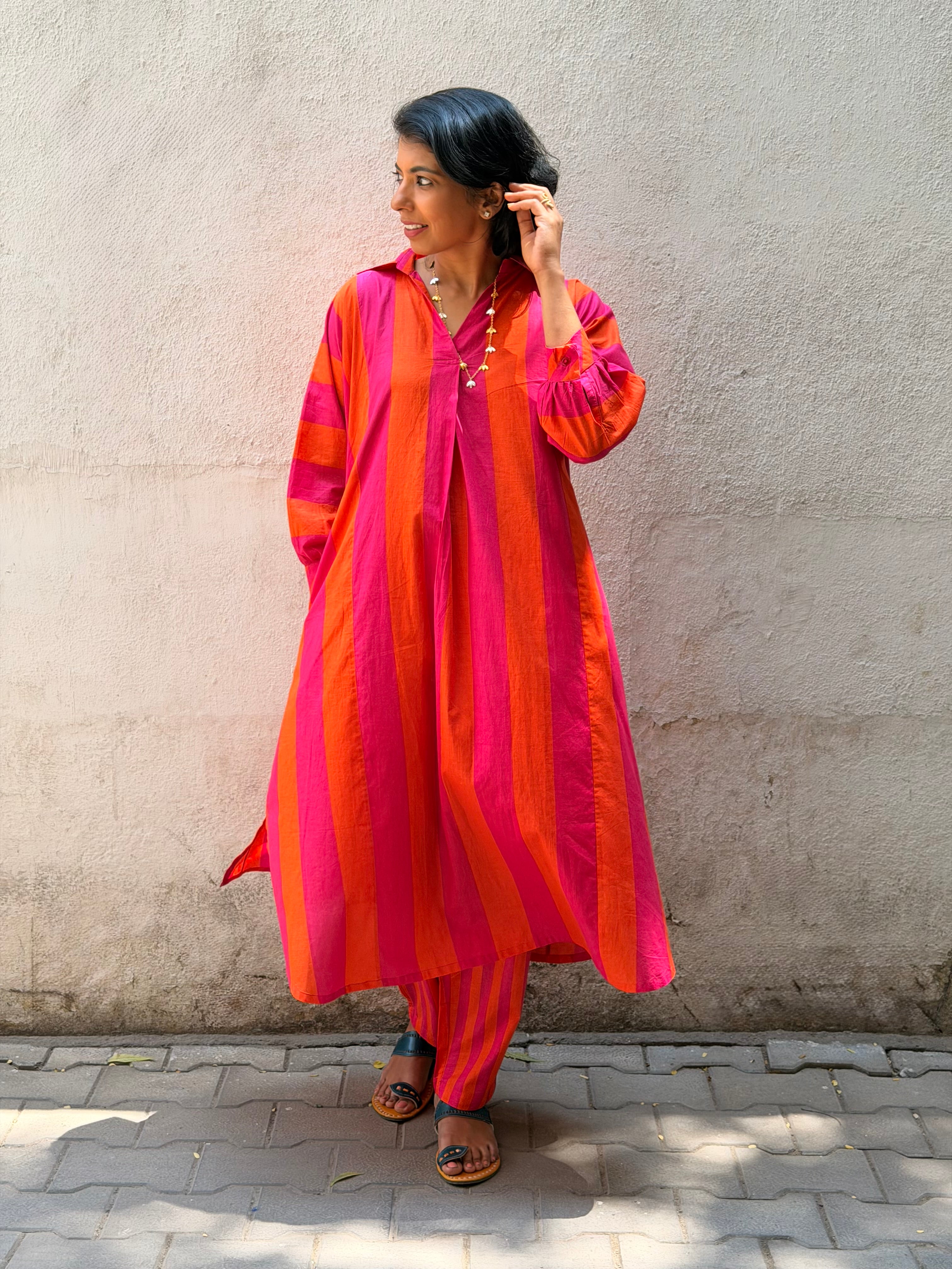 - Two-piece coord set with a softly flared kurta top, detailed with small side slits for ease and movement.