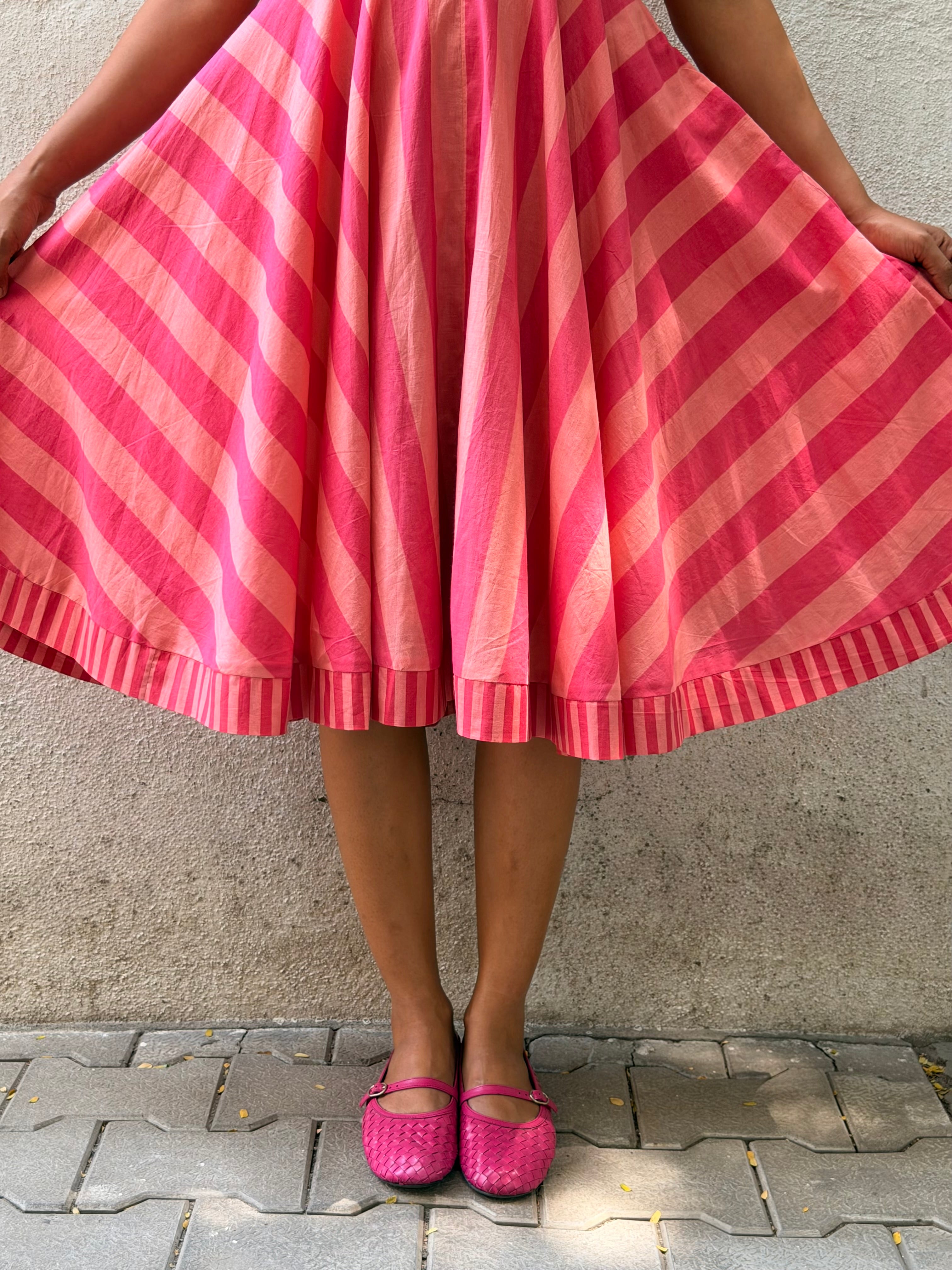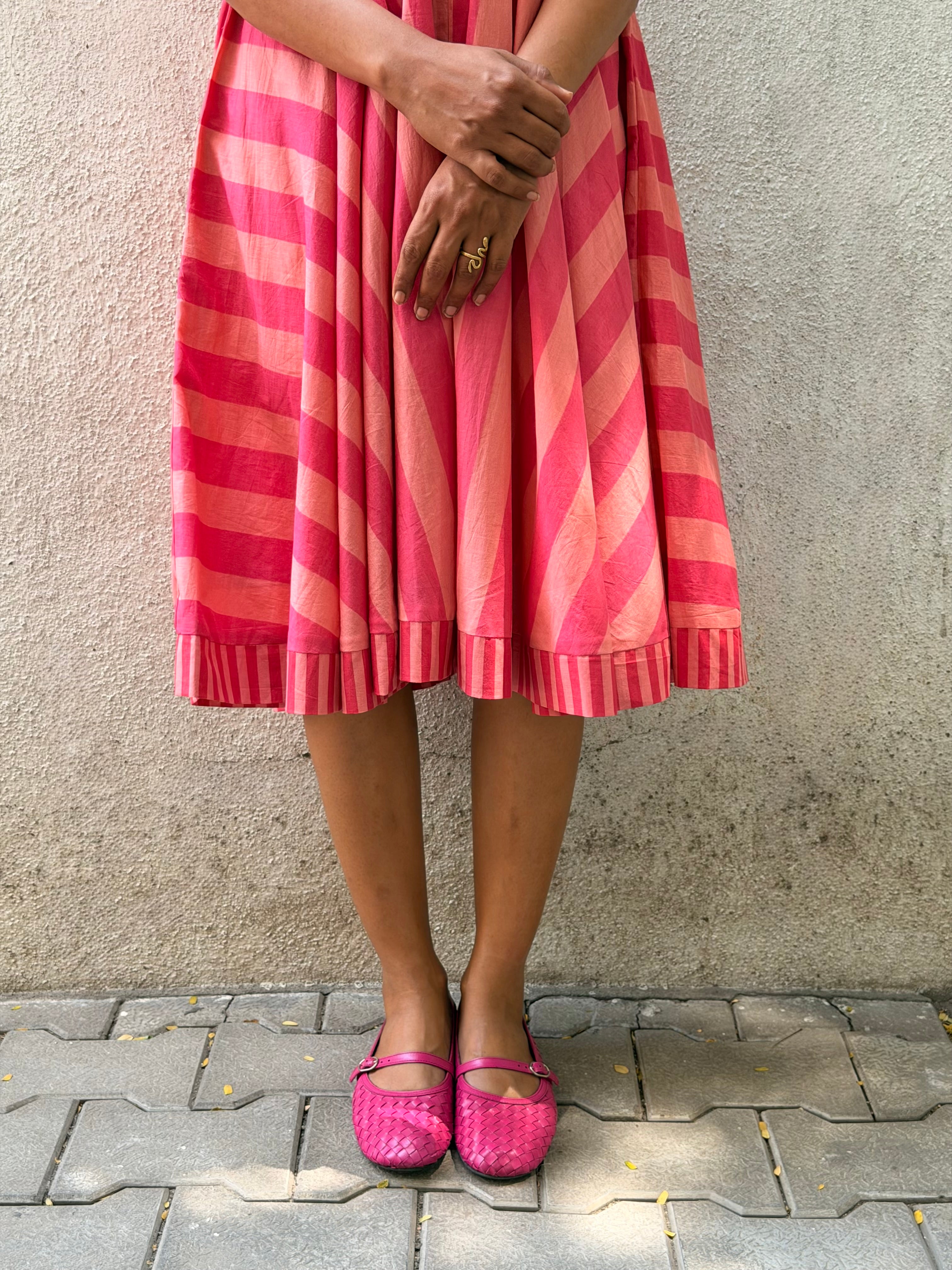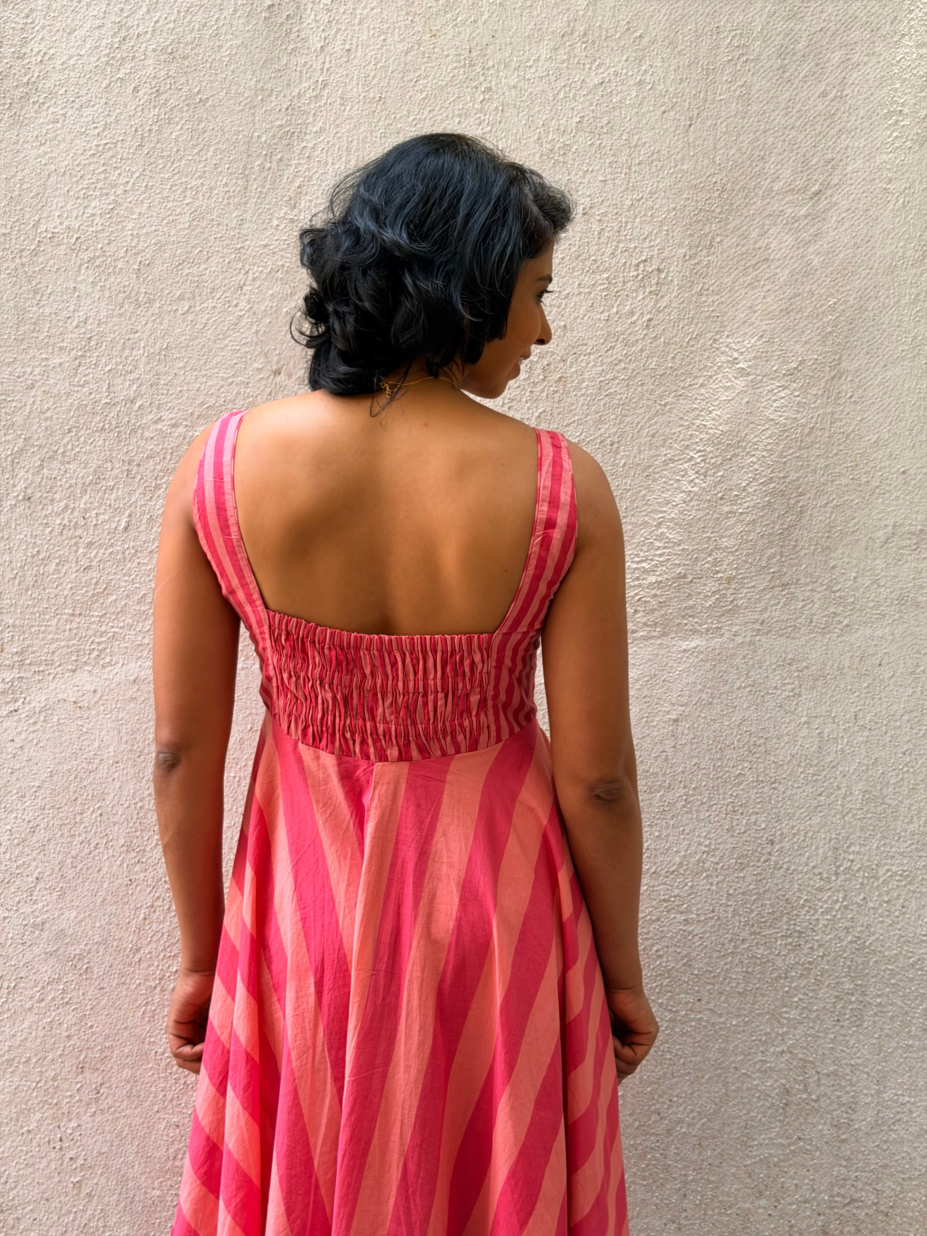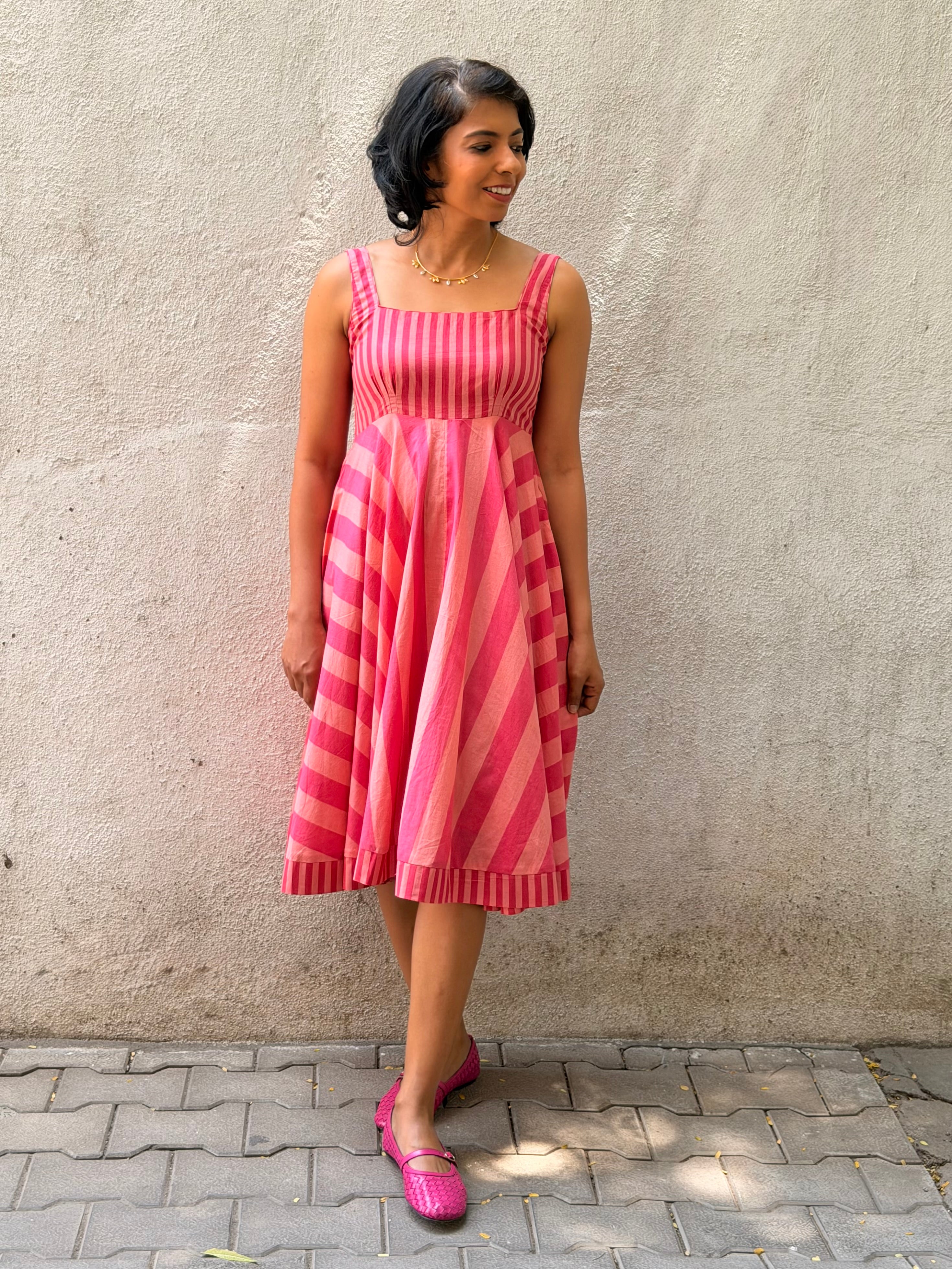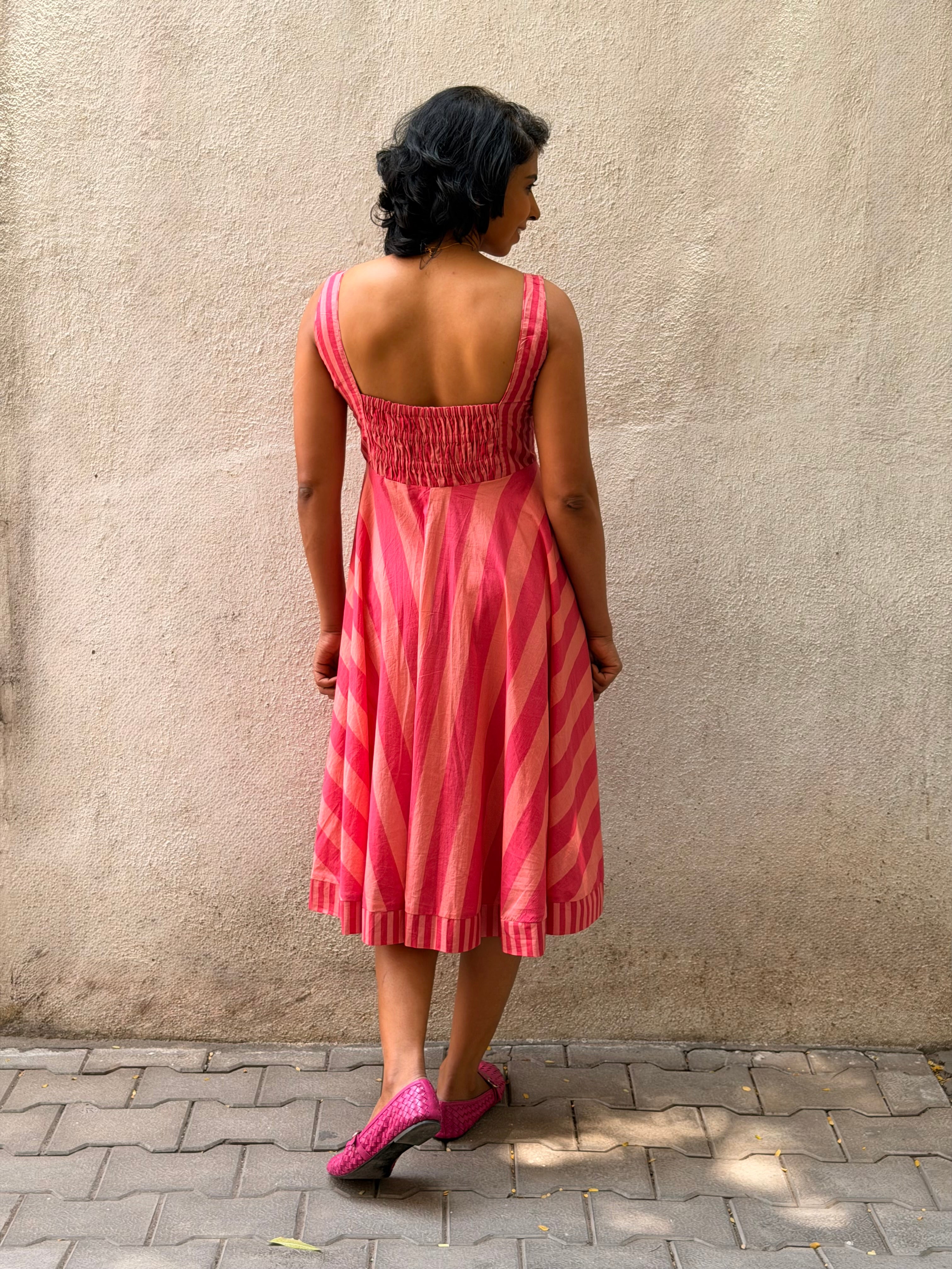 Knee-length dress, fully lined with soft mul for breathable comfort.