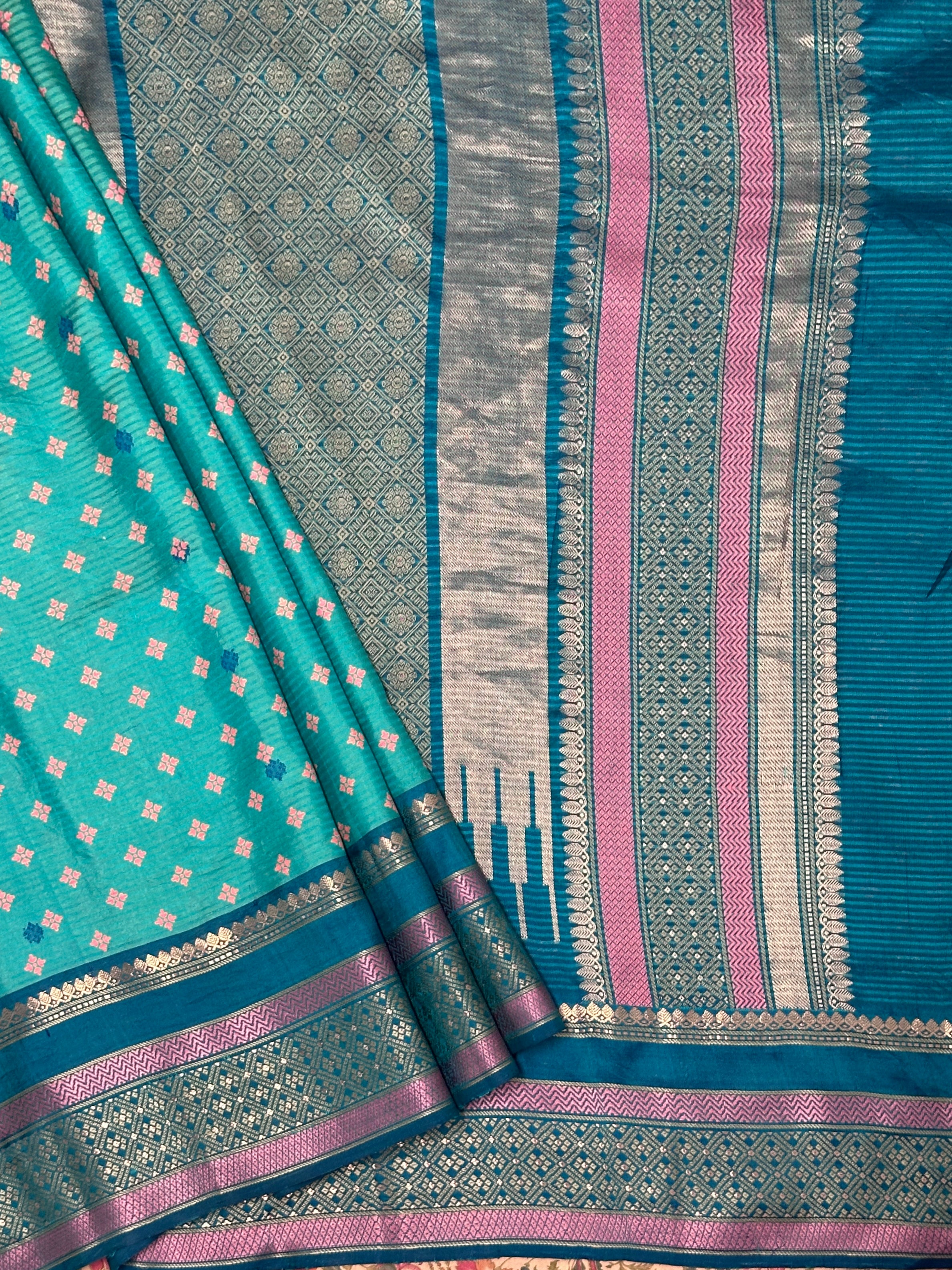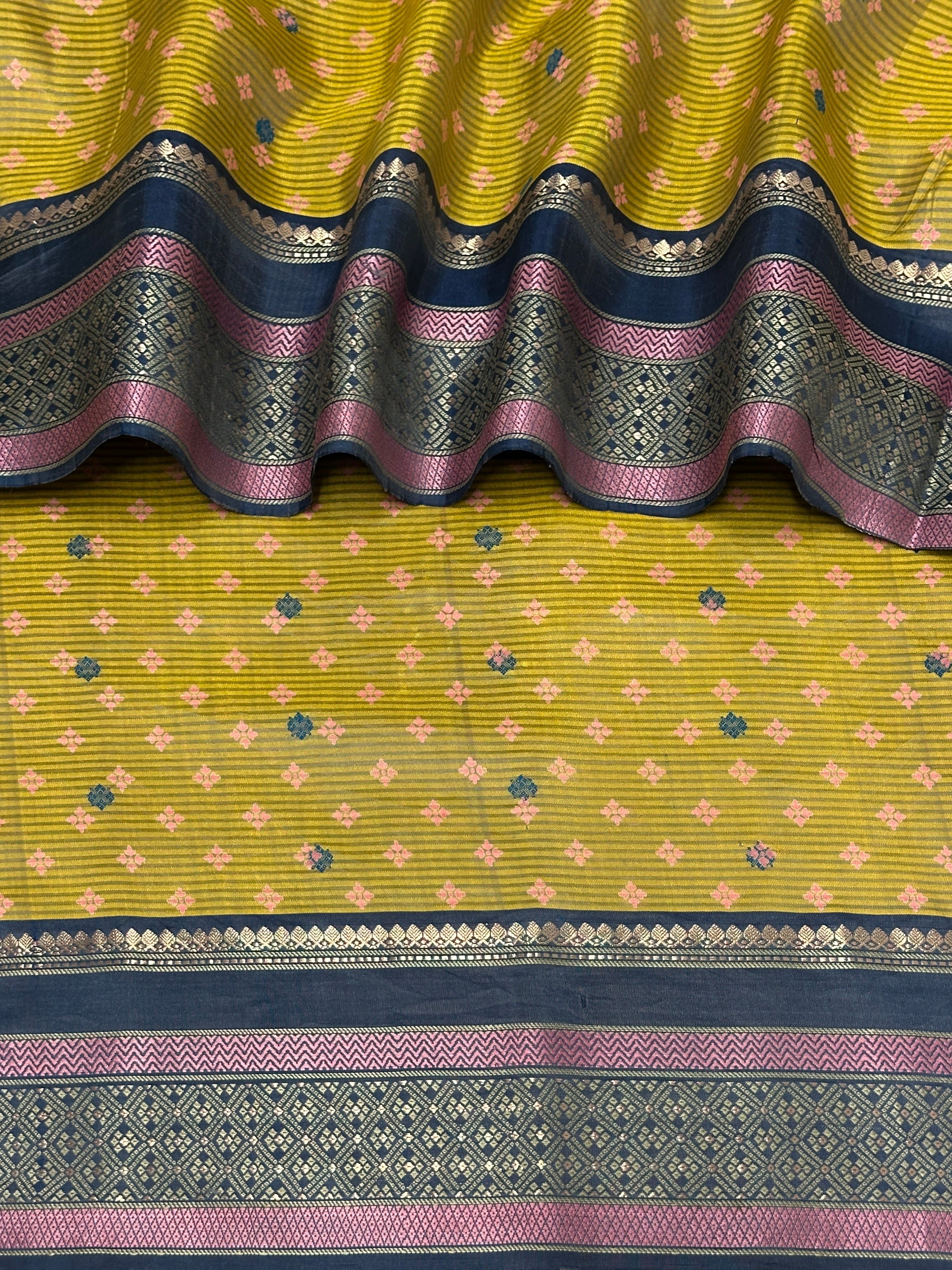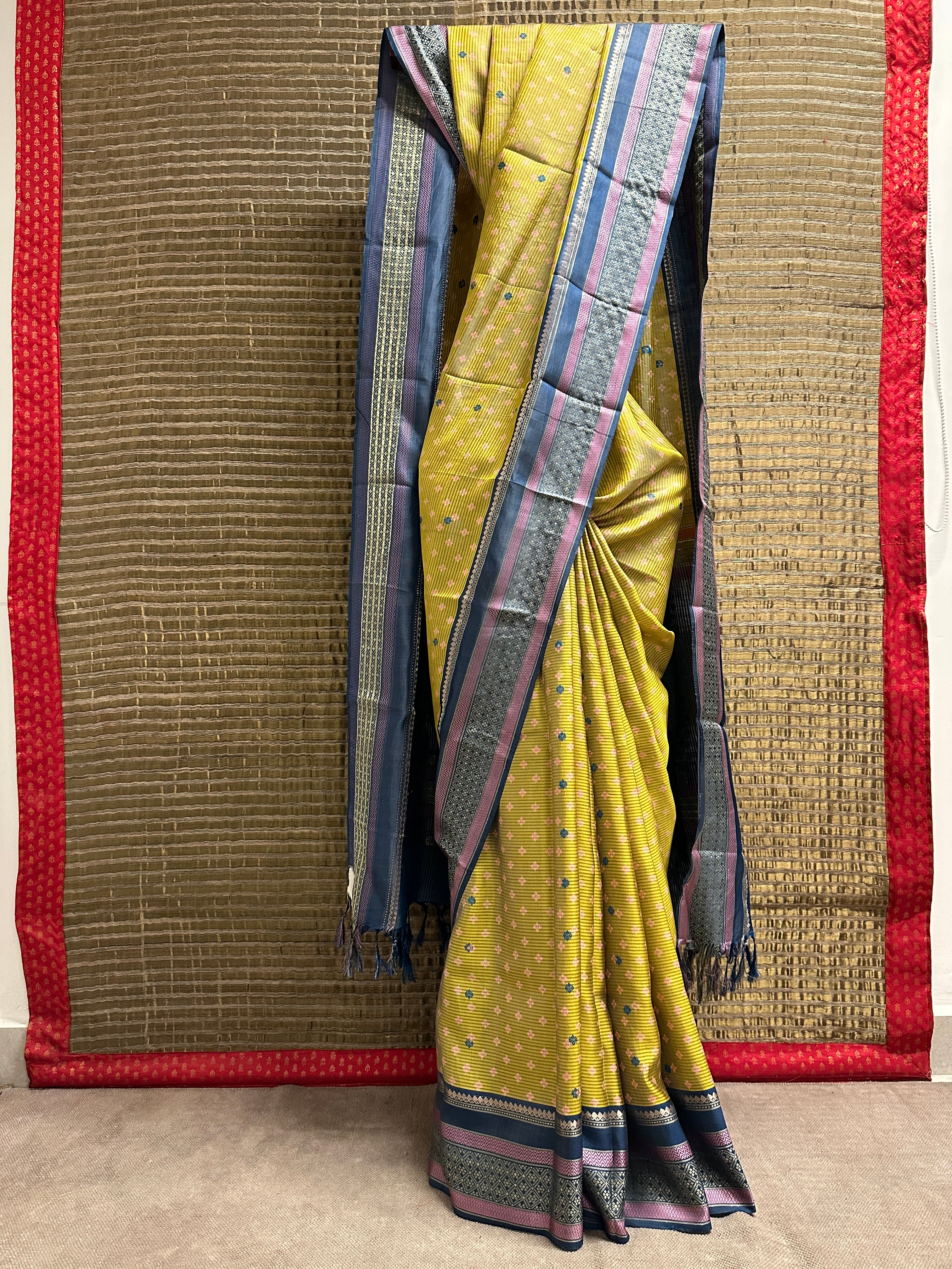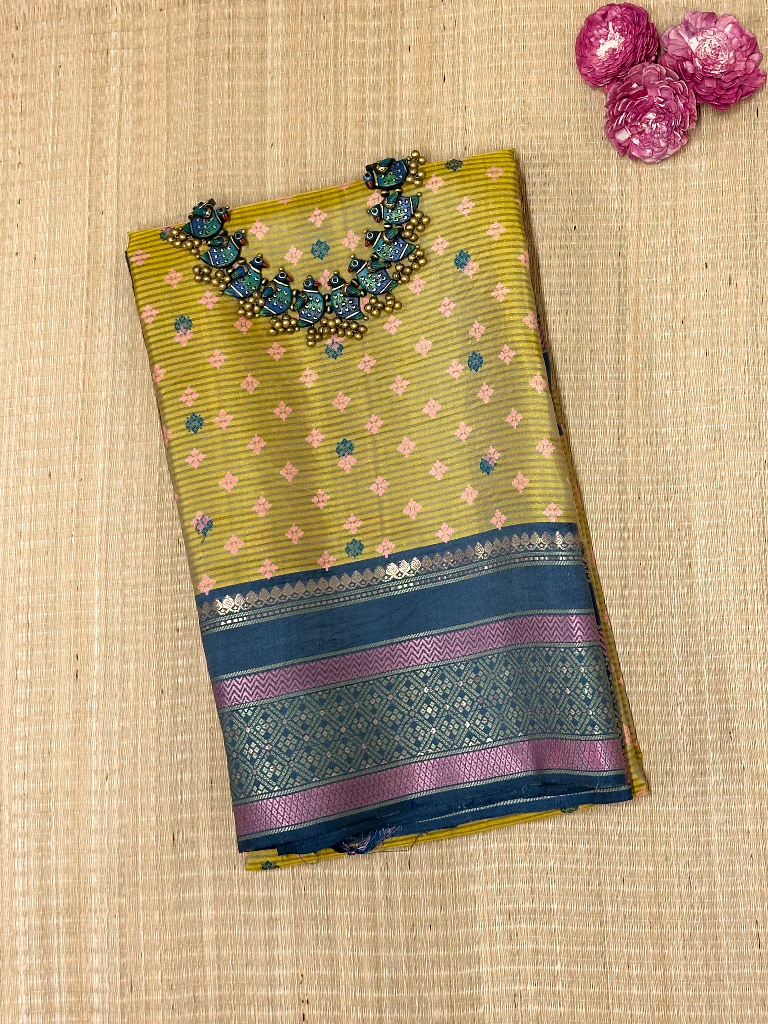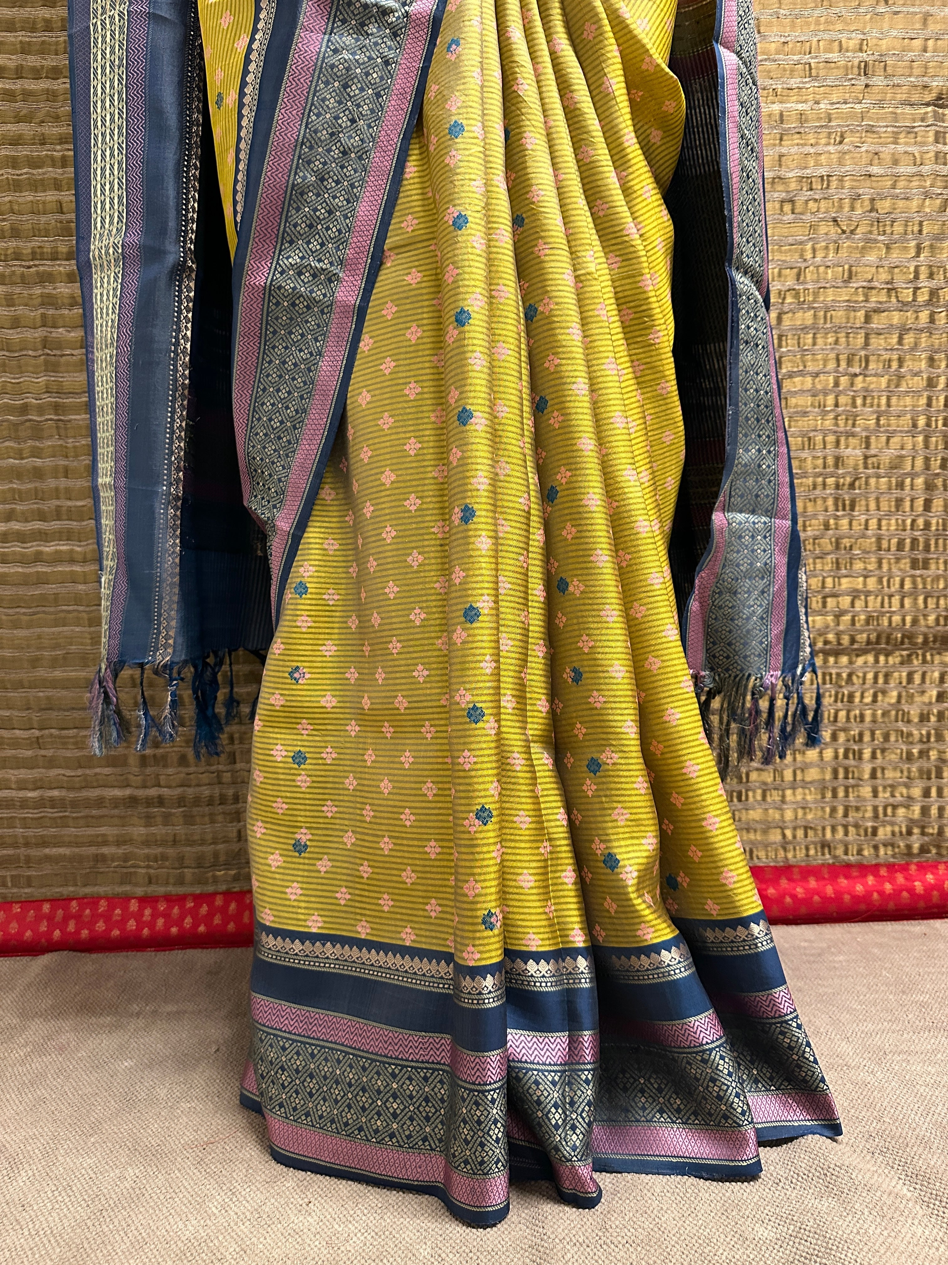 - Saree itself has unique horizontal stripes on the body and intricately woven border.