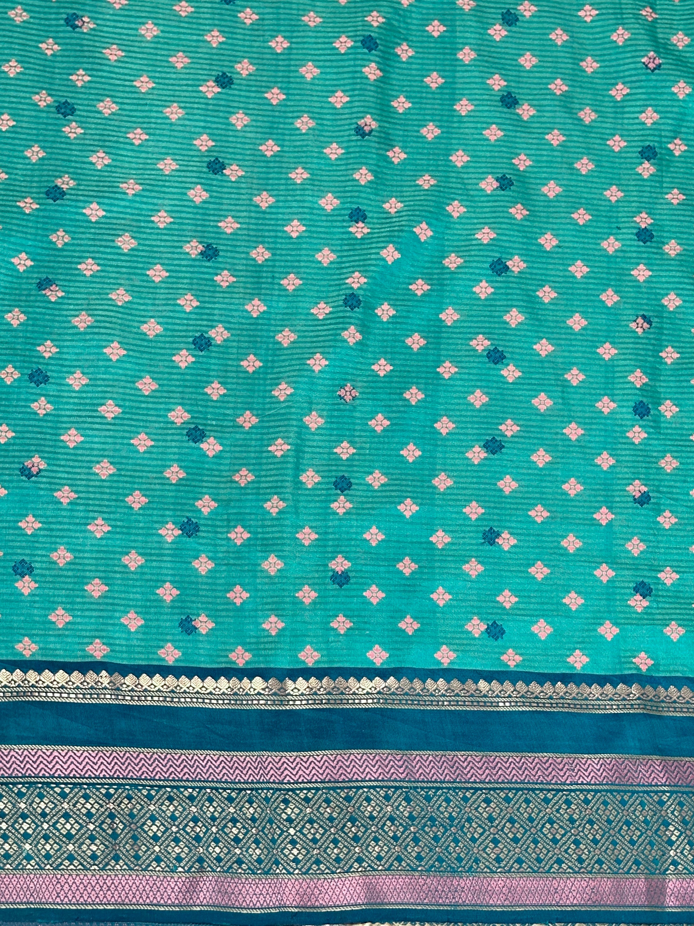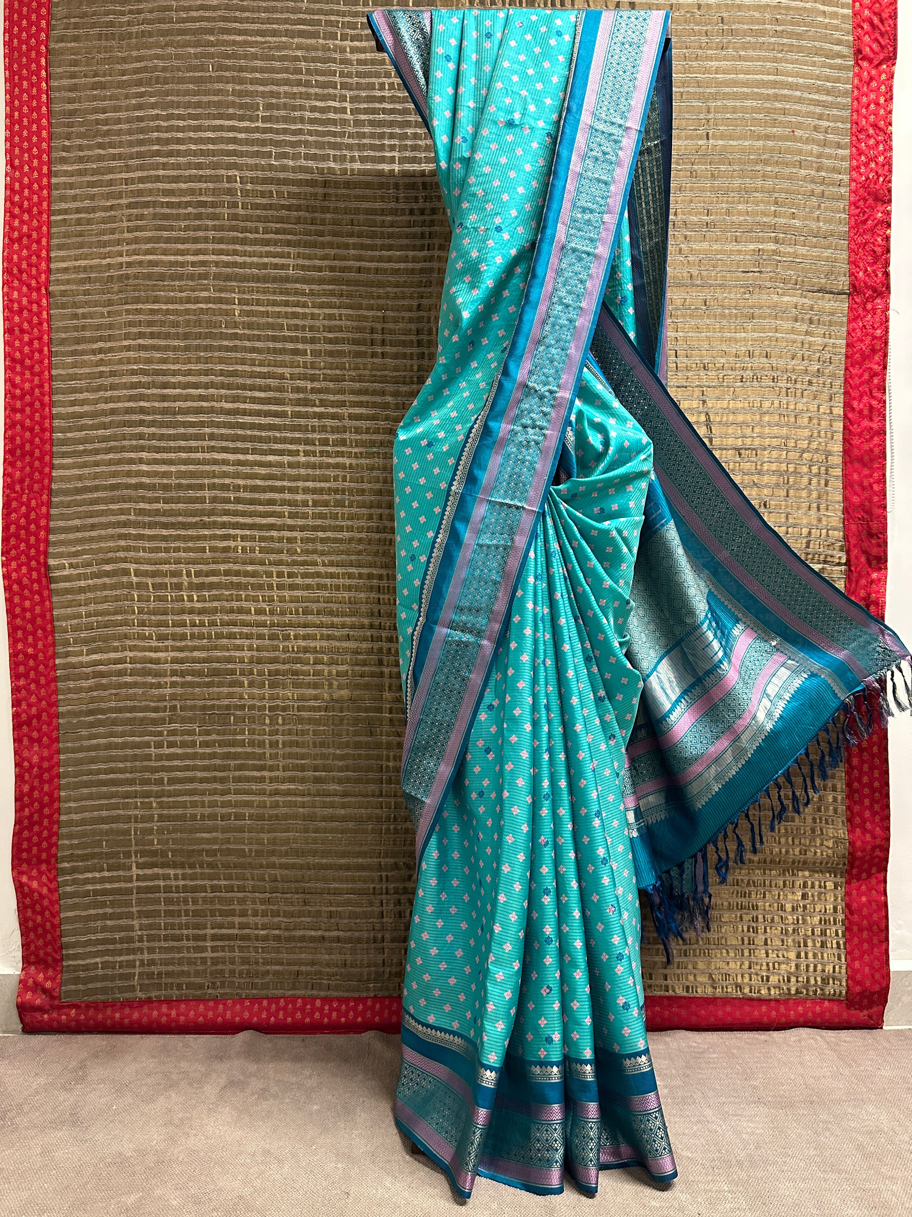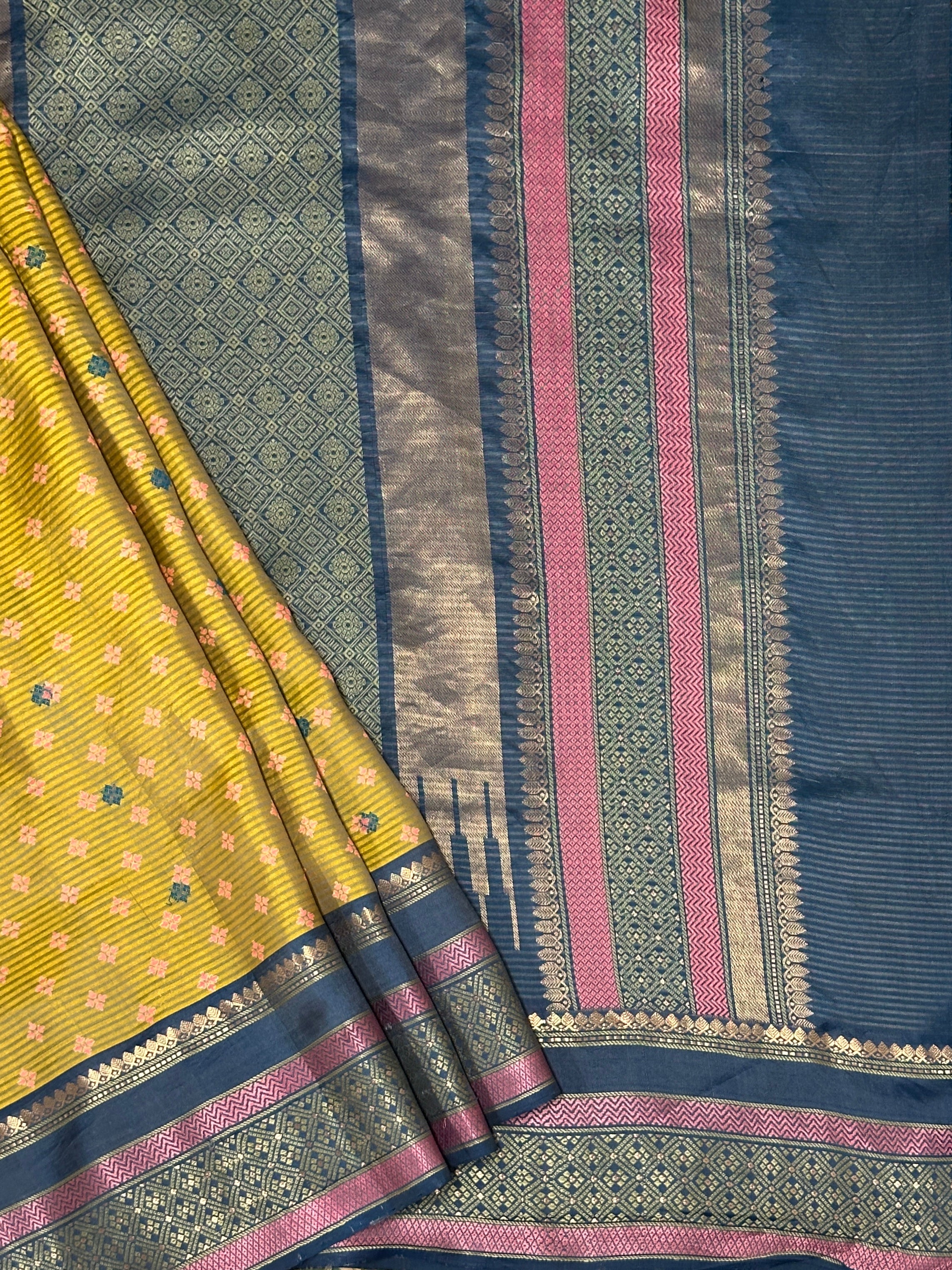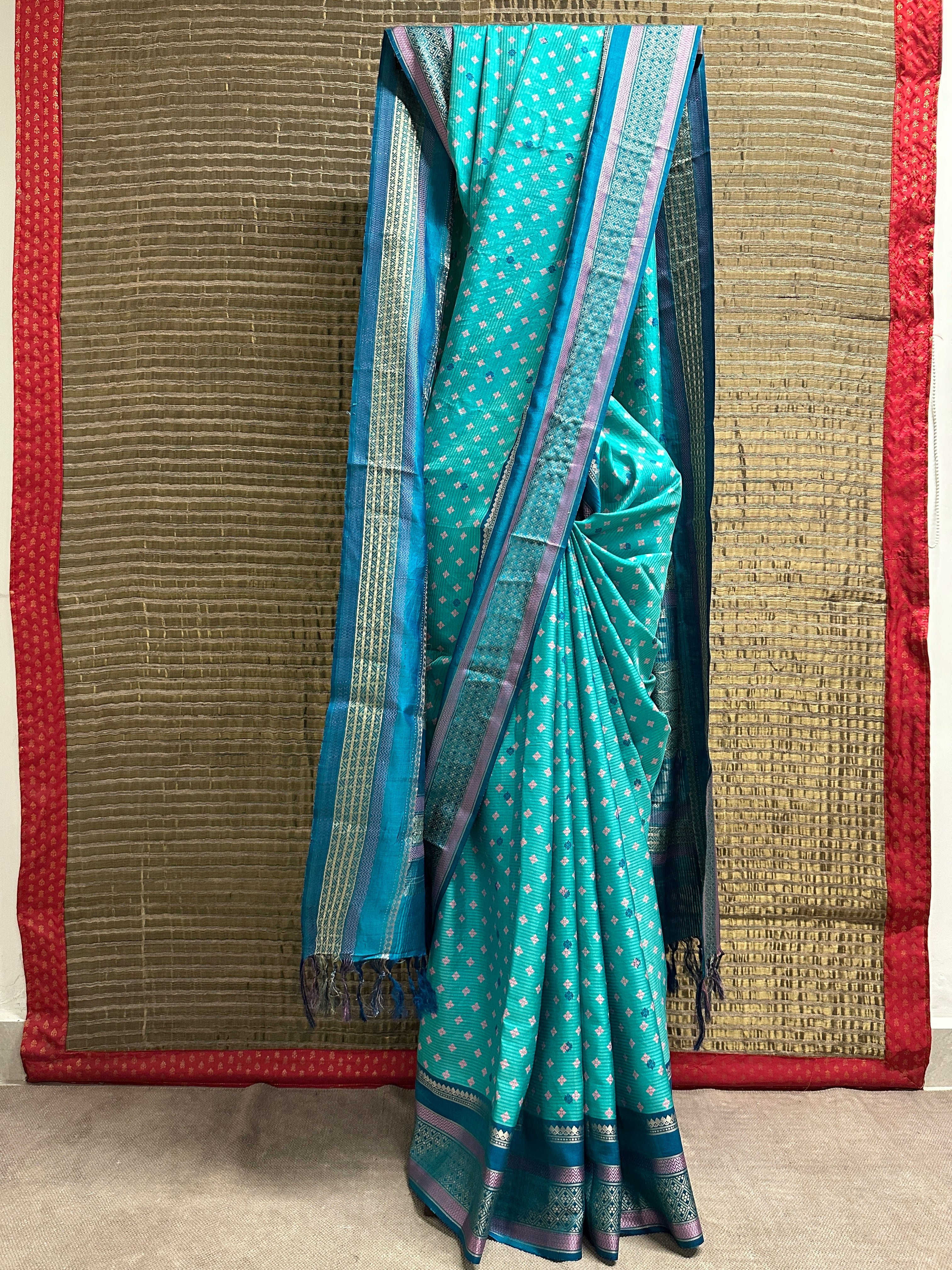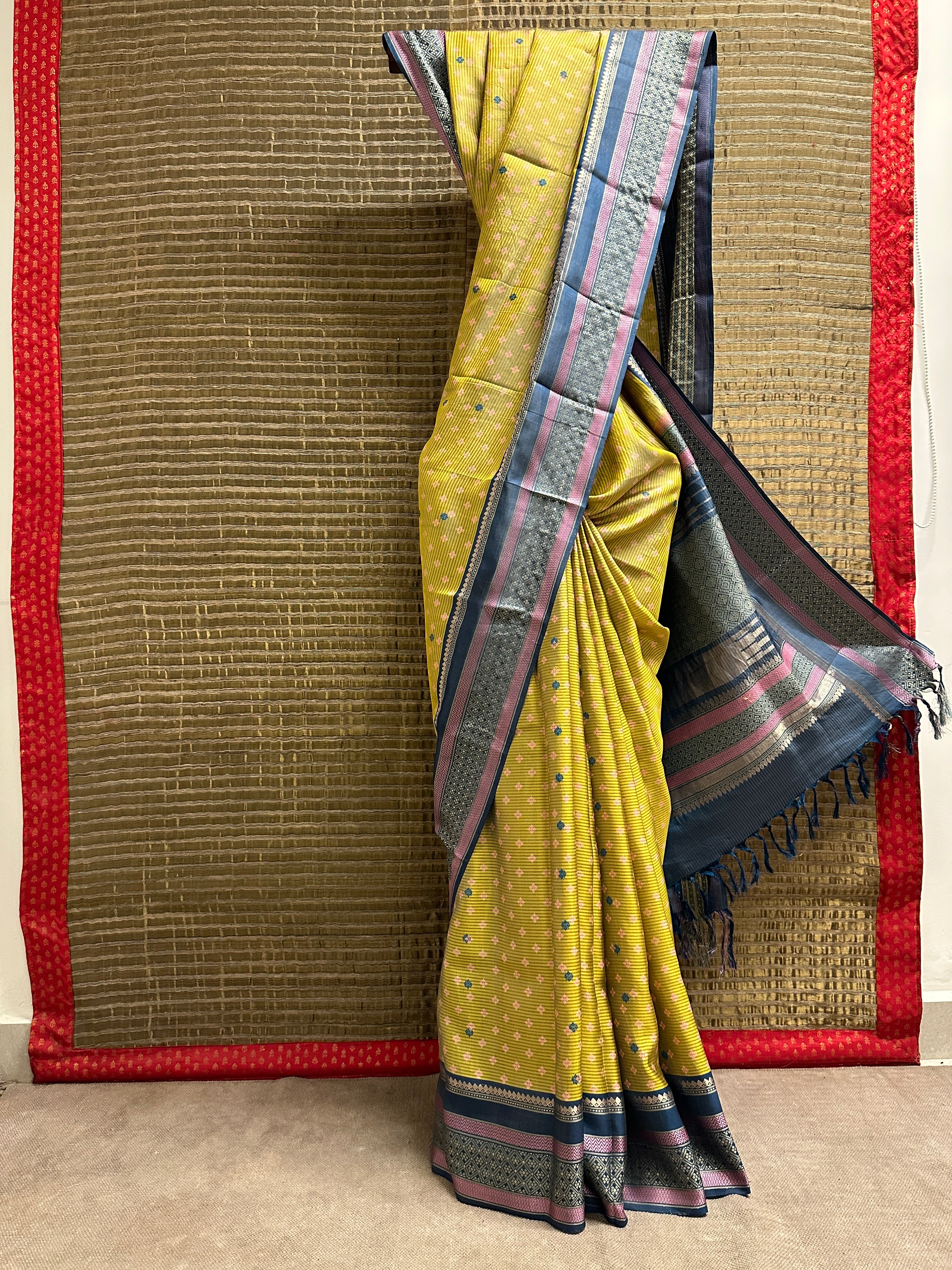 - Saree itself has unique horizontal stripes on the body and intricately woven border.