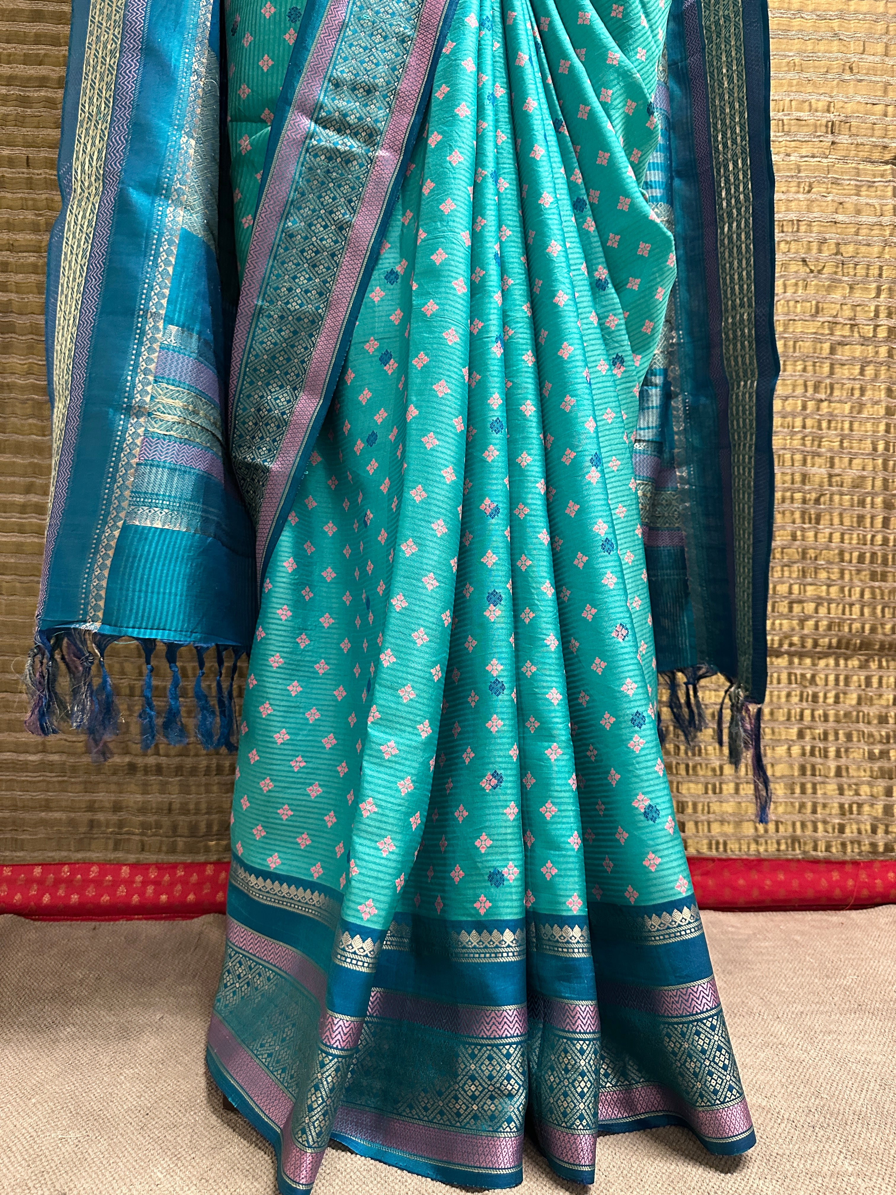 Pallu intricately woven with traditional and elegant detailing in thread.