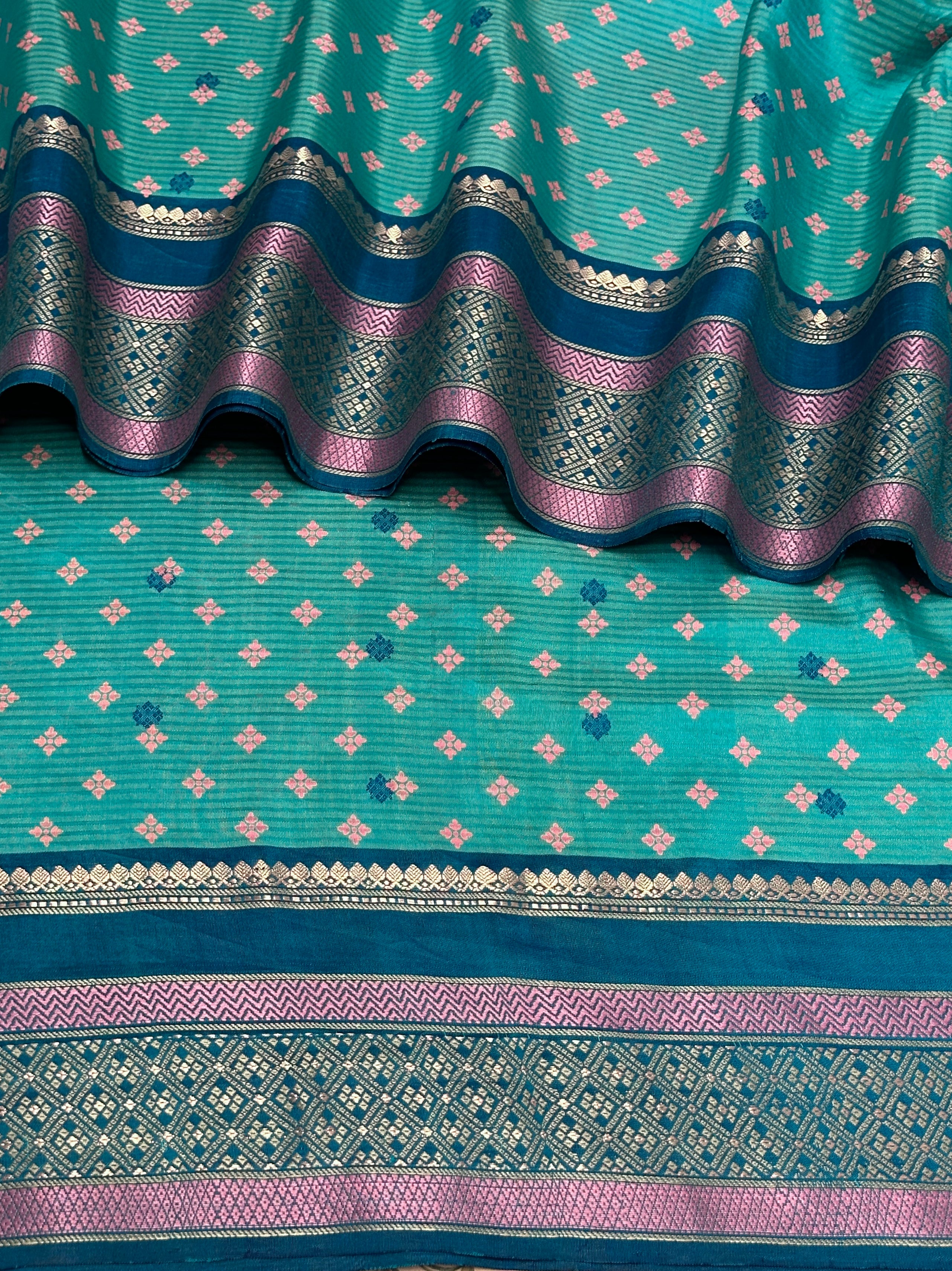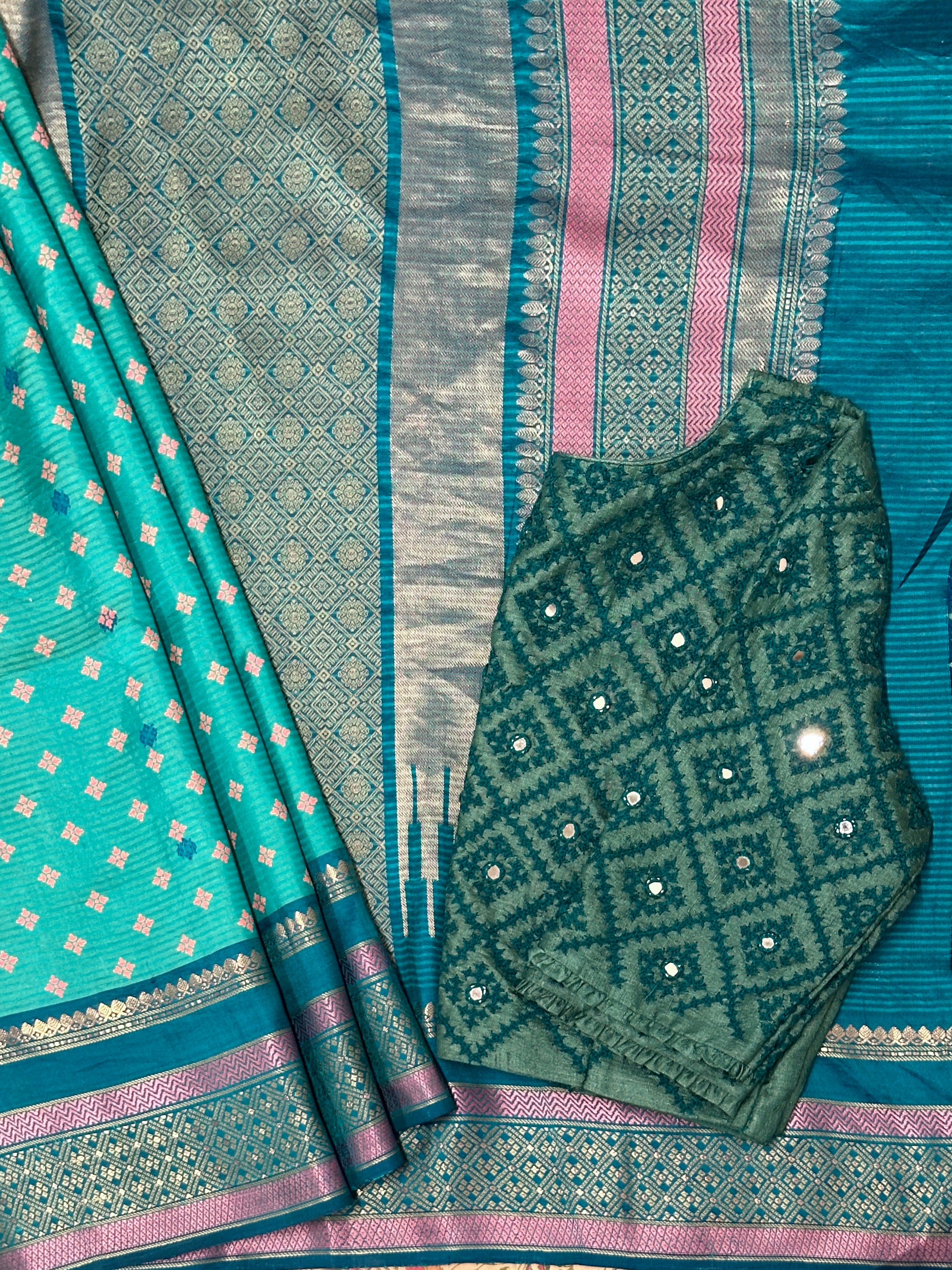 Comes with contrasting silk blouse that complements the saree perfectly.