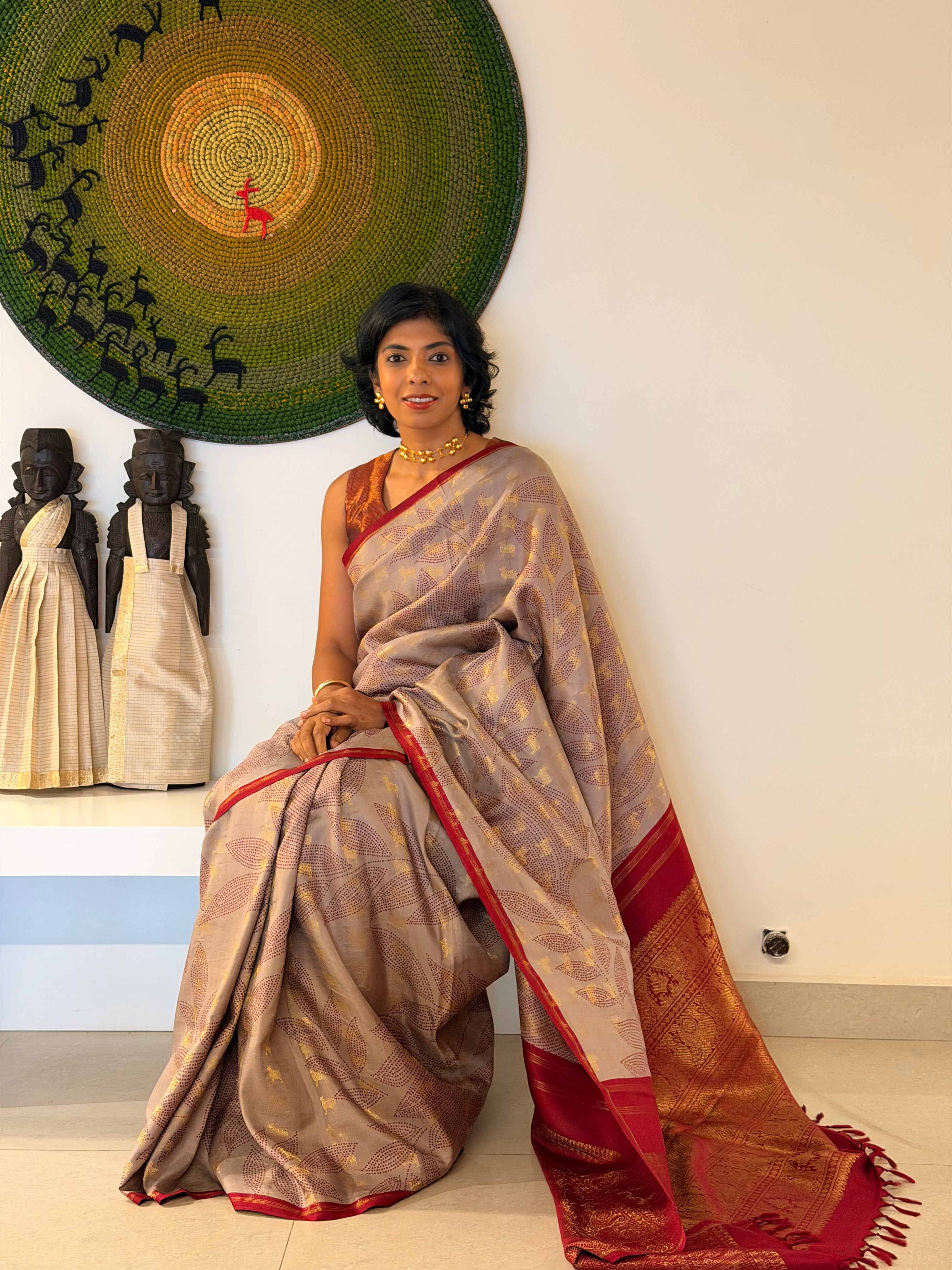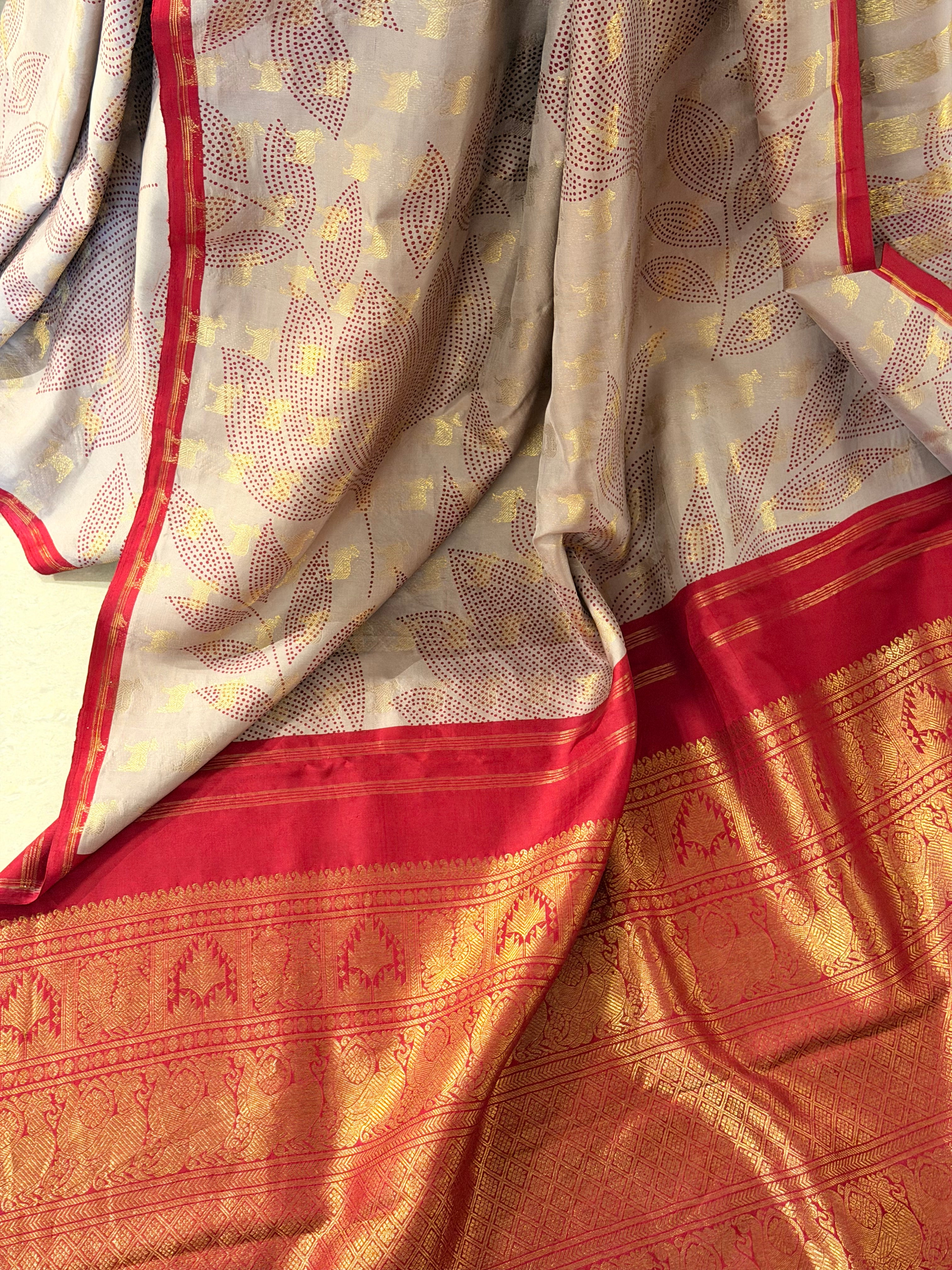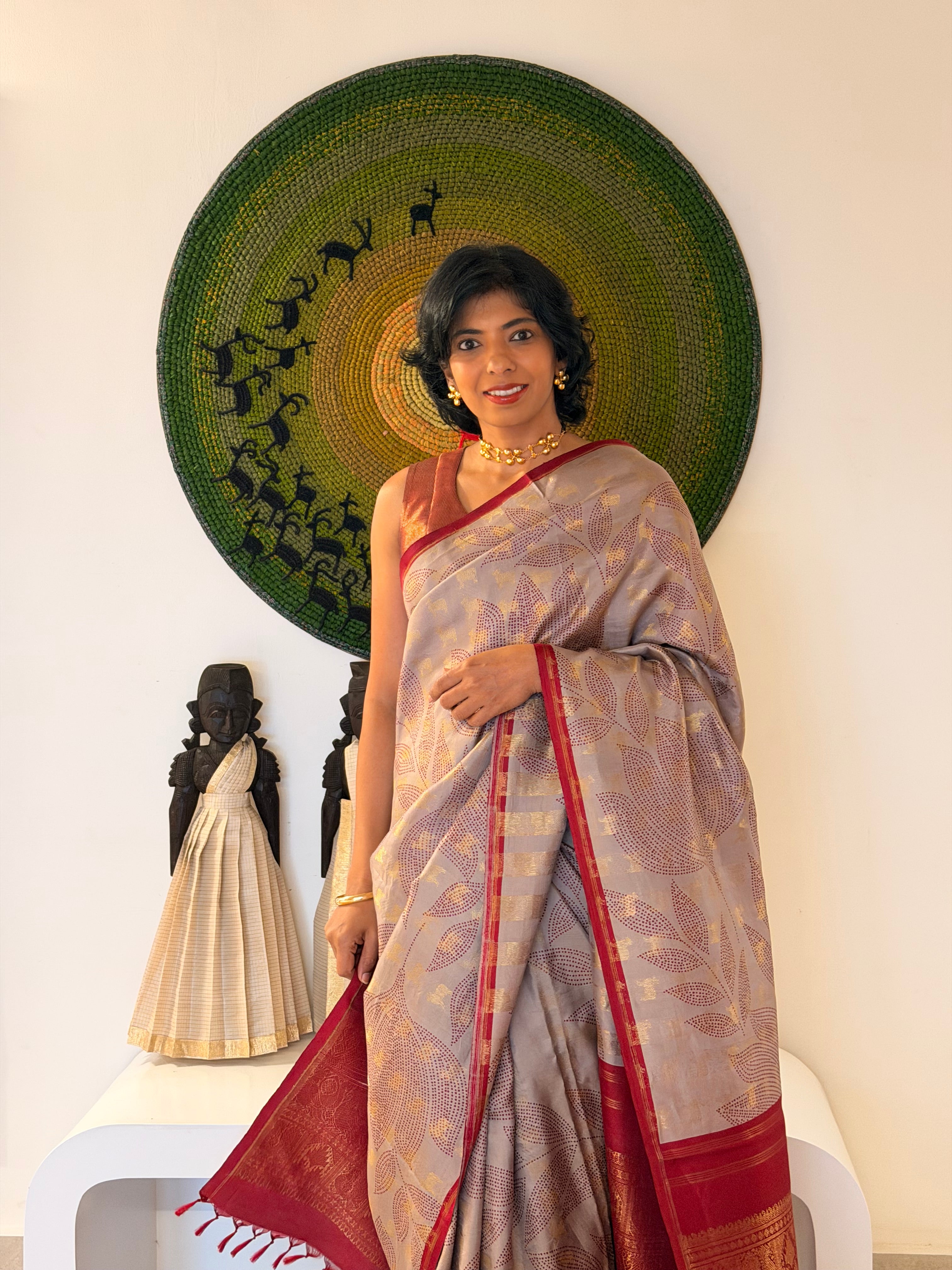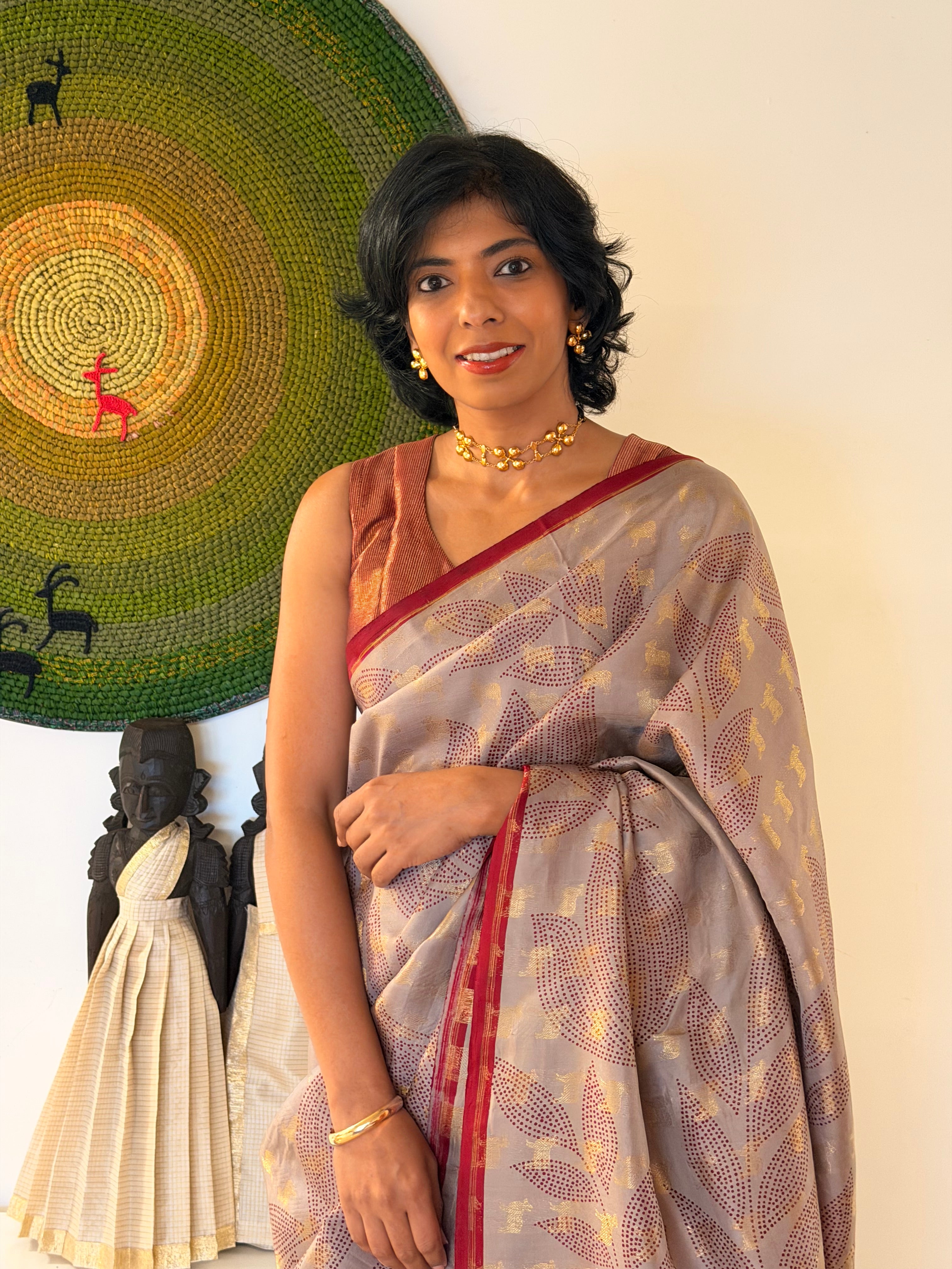 Comes with a plain contrasting silk blouse that complements the saree perfectly.