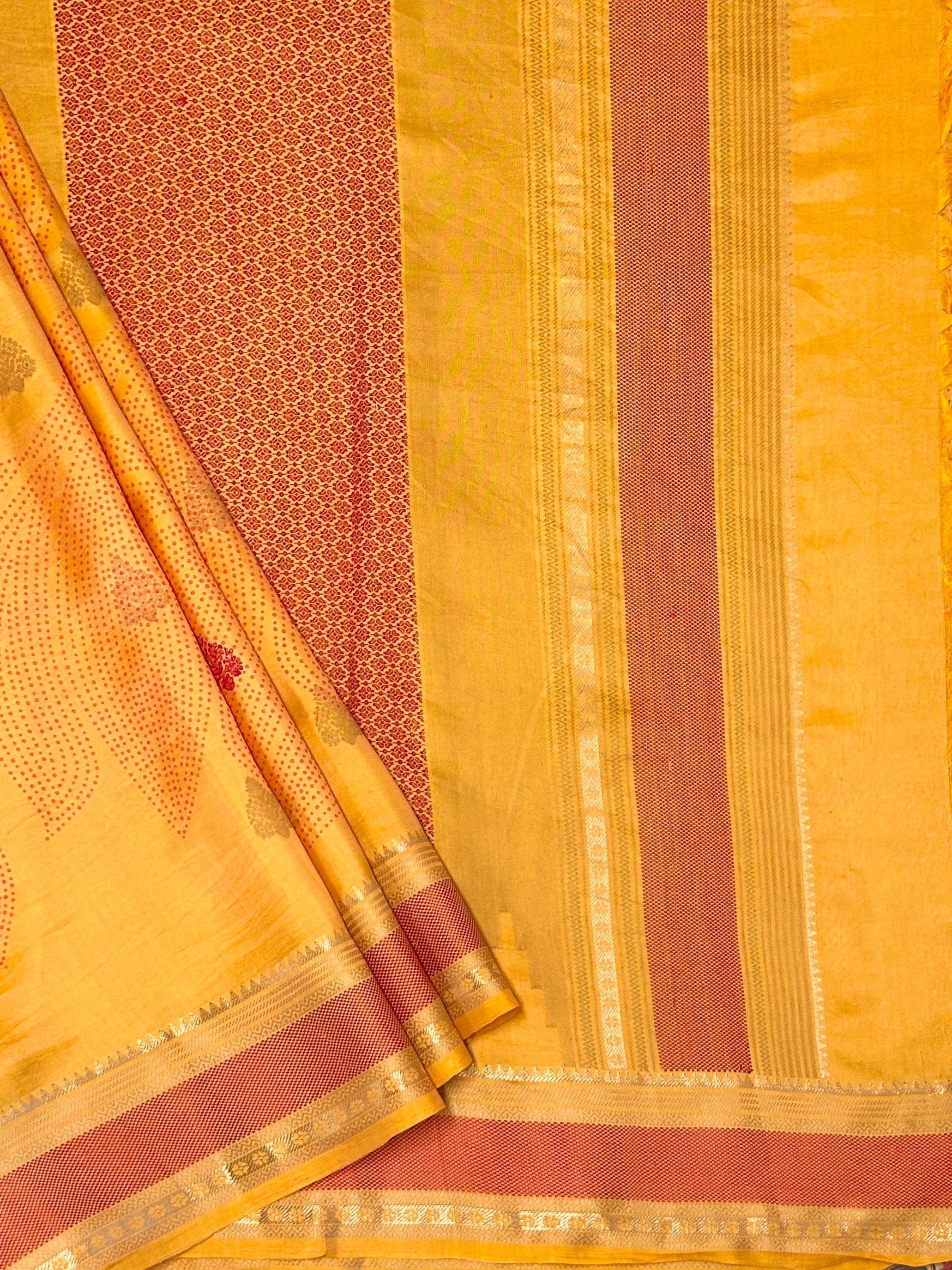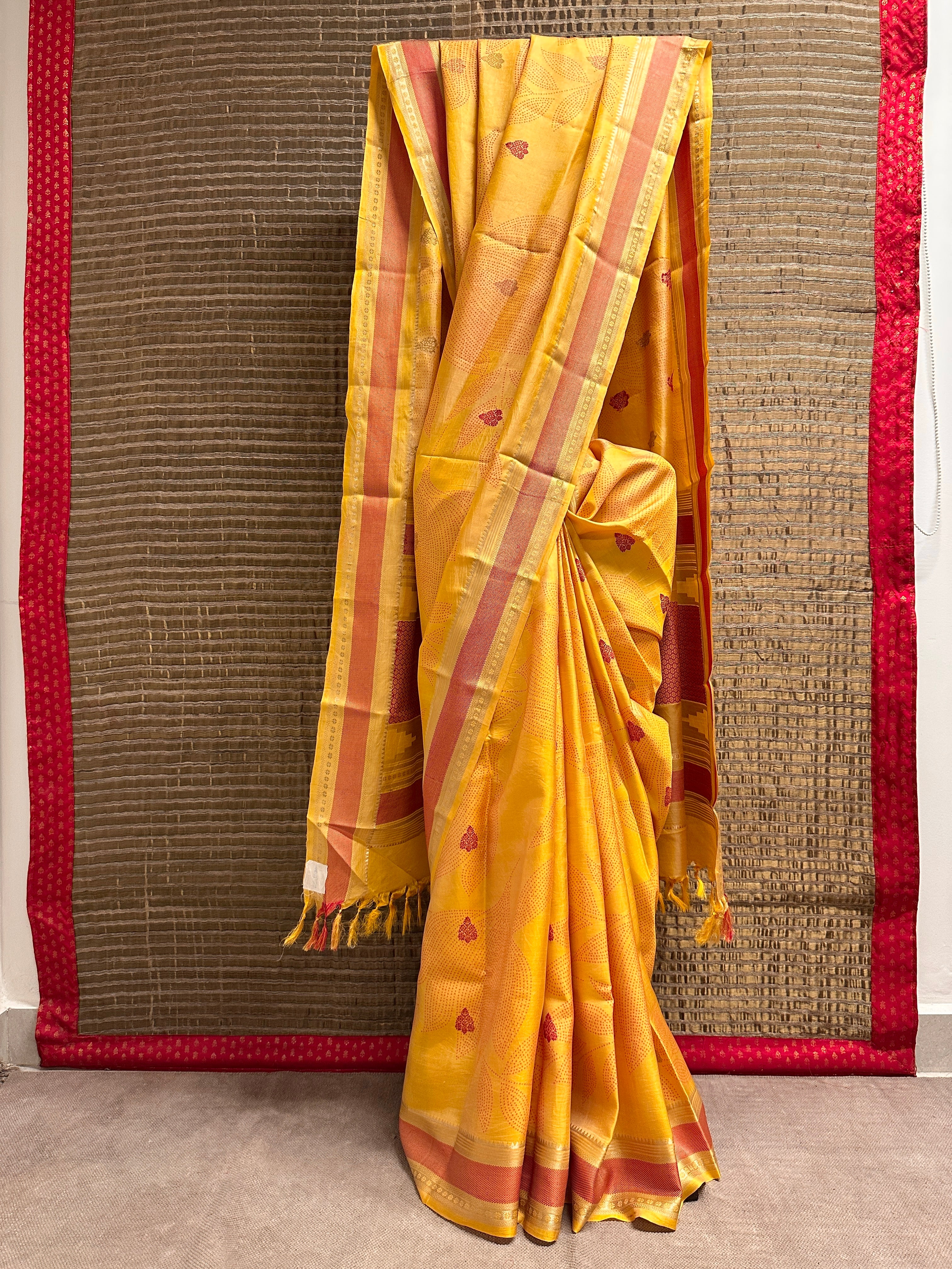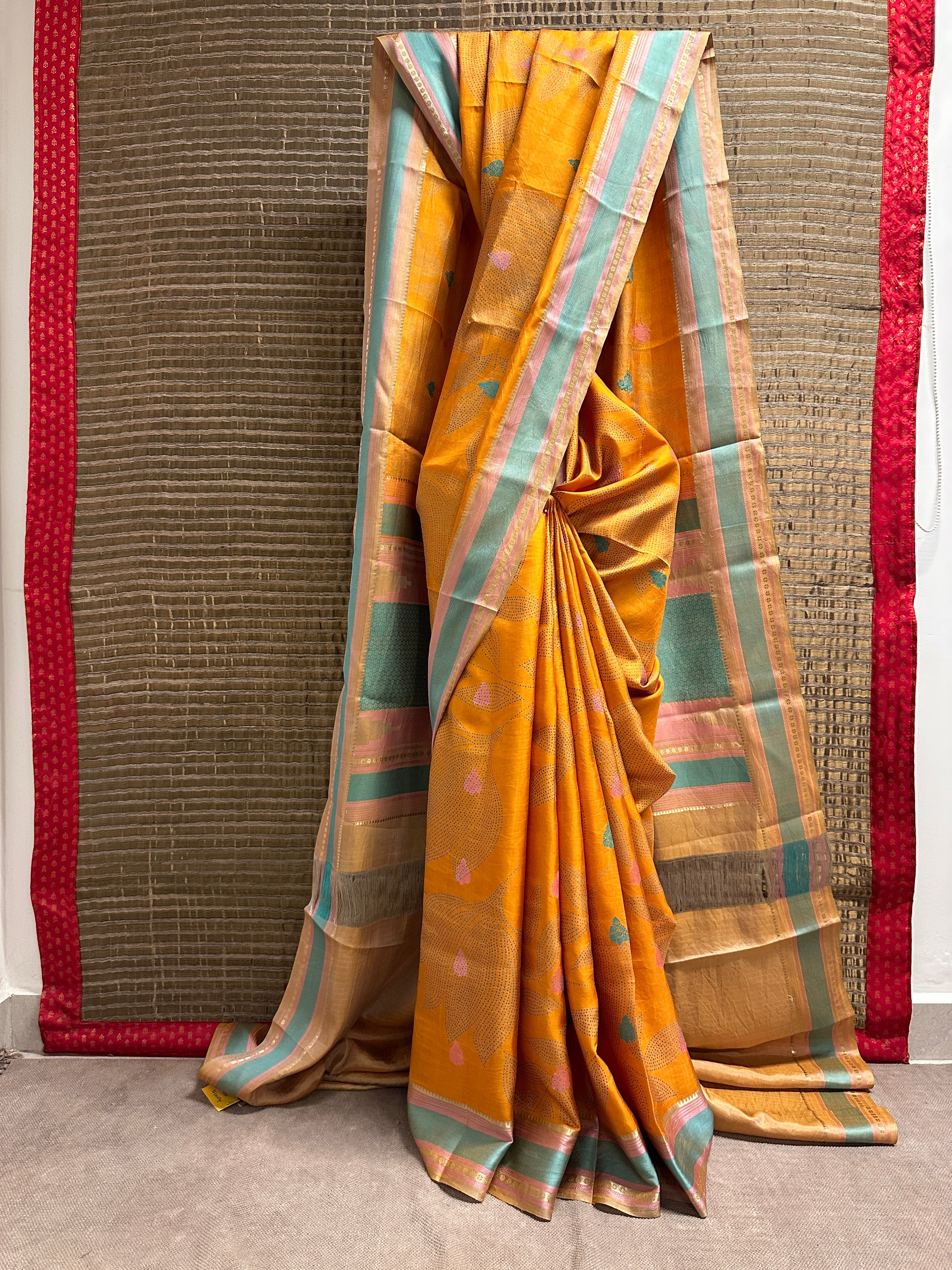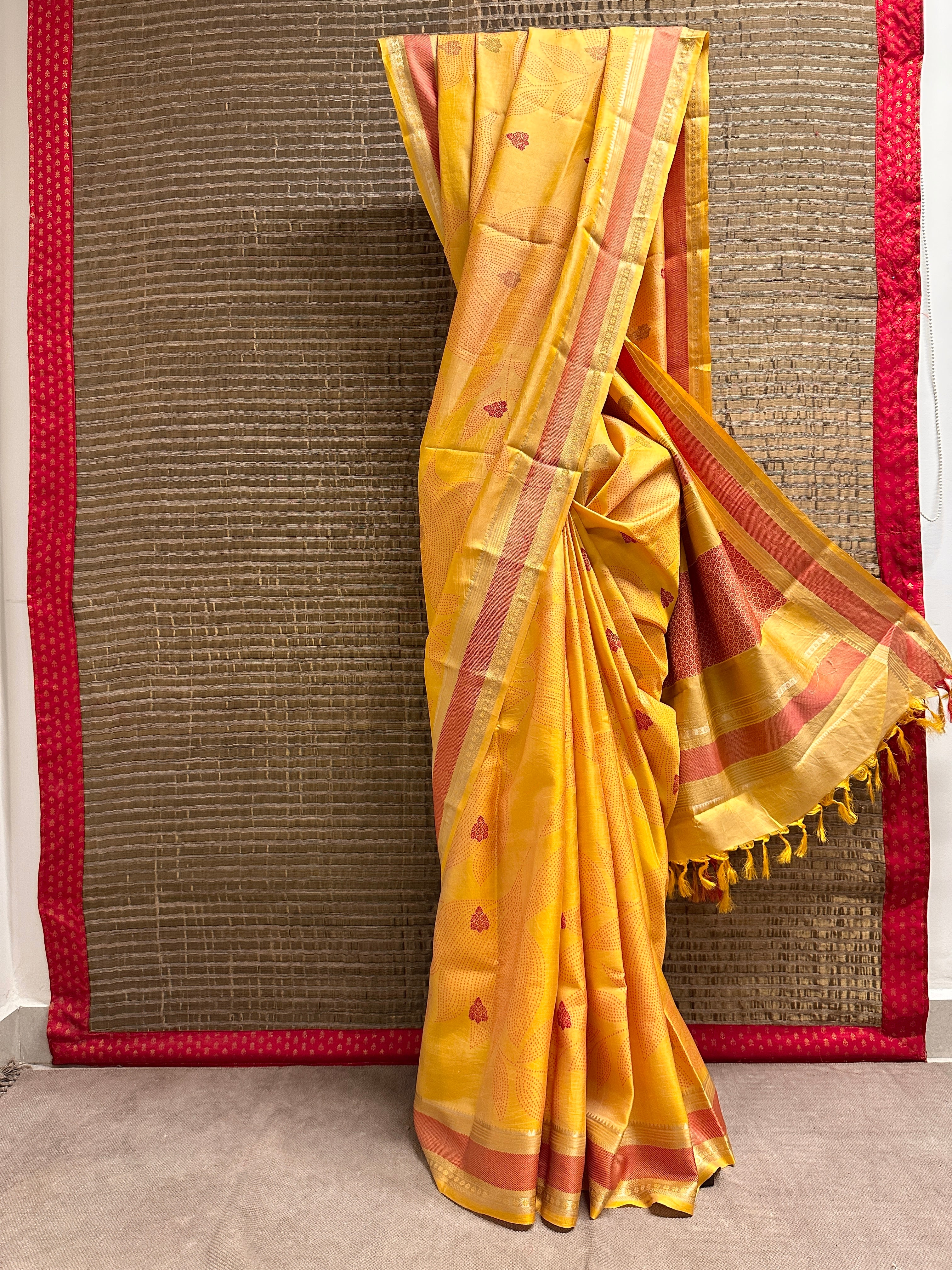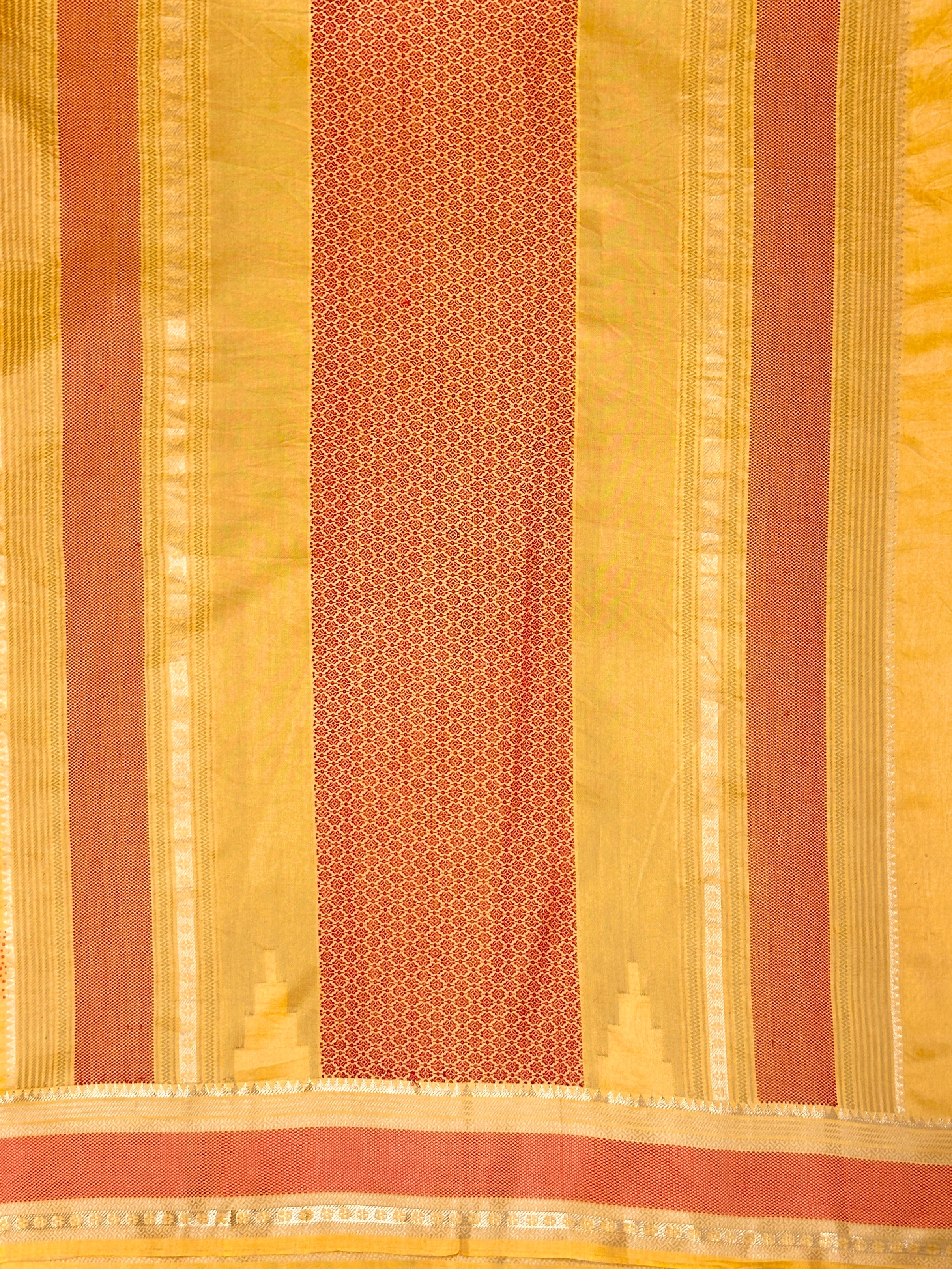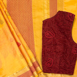 • Pallu intricately woven with traditional and elegant detailing in thread.
