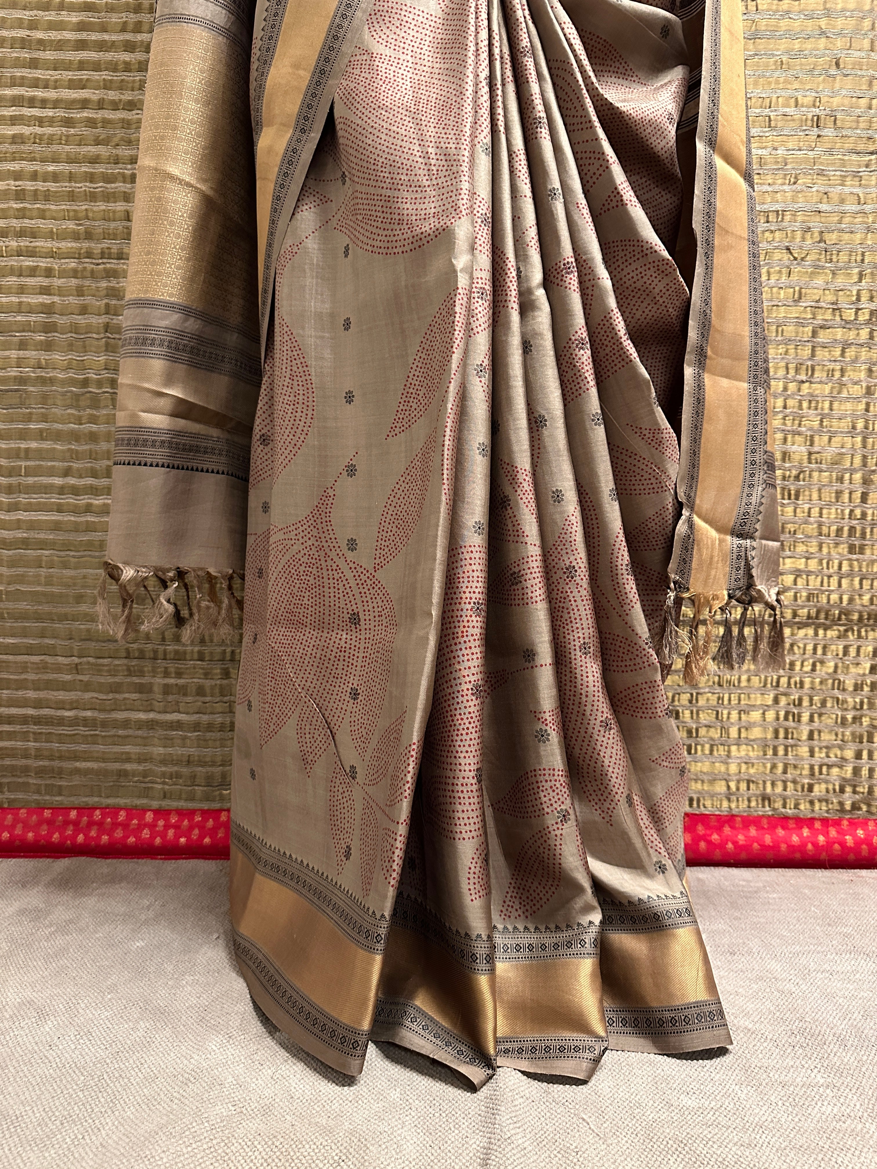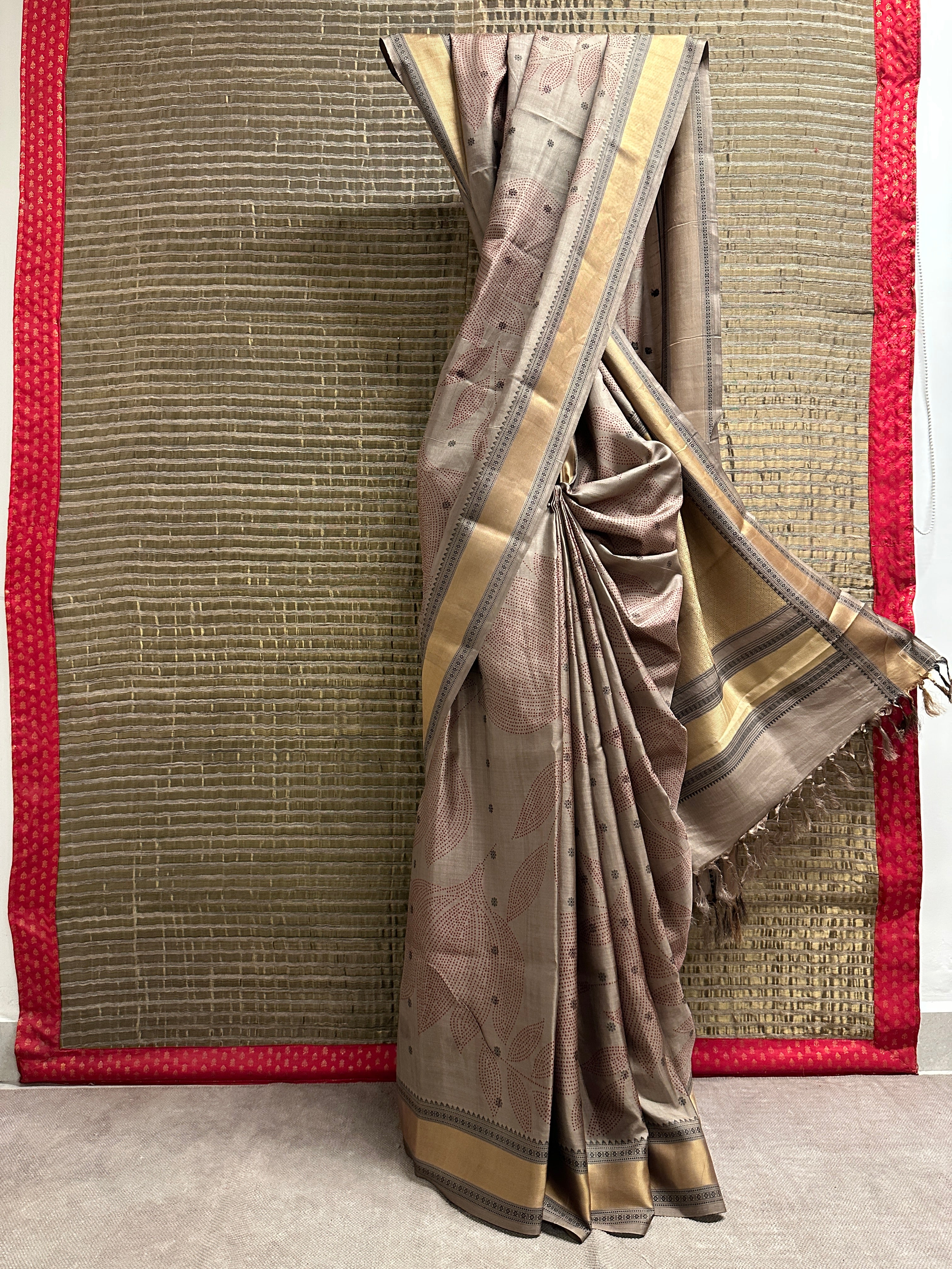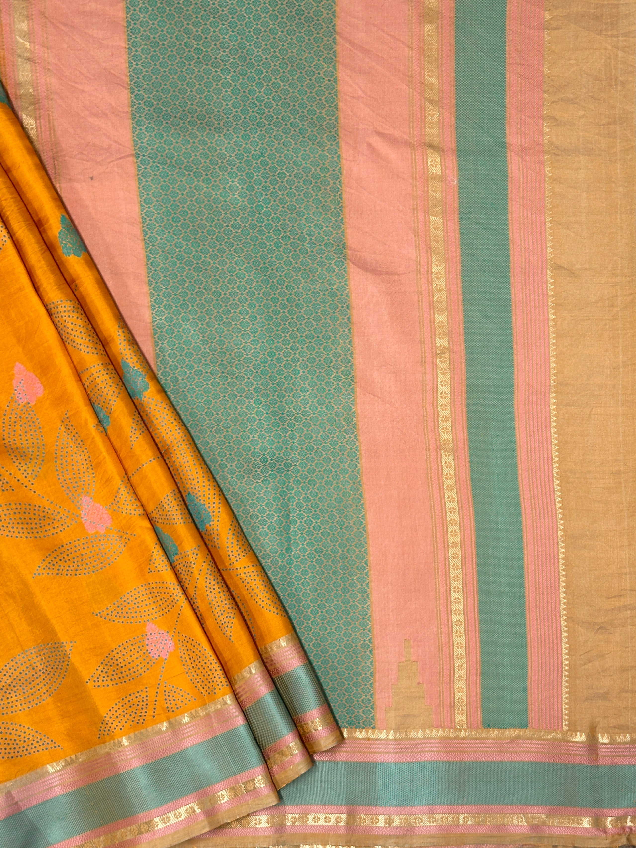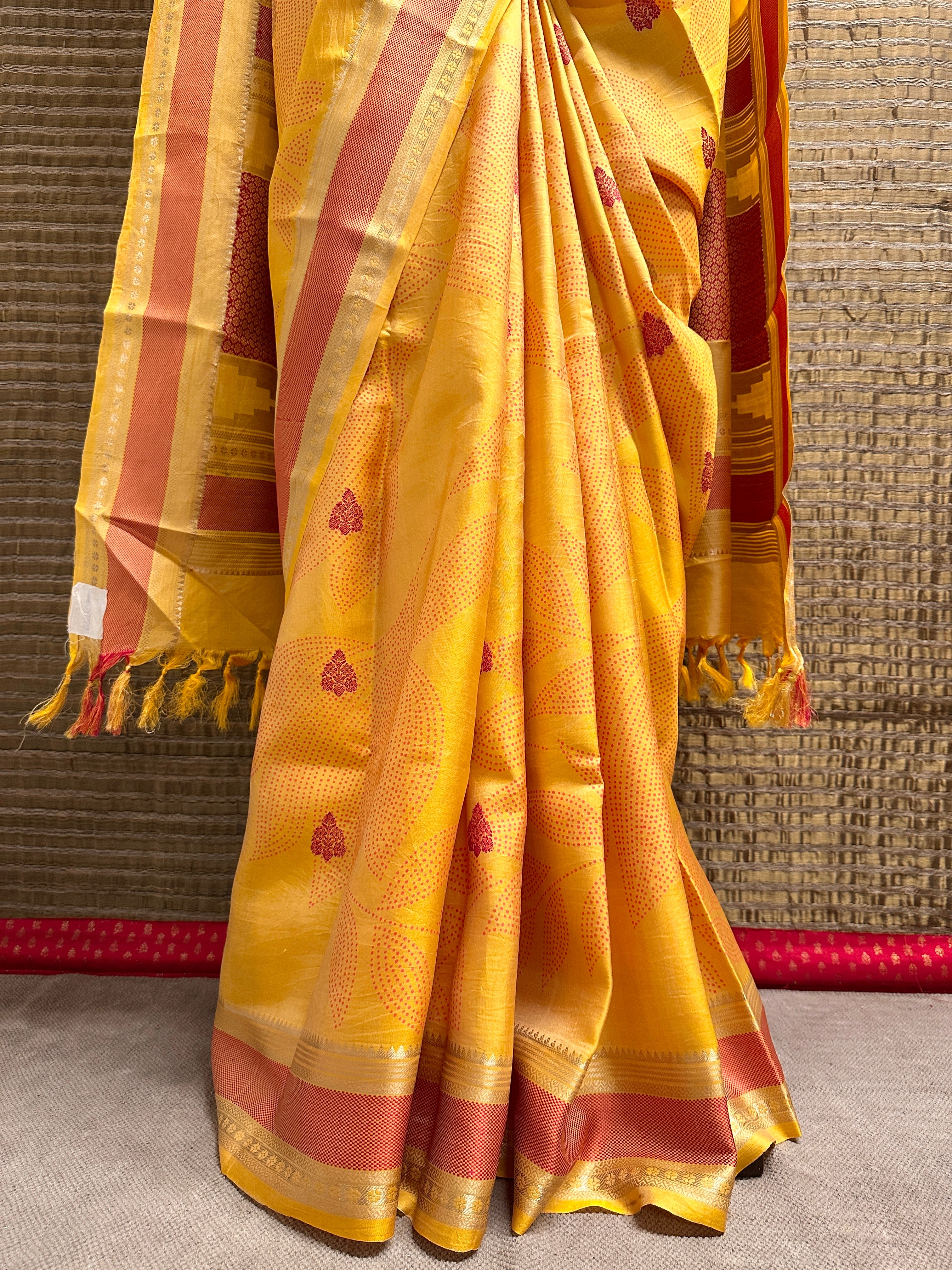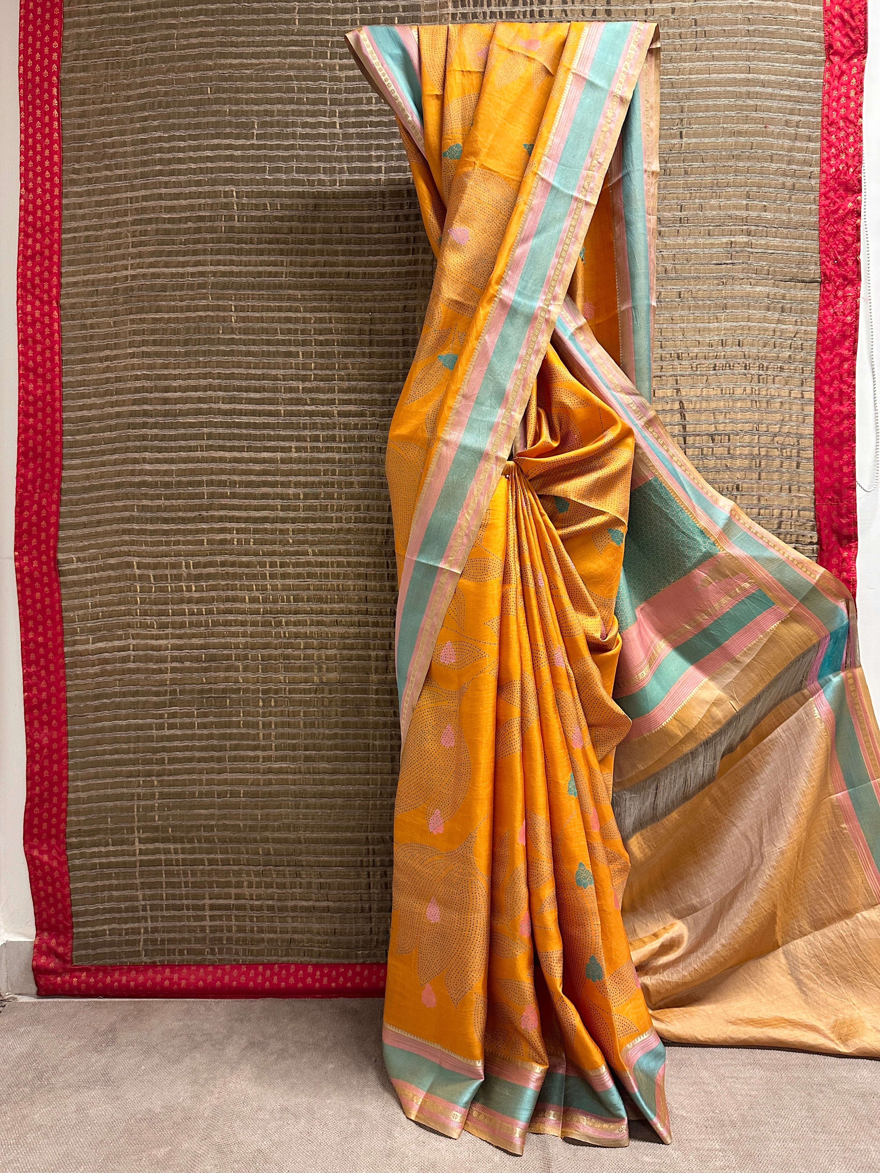 • Pallu intricately woven with traditional and elegant detailing in thread.