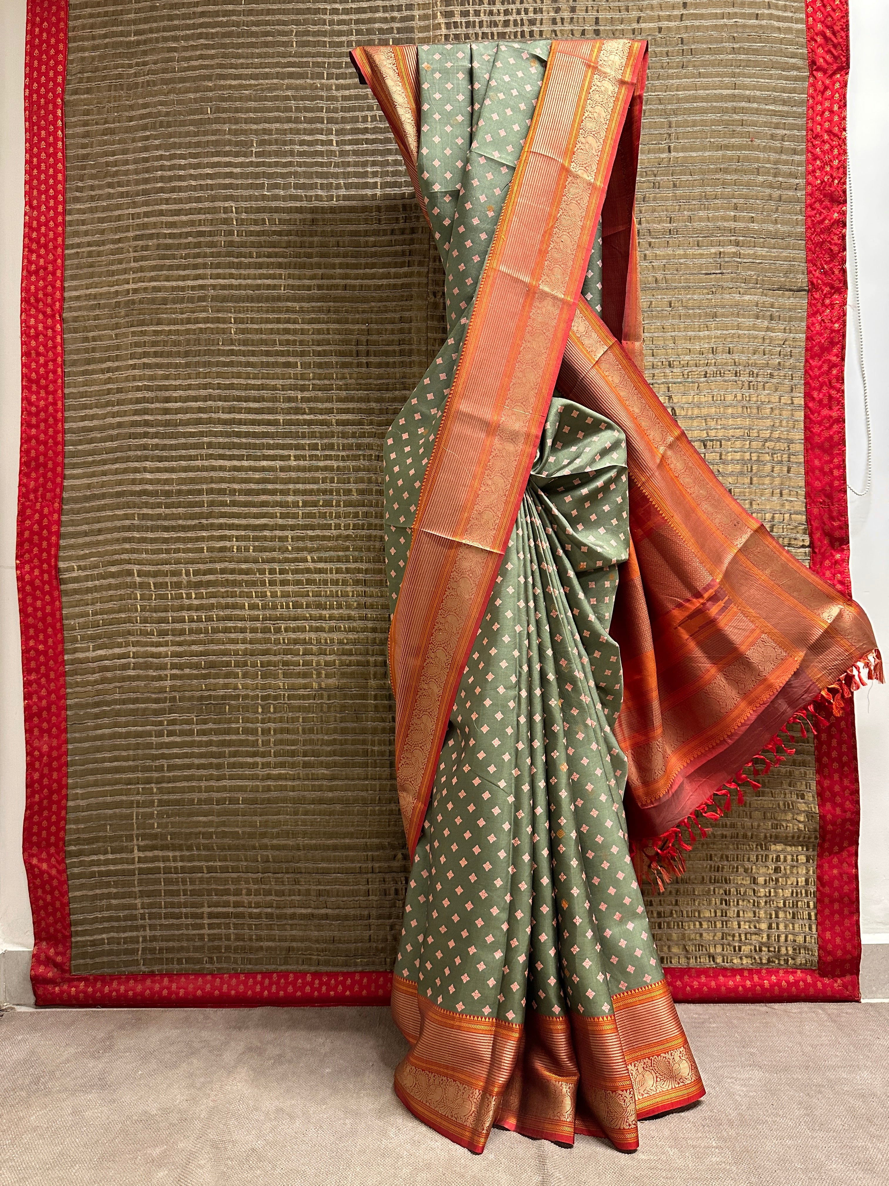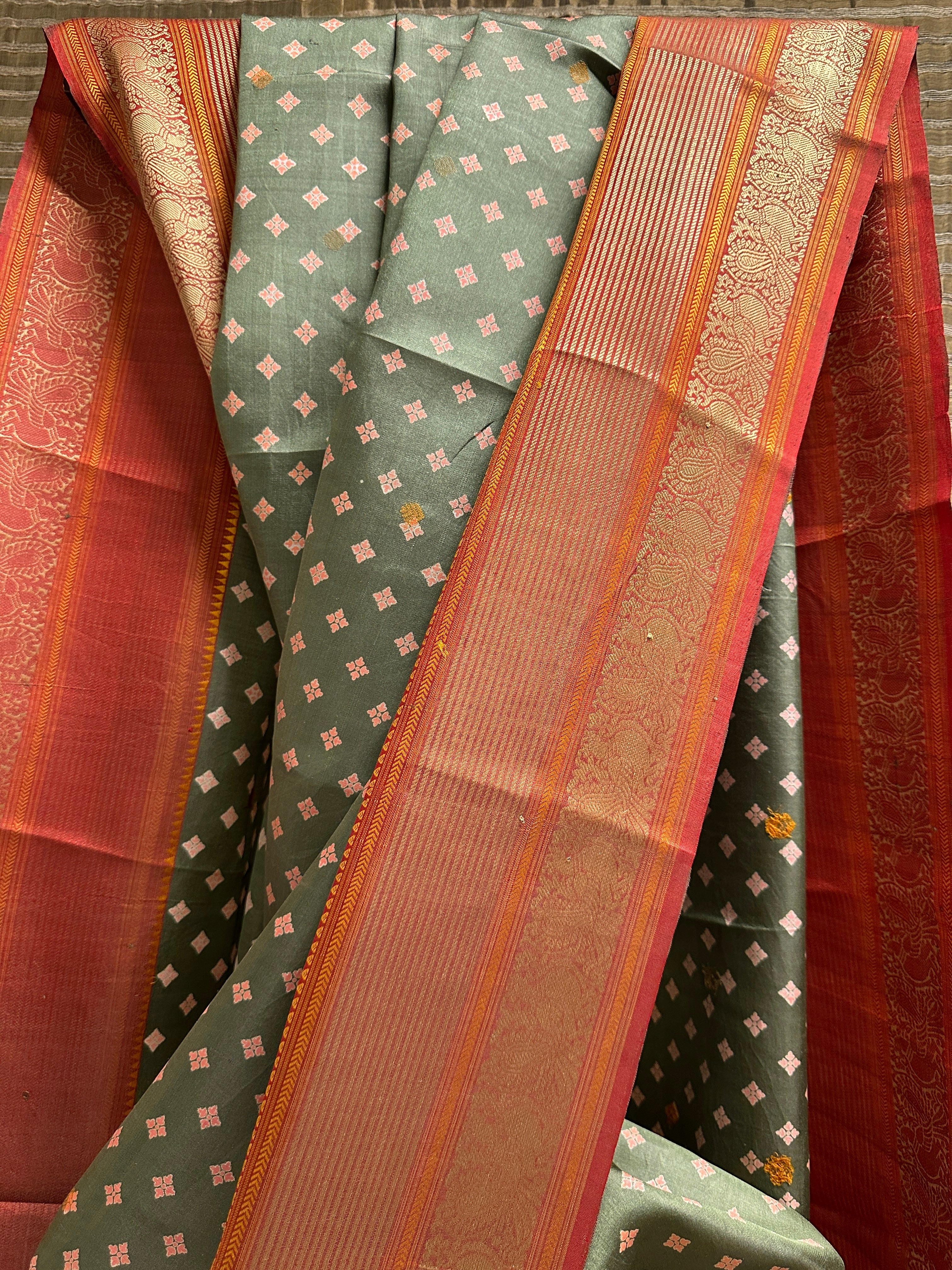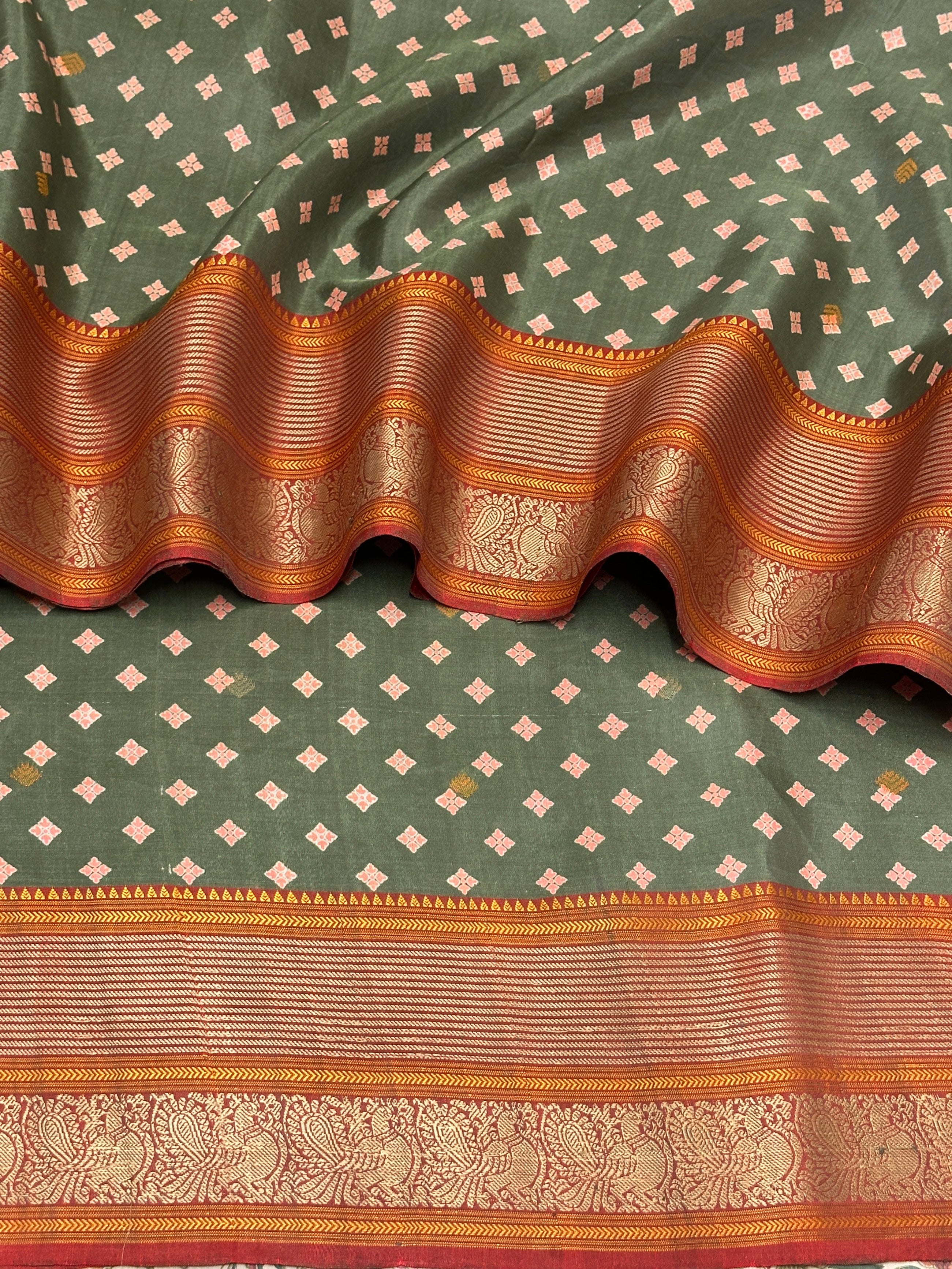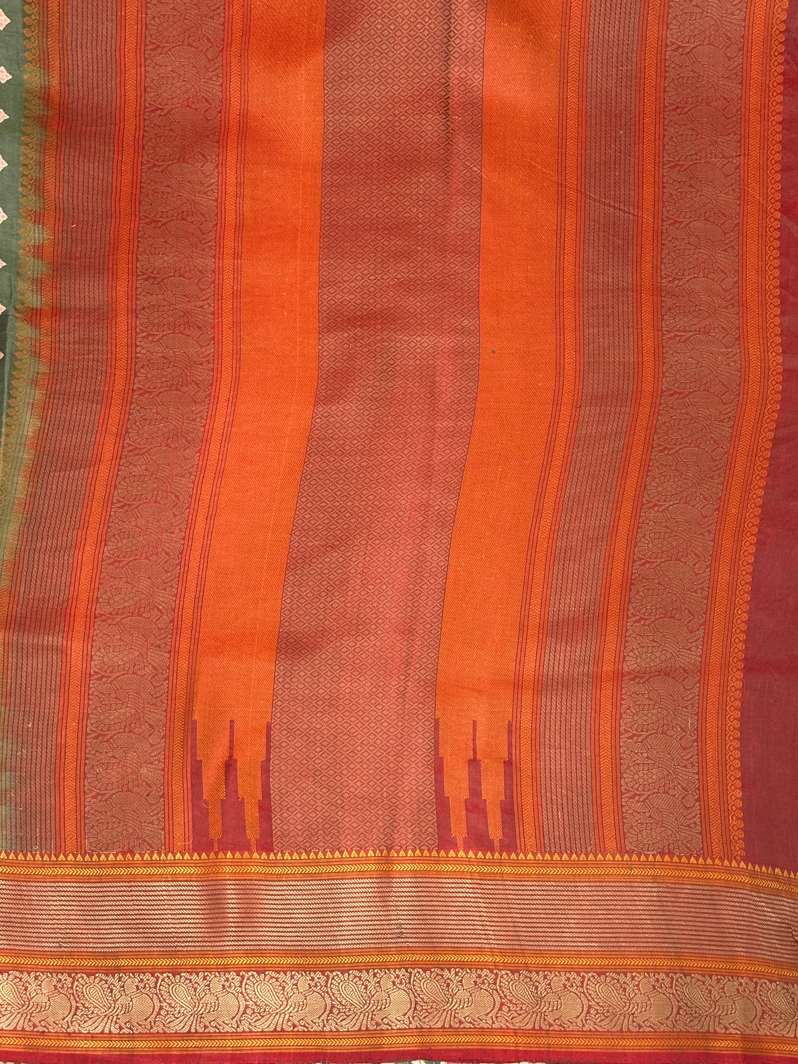 • Pallu intricately woven with traditional and elegant detailing in thread.