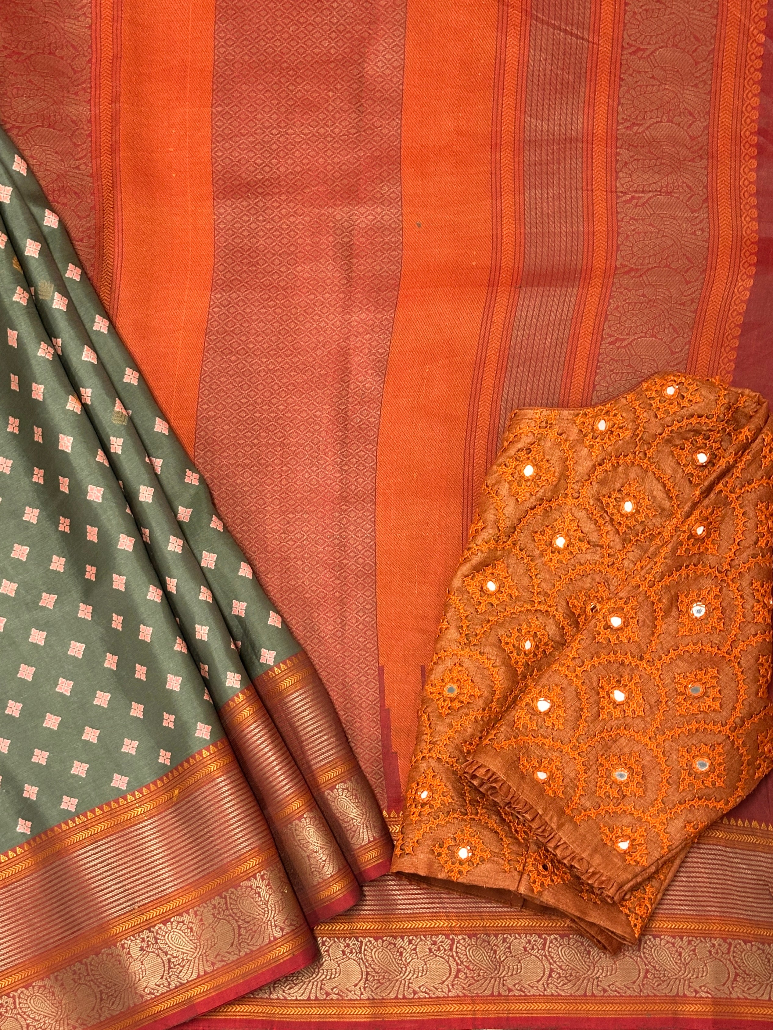 • Comes with contrasting silk blouse that complements the saree perfectly.