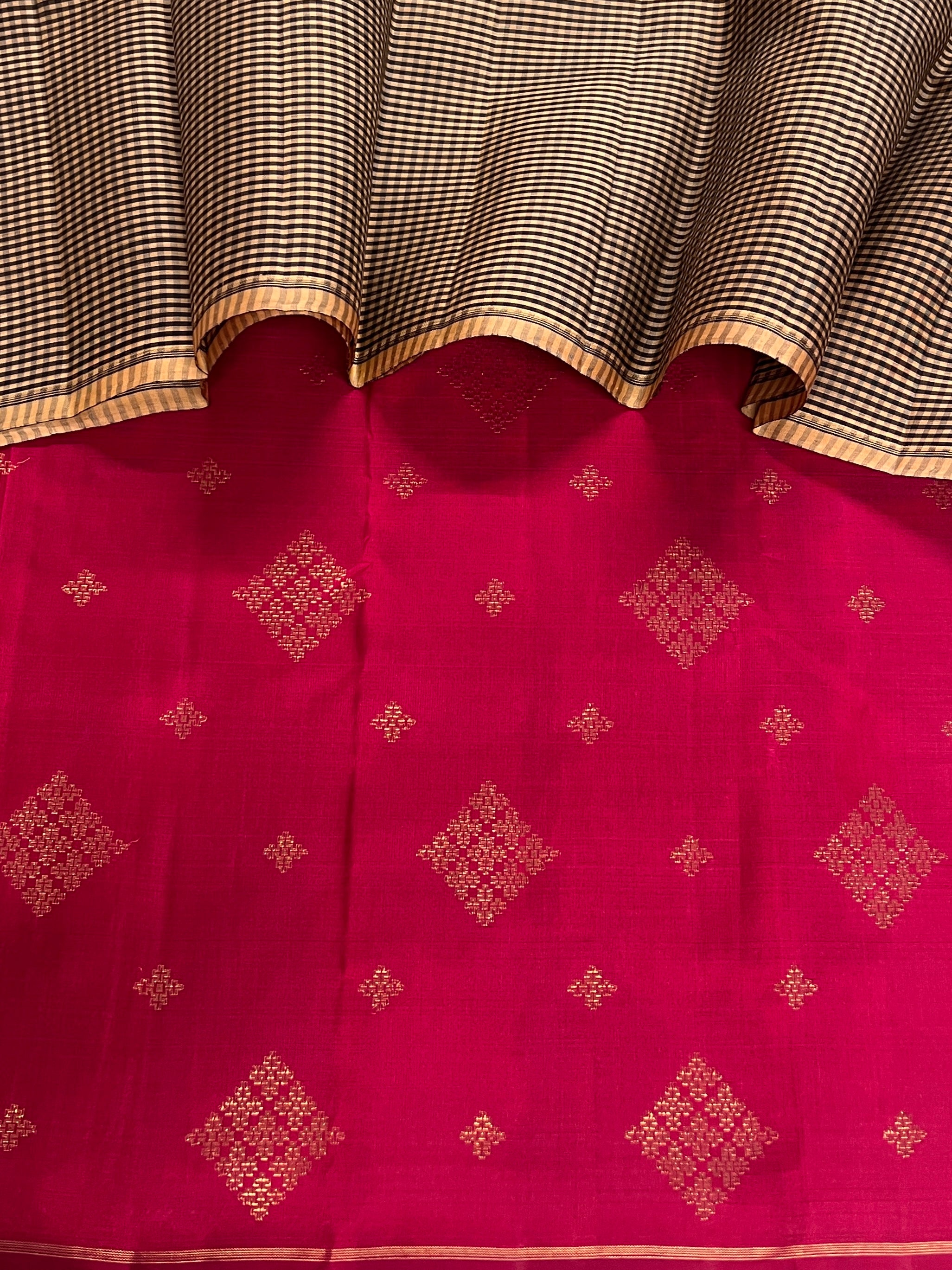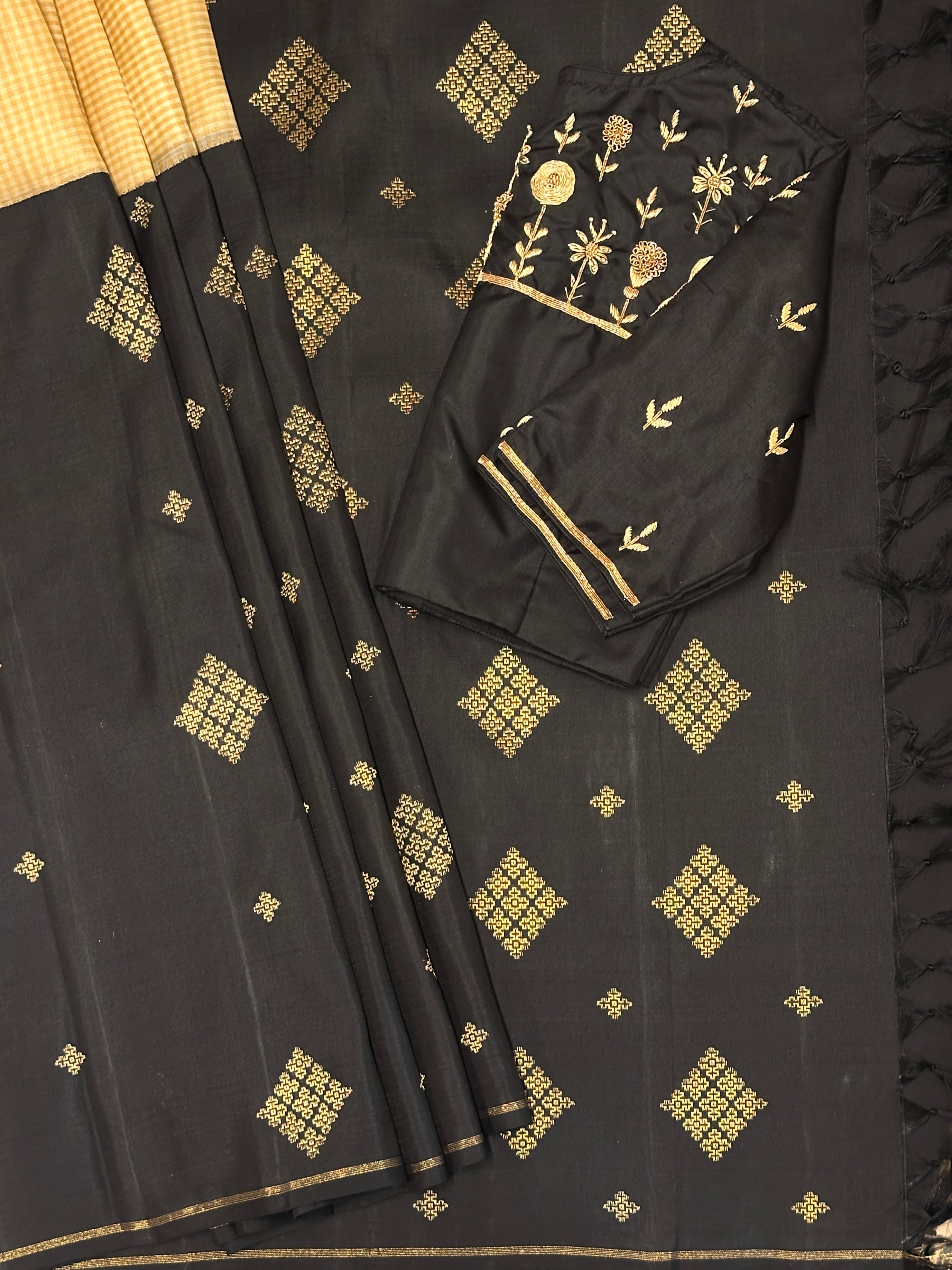 I love smart sarees as I wear them very rarely. Living overseas, it’s harder to carry heavy silks also. This was perfect and I chose this unusual combination