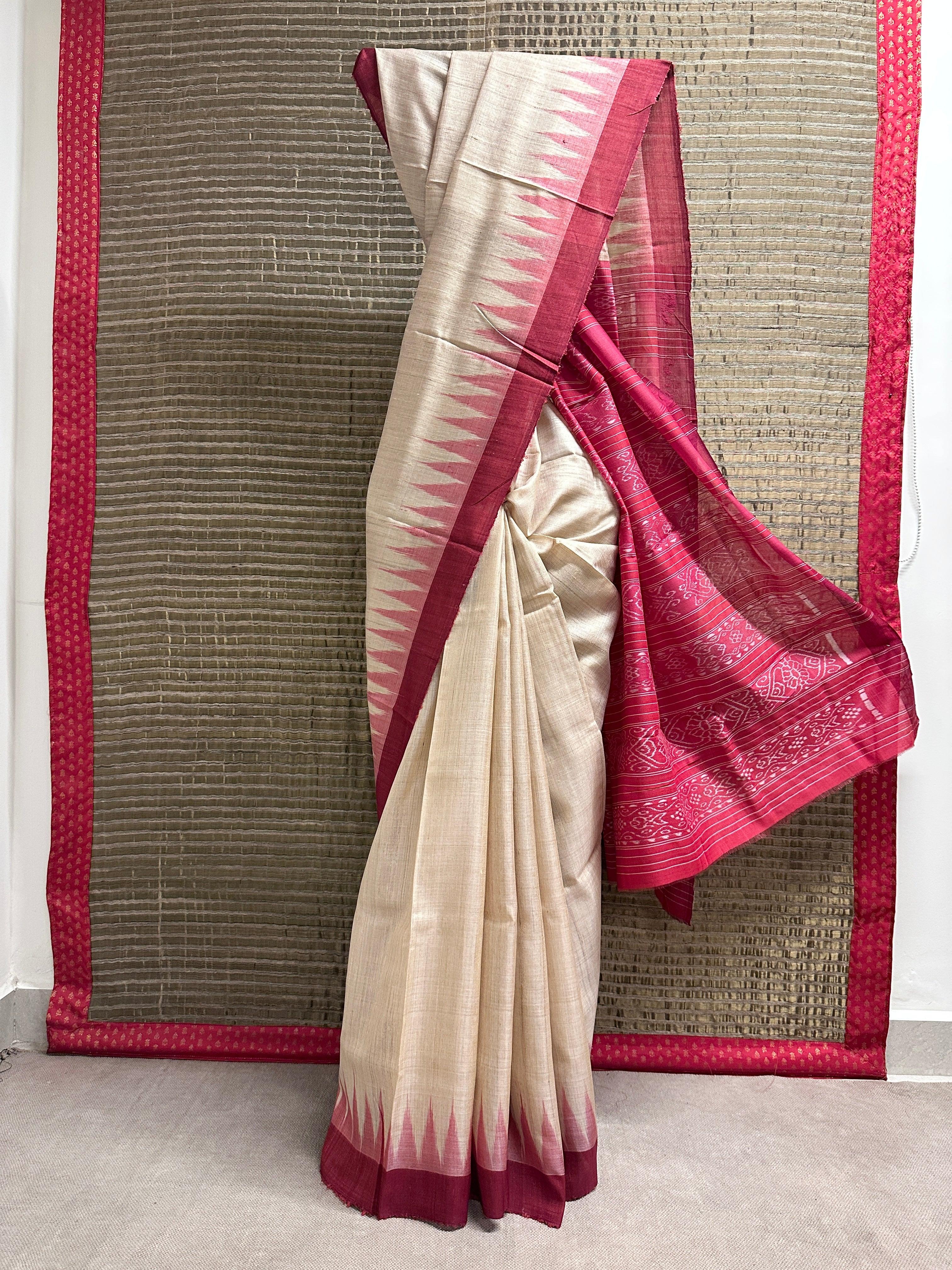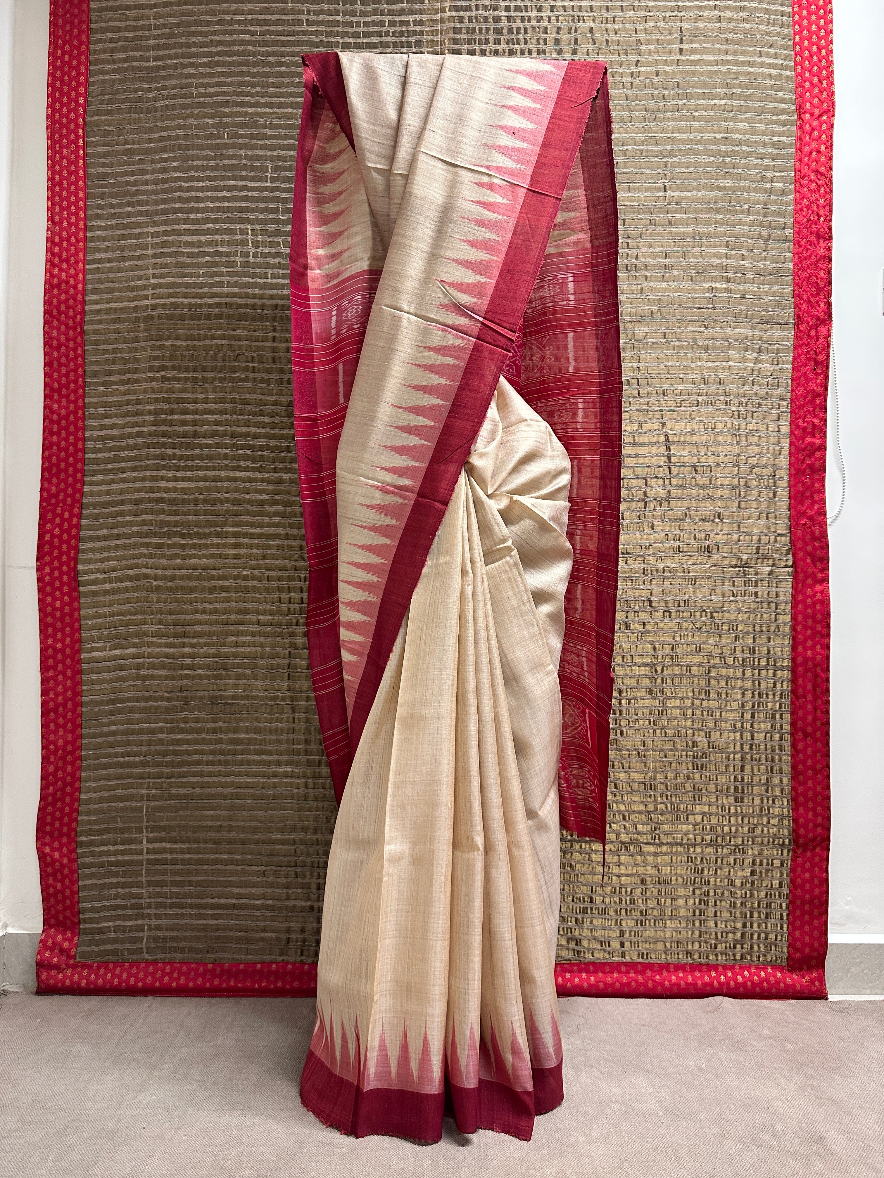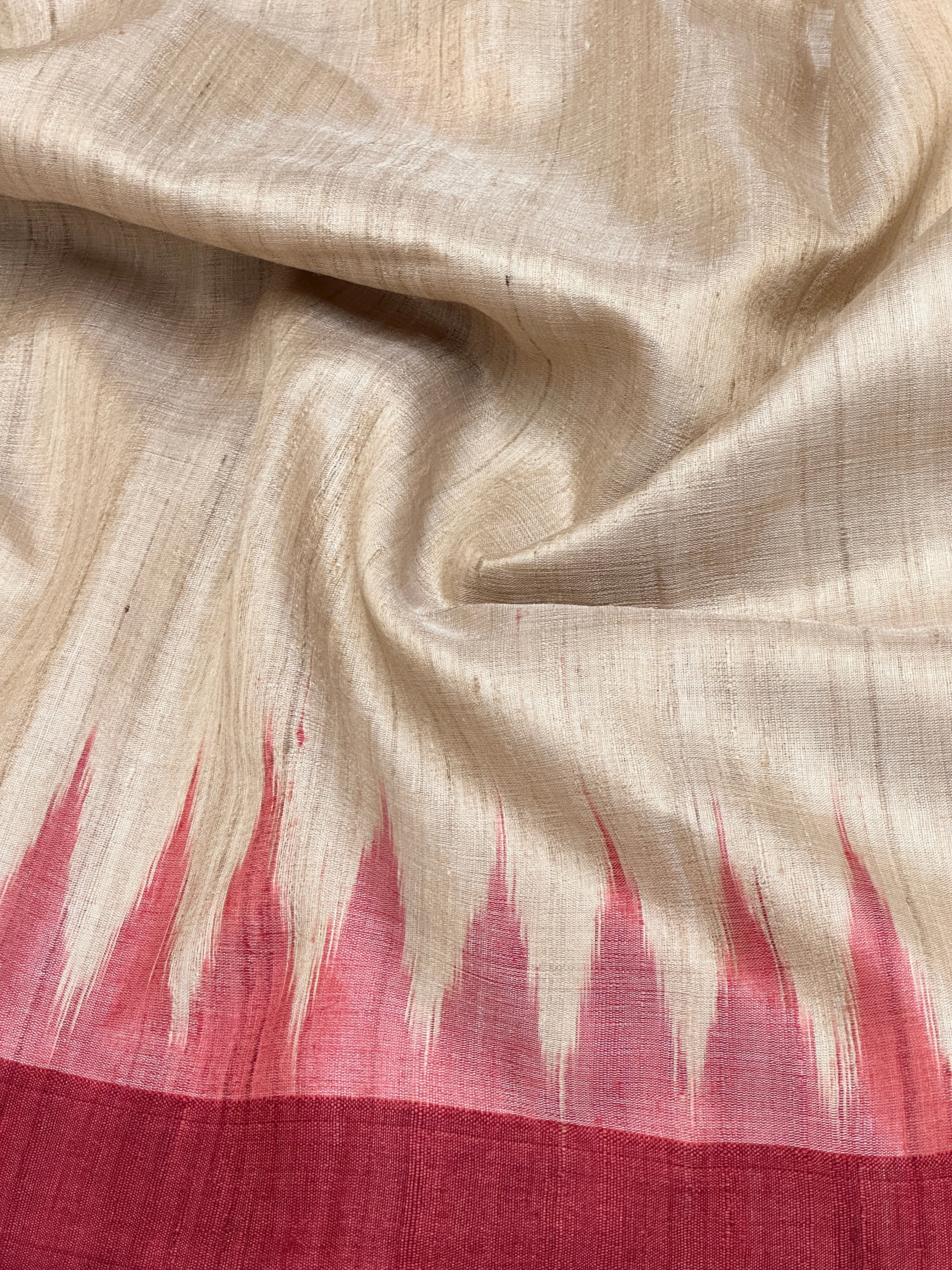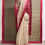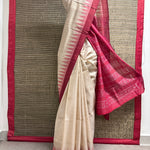 • Tussar silk saree with a plain beige body for an elegant, minimal look.